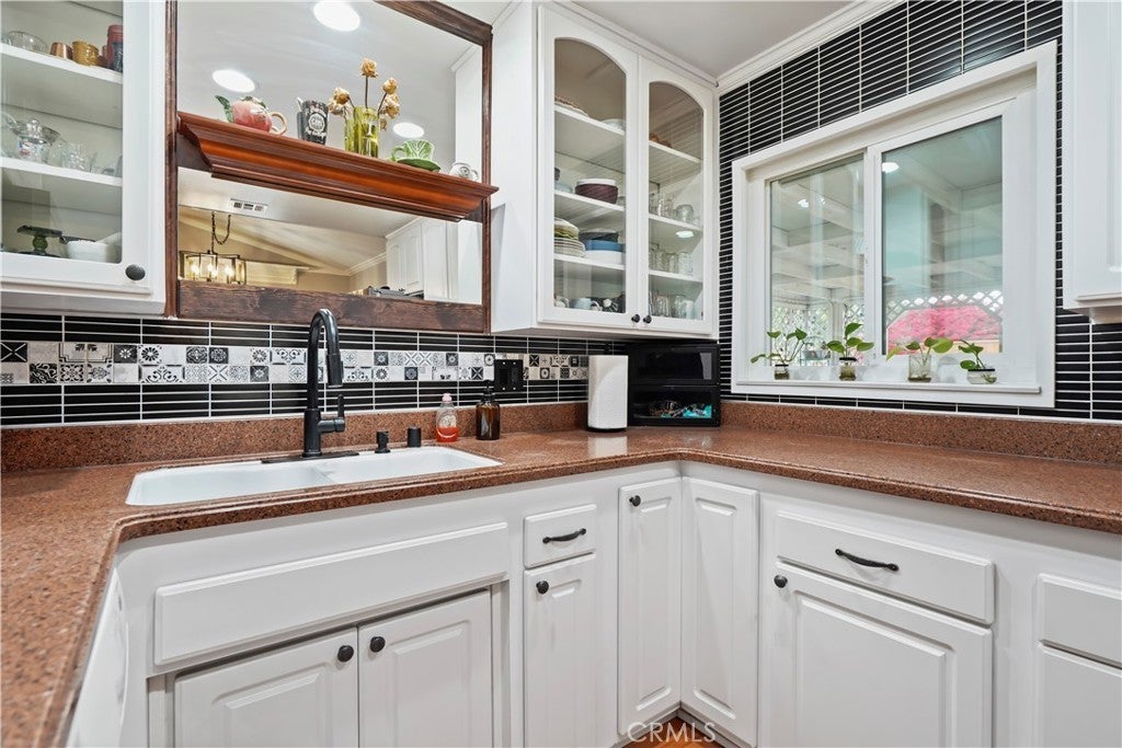 Significant price adjustment reflects Xlnt Value! Privacy & Seclusion! Affordable traditional house nestled in nice residential neighborhood near Mission College and El Cariso Park & Golf. Laminate floors throughout the living areas; updated kitchen with corian counters and elegant tile backsplash. Energy-efficient window and window coverings. A large covered patio in the back yard shelters the laundry hookups. Secluded by a wraparound wood fence and sturdy gate. Plenty of parking for an RV and boat on the driveway. Detached garage with room for ADU conversion.