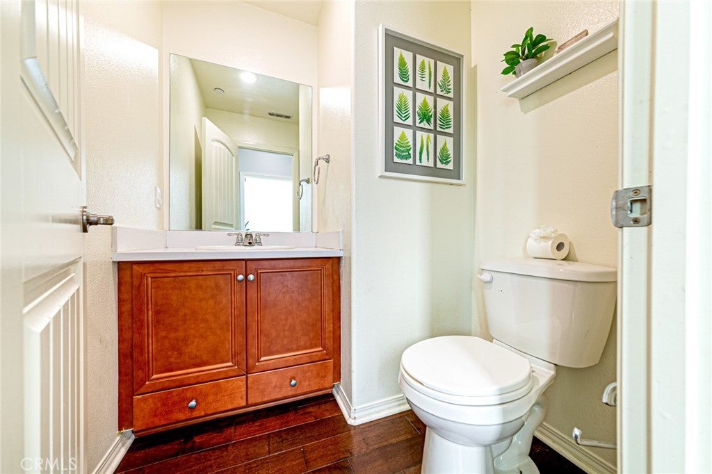 Welcome to Stunning West Creek Home in the Heart of Valencia. This beautifully upgraded 3-bedroom, 2.5-bathroom residence nestled in the highly desirable West Creek community of Valencia. This home offers both privacy and comfort with a bright, open floor plan that’s perfect for modern living. Step inside to discover rich hardwood flooring throughout downstairs, recessed lighting and double-pane windows that flood the space with natural light. The spacious living room with wall cabinets attached flows seamlessly into the dining area—ideal for entertaining. The gourmet kitchen is a chef’s dream, featuring a granite countertop, white shaker cabinetry, stainless steel appliances, and a sleek under-mount stainless steel sink. Upstairs, the expansive primary suite offers a true retreat with a generous walk-in closet and a luxurious bathroom complete with quartz stone counter top, shower, and dual vanities. The additional bedrooms with its own closets are spacious and well-appointed. Enjoy California living in your private side yard. The attached two-car garage offers side-by-side parking and direct home access. Leased solar panels on roof are a bonus! Residents of West Creek enjoy resort-style amenities including a sparkling community pool and spa, clubhouse, playgrounds, and scenic parks.