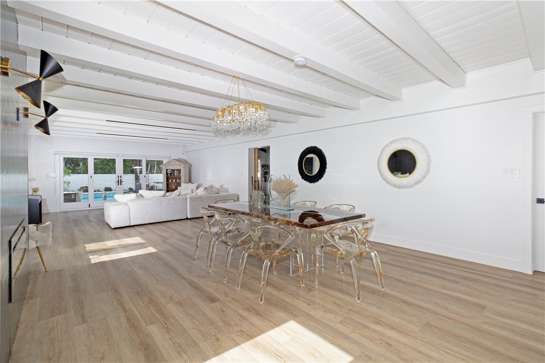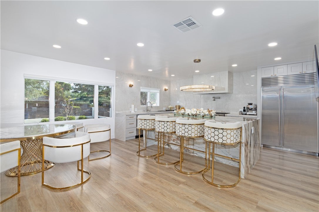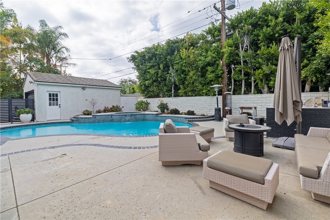 !!! WOW BIG PRICE REDUCTION!!! This unique and stunning Valley Village house is a standout luxury property with seven bedrooms and six bathrooms, 2 Master Suites, spanning nearly 5,000 square feet on a spacious 9,450 square foot lot. The home's previous listing highlights a blend of classic modern details, dramatic high ceilings, LED custom electric fireplaces, and an expansive open floor plan. The chef’s kitchen features a striking porcelain island, designer cabinetry, state-of-the-art appliances, and elegant porcelain countertops and backsplash. Voluminous living and family rooms transition to a stylish tropical backyard with a custom barbecue, sparkling pool, and spa—ideal for entertaining or private relaxation. This luxury gem exemplifies high-end living with recent upgrades that cater to both modern efficiency and timeless comfort, making it one of Valley Village’s most enviable estates. Upgrades and Features • Recently renovated with modern fixtures and finishes, including LED accent lighting and custom cabinetry throughout. • New porcelain surfaces in the kitchen and bathrooms, plus skylights and upgraded lighting features in the primary suite and bathrooms. • The primary suite offers a private balcony overlooking the backyard, double walk-in closets, and a new spa-inspired bath with dual sinks, soaking tub, and large shower. • Multiple ensuite bedrooms provide comfort and privacy for families or guests, and the open layout enhances natural flow through living spaces. • The backyard was significantly upgraded with a custom pool, spa, barbecue station, and tropical landscaping for an entertainer’s paradise. • Includes a two-car garage, convenient access to top-tier schools, shopping, and neighborhood attractions. • The home is positioned in a serene, tree-lined residential pocket renowned for privacy, elegance, and proximity to Burbank Boulevard’s school district.