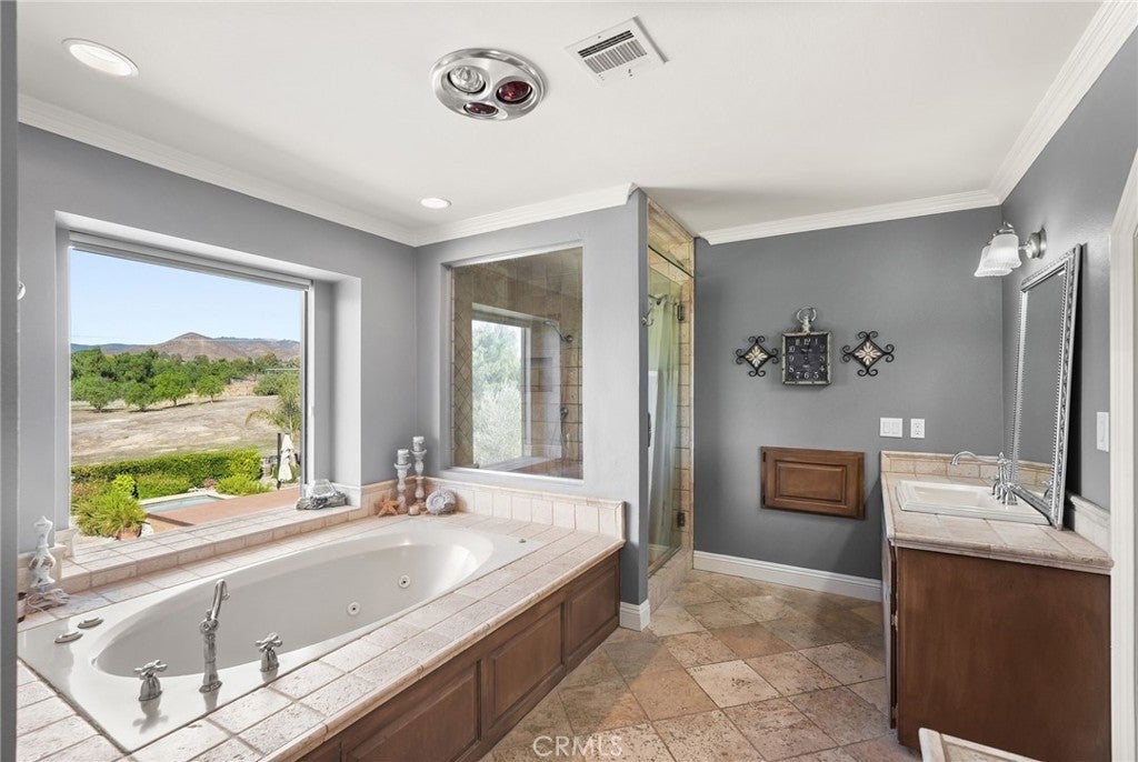 Welcome to an exceptional equestrian estate in the prestigious Asher Ranch community of Agua Dulce. Set beside the 932-acre Vasquez Nature Preserve, this property offers direct access to miles of riding and hiking trails, along with unobstructed views of the area’s iconic rock formations. Nearly five fully fenced acres with dual electric gates provide privacy, security, and a grand sense of arrival. The residence has been enhanced with significant upgrades, including a newly engineered well with a 10,000-gallon insulated storage tank and an additional 6,500-gallon tank for abundant water capacity. A fully paid solar system with two backup batteries, upgraded 220-amp wiring, and a new electrical panel support modern efficiency and energy independence. Inside, the home blends comfort and sophistication. High ceilings and natural light highlight the expansive main living area, while the oversized primary suite offers exceptional scale and privacy. Additional improvements include a new water heater, updated appliances, decorative fireplaces capped for safety, dual-zone air conditioning, new carpet, and a commercial-grade septic system. Designed for outstanding outdoor living, the grounds offer multiple spaces for entertaining or quiet relaxation. The pool and spa have been restored to pristine freshwater condition with new heater, pump, and filtration systems. A newly constructed patio expands the outdoor living environment, complemented by tree-lined landscaping, new gutters, and a professionally paved driveway. Ideal for equestrians and collectors, the property includes an attached three-car garage and a separate 40×40 structure that functions as a premium garage or barn, accommodating eight or more vehicles with RV-height access. Its upper loft can be finished to add approximately 500 square feet of additional usable space. Above the main garage, a large finished room—with its own separate entrance—serves as an ideal office, guest area, or creative studio. With refined upgrades, expansive land, and direct access to extraordinary natural surroundings, this estate offers a rare blend of privacy, versatility, and California country elegance. Opportunities of this caliber are seldom available and leave a lasting impression long after a visit!