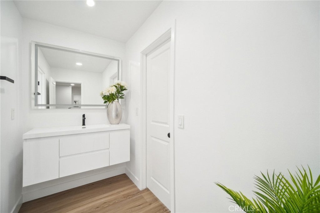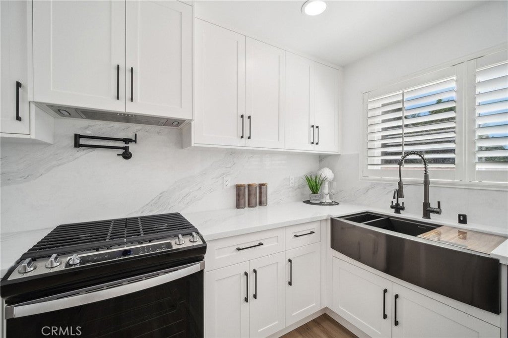 Beautifully remodeled gated home located in a highly desirable Porter Ranch neighborhood. Features include 5 bedrooms and 3.5 updated baths with over 2150 sqft of living space. Walk through the double doors and be amazed what this true beauty has to offer. Large light & bright living room with modern fireplace opens to the dining area, brand new custom kitchen with quartz counters, a pot filler and stainless steel appliances, two large bedrooms and two large bathrooms downstairs, 3 bedrooms and 1.5 baths upstairs, fully finished two car attached garage with direct access, private back yard with pool and so much more. Additional features include new dual pane windows, laminate flooring and recessed lighting throughout, new paint inside and out, updated central A/C and Heat. This is a must see home in a beautiful neighborhood with great schools and just minutes to the Vineyards in Porter Ranch.
