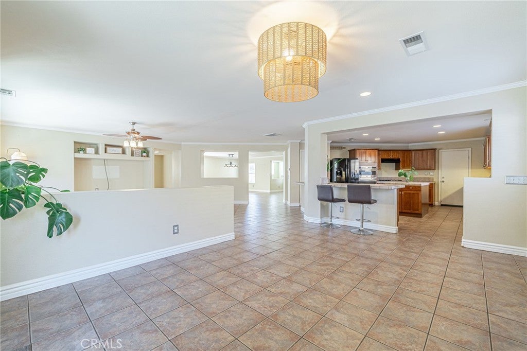 • Interior FeaturesBreakfast Area, Ceiling Fan(s), Crown Molding, Open Floorplan, Recessed Lighting, Storage, Walk-In Pantry, Walk-In Closet(s)
