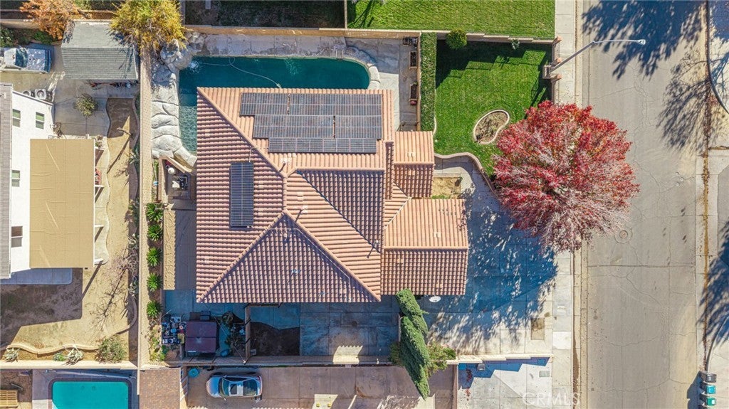 A stunning Quartz Hill pool home offering nearly 3,600 sq ft of upgraded living space and a fully owned 25-panel solar system. Situated in one of the most desirable west-side neighborhoods with no Mello-Roos, this home offers impressive curb appeal with a wide driveway, room for additional vehicles, and a block wall paired with decorative iron accents leading to the front entry. Inside, enjoy a bright open layout with a large living room, spacious family room, elegant trim details, crown molding, and abundant natural light. The kitchen provides generous cabinet storage, a center island, walk-in pantry, and an extended breakfast bar perfect for entertaining. A downstairs office/flex room adds versatility and can function as a potential fifth bedroom. Upstairs, the expansive primary suite features dual walk-in closets and a beautifully remodeled spa-style bathroom with custom cabinetry, dual sinks, a soaking tub, and a stone-tiled shower. The additional bedrooms include ceiling fans, and both the upstairs secondary bath and the downstairs bath have been tastefully remodeled. The backyard is a true private retreat showcasing a covered patio with lighting and ceiling fan, a designated outdoor dining space, and a gated rock-style pool with a shallow lounging ledge, natural stone coping, waterfall feature, and updated equipment. The home also includes a whole-house fan for added comfort and energy efficiency. A rare Quartz Hill opportunity offering space, style, and exceptional outdoor living.