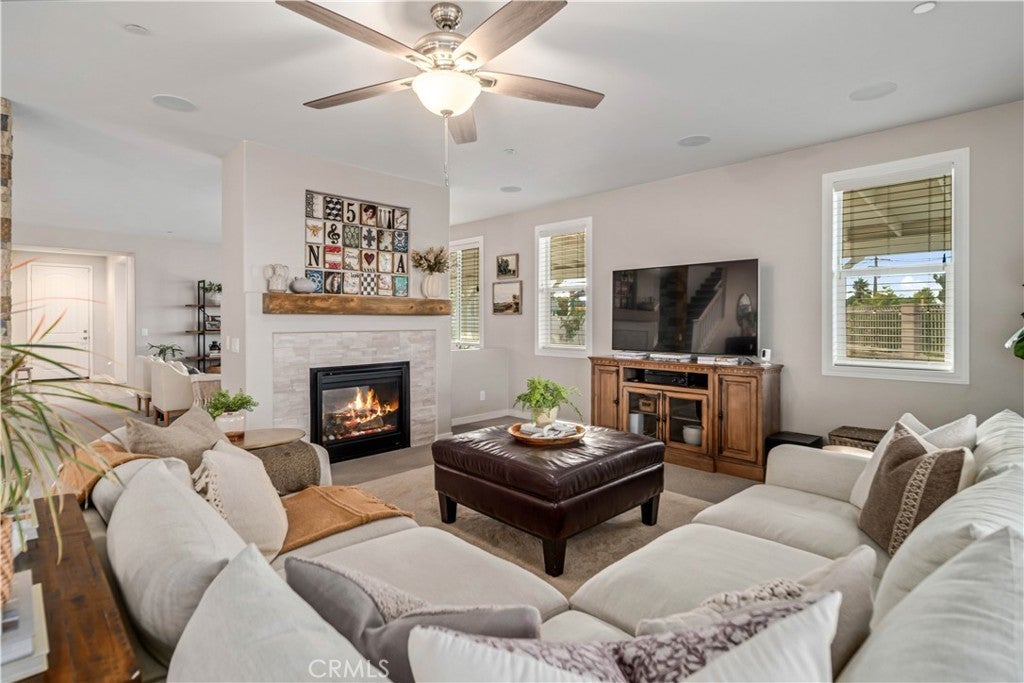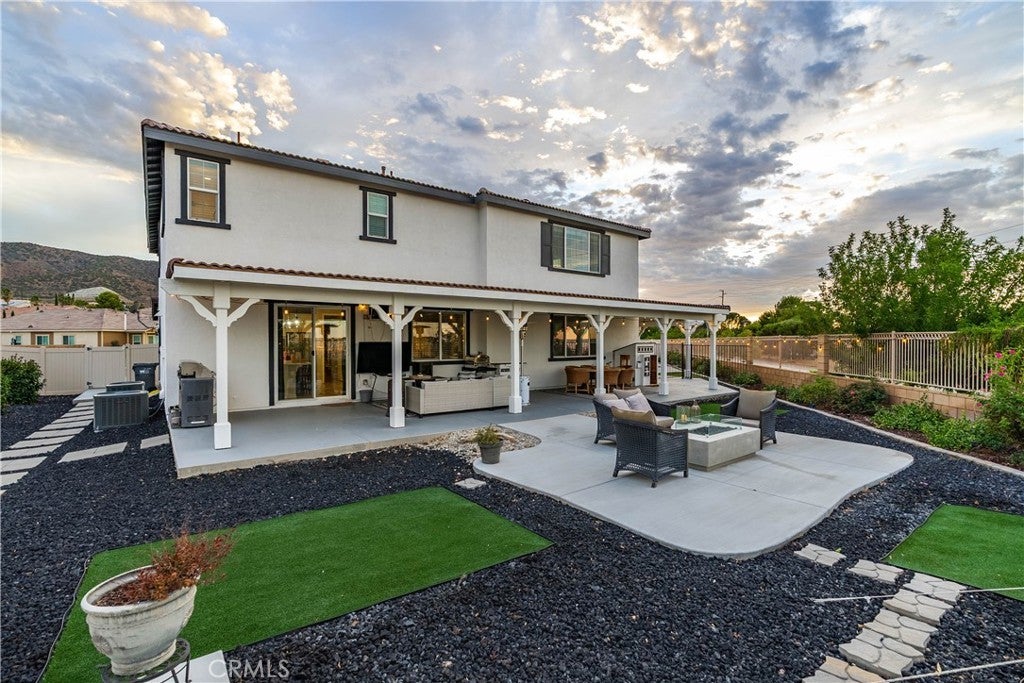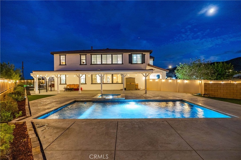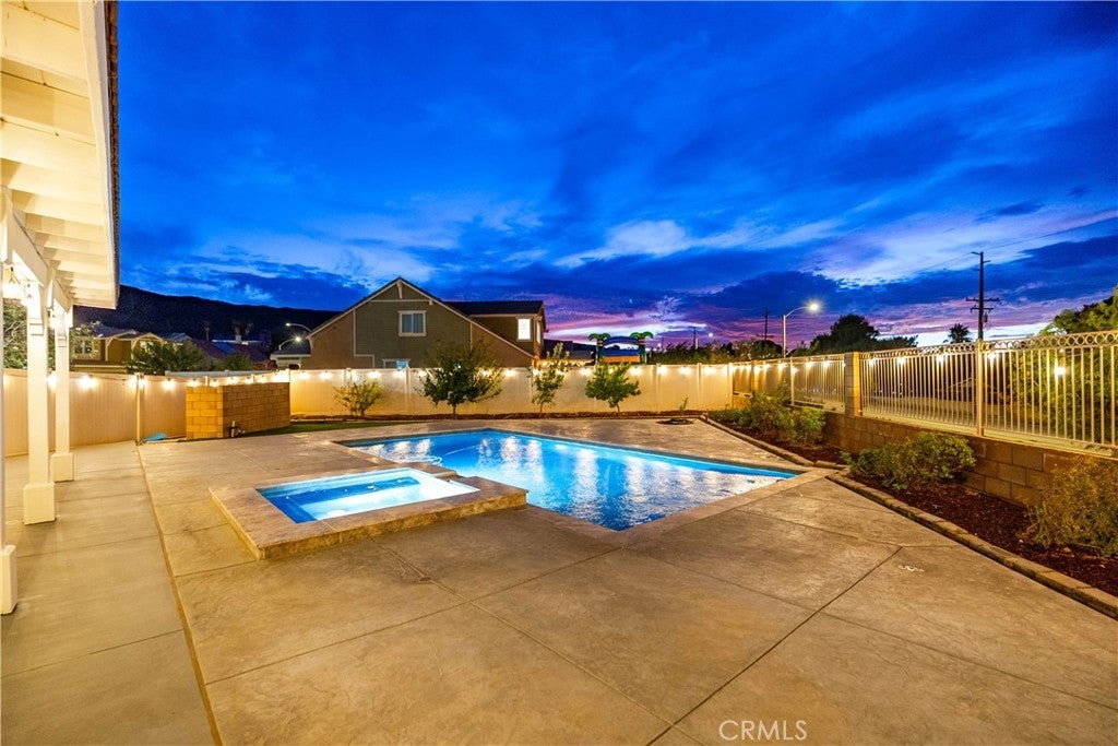 Almost 4,700 sq. ft. of exquisite living! This 5-bedroom, 4-bathroom pool home showcases breathtaking city and mountain views and has been beautifully upgraded throughout. The gourmet kitchen is a showstopper, featuring quartz countertops, soft-close cabinetry, an oversized center island, and an enormous walk-in pantry. The main level welcomes you with a private office, a guest bedroom and full bath, a formal living room with a custom-tiled fireplace, and an expansive family room that flows seamlessly into the informal dining area and kitchen. A versatile den adds even more space for work or play. Upstairs, you'll find a supersized loft, two additional bathrooms—including a Jack & Jill shared by two bedrooms—and a stunning primary suite. The suite boasts a custom wood accent wall, sweeping views, dual walk-in closets, and a spa-like bathroom with dual sinks, a soaking tub, and a separate shower. Step outside to your own private retreat. The backyard is an entertainer's dream, thoughtfully designed with custom hardscaping, a built-in fire pit, two expansive covered patios, and a brand-new in-ground pool and spa (completed May) with a Baja shelf entry. Nearly every window frames spectacular views, making this home truly unforgettable. This home showcases sophisticated upgrades and designer finishes inside and out, with every detail thoughtfully crafted, even offering convenient RV access.