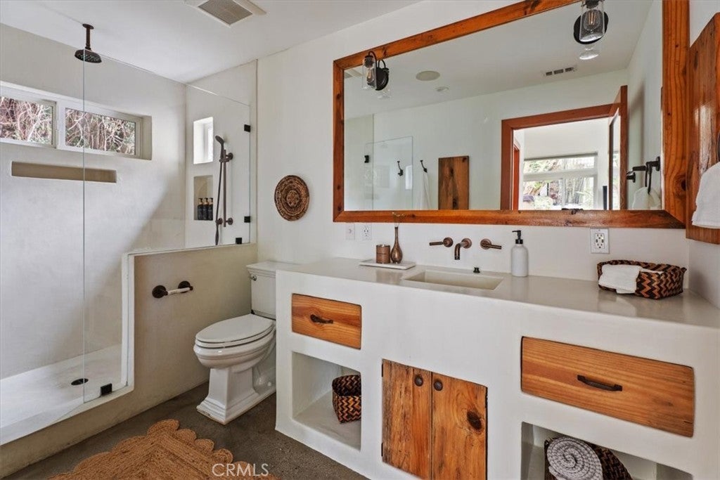 Set above the street behind lush landscaping, this 1929 Echo Park Spanish Revival is a true trophy property. Through the arched entry, you will find a patio with stunning views. The formal living room features hardwood floors, walls of windows, a stunning fireplace surround and arched doorways on both sides. Through the formal dining room, you will find an updated kitchen with raised ceilings, peaceful views of the yard, and a breakfast table. Beyond the kitchen is a family room with a private patio and media system that controls the zoned interior/exterior speaker system. The primary bedroom and en-suite bath are the newest addition to the home bringing the vibes of a luxury resort and spa featuring vaulted ceilings, built ins, designer finishes, and remarkable natural light shining through the large windows. The secondary bedrooms are well appointed with generous windows, closet space, and a remodeled bathroom. Step outside to a remodeled backyard oasis featuring a jacuzzi, fire-pit, outdoor kitchen, multiple dining and entertaining spaces and a detached two-level bonus studio. Facing the street there are 4 temperature controlled, generous sized, finished garage spaces. Enjoy the thoughtful upgrades like the central HVAC, laundry area, two tankless water heaters, and ADT. Do not miss this one of a kind him in one of the hottest neighborhoods in LA.
