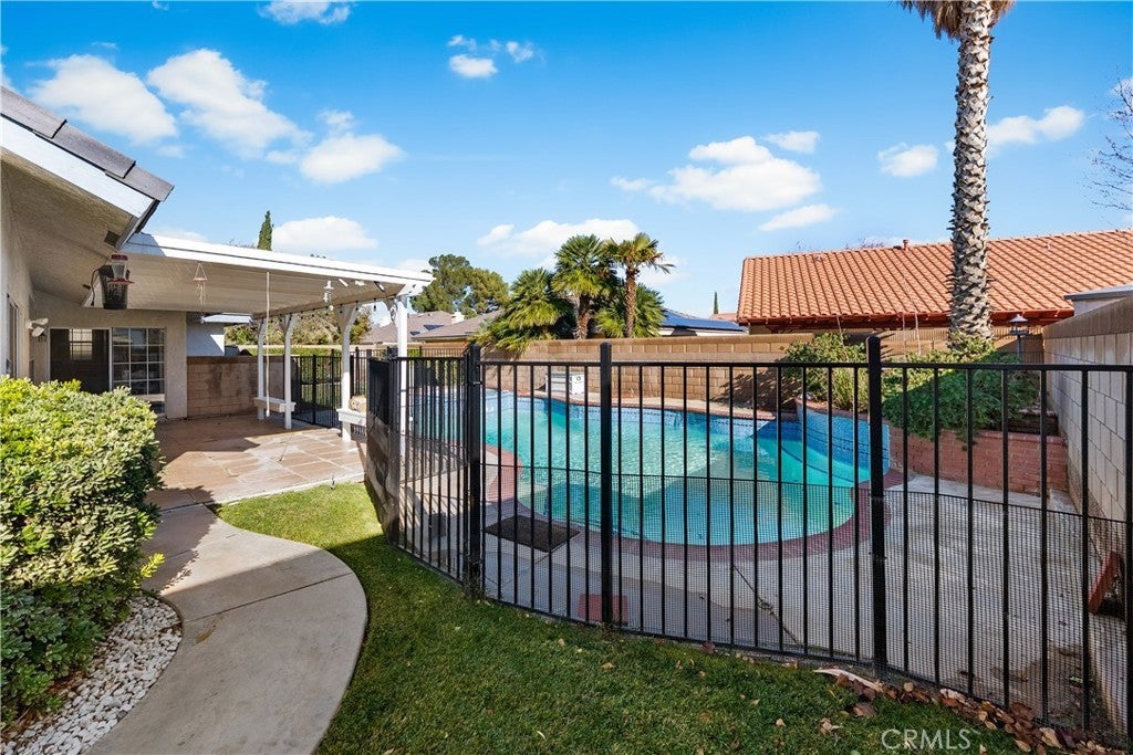 Welcome to this inviting, single-story residence nestled in a desirable area of West Lancaster. This charming pool and spa home offers an exceptional blend of comfort, convenience, and elegance, and is equipped with solar panels and batteries, providing energy efficiency and added peace of mind. Upon entry, you are welcomed into a spacious and light-filled living room featuring premium wood-like laminate flooring, fresh neutral tones, and large windows that flood the space with natural light, creating a warm and open atmosphere. The open-concept floor plan flows seamlessly into the dining area and updated kitchen, showcasing sleek stainless-steel appliances, granite countertops, stylish backsplash, recessed lighting, and ample cabinetry with generous counter space—perfect for everyday living and entertaining. This home offers four generously sized bedrooms, each with ample closet space. The primary suite serves as a relaxing retreat and includes an ensuite bathroom featuring a luxurious shower, soaking tub, and contemporary finishes. The additional bathroom is clean, fresh, and upgraded, offering both style and functionality. Step outside to your private backyard oasis, ideal for relaxing and entertaining. The landscaped yard, large, semi-covered patio, sparkling pool and jacuzzi, create the perfect setting for weekend barbecues, evening gatherings, or quiet mornings. With plenty of space to entertain, or unwind, this outdoor area offers endless possibilities. Conveniently close to schools, shopping, dining, entertainment, and major commuter routes, this home offers both comfort and accessibility. Beautifully maintained and move-in ready, this home is ideal for first-time buyers, growing families, or anyone seeking a turnkey pool and spa property. See it; Love it; Make it yours!
