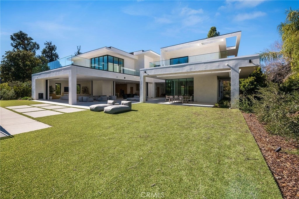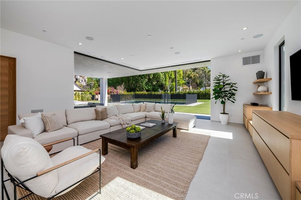 Gorgeous 8000 ft.² Sprawling Modern New construction home South of Boulevard! Fully furnished, this home is truly a showstopper!!! Fully gated and secure, this signature home is located on a lovely peaceful street in Tarzana. This home has the WOW! The stunning entry introduces the modern elegance resonates through the space, greeted by wall of glass opening up to the drive expansive backyard. With soaring ceilings and large living spaces, this home is Engineered for entertaining and family gathering. The kitchen is the refined and spacious anchor, facing a gorgeous 10 seat dining table. Sink into the expansive casual family room that opens into covered back patio, or choose the most intimate bar area to entertain, lounge and relax. All the bedrooms outfitted with king size beds, including the downstairs guest, which afford privacy and convenience. Upstairs you will find a designated comfortable workspace with adjoining balcony and seating area, a luxurious primary suite with 2 walk in closets and wrap around balcony. All the secondary bedrooms are large beautifully appointed, with walk-in closets. The backyard and pool area provides a variety of different lounging areas and dining alfresco is a must! A gorgeous, sparkling pool and space to entertain and enjoy is priceless! 12-month lease, with short-term options open for discussion.