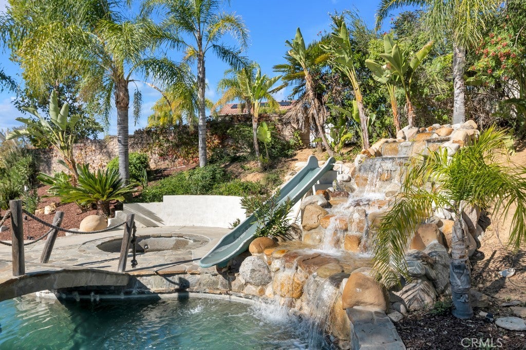 Welcome to 5853 Spirit Lake Ct, a rare single-story jewel in the coveted Shadowhawk enclave. Situated on nearly half an acre of pristine, usable land, this 4 bedroom + bonus room, 3.5 bath executive residence offers timeless elegance, privacy, and a resort style outdoor escape. Located on a premium corner lot, the home welcomes you with a gated courtyard and a bright, open interior featuring soaring ceilings, new flooring, and abundant natural light. The fully reimagined gourmet kitchen stuns with quartz counters, custom cabinetry, SubZero & Viking appliances, and a spacious butler’s pantry, all opening to an inviting family room with built-ins and a fireplace. Retreat to the expansive primary suite featuring a private fireplace, spa-like bath, and direct backyard access. Secondary bedrooms offer Jack & Jill configurations and ample flexibility. A dedicated theater room provides the perfect space for movie nights and immersive entertainment. Outside, your private oasis awaits, enjoy a Pebble Tec beach entry pool with rock waterfall, spa, slide, fire pit, custom planters, fruit trees, and space to entertain or expand (ADU potential). Bonus: paid solar, gated RV parking, and exclusive easement access unique to this home. Conveniently located near trails, dining, award winning schools & the 118 freeway. This is more than a home, it's a lifestyle.