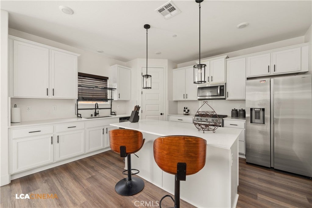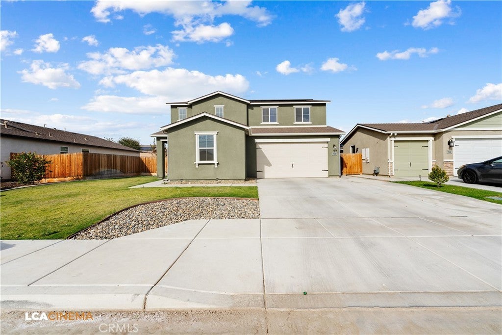 Step into this stunning two-story residence, a spacious haven boasting five bedrooms and three and a half baths within approximately 2,554 square feet of elegant living space and soaring 9-foot ceilings. Upon entry, discover a welcoming guest suite with a full bathroom, providing comfort and privacy for visitors. The heart of the home is an expansive, open-concept living area that seamlessly connects to a chef’s dream kitchen, where shaker-style cabinetry beautifully complements sleek quartz countertops and stylish backsplash. Enjoy the convenience of a walk-in pantry, a centerpiece island adorned with pendant lighting and snack bar, and state-of-the-art stainless-steel appliances—range, microwave, and dishwasher—perfect for culinary adventures. The formal dining space sits gracefully beside the kitchen, ideal for hosting memorable gatherings. Upstairs, retreat to the luxurious main suite with a spa-inspired bathroom featuring dual vanity sinks and a generous walk-in closet, accompanied by three additional bedrooms and a spacious indoor laundry room for ultimate ease. This home masterfully blends comfort, sophistication, and functionality for modern living at its finest.
