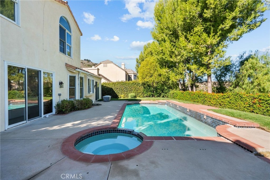 Calabasas Park Estates Residence! Stunning two-story home featuring 5 bedrooms, 3.5 bathrooms, and 2,798 sq.ft. of thoughtfully designed living space. Highlights include maple hardwood floors, recessed lighting, and a light-filled kitchen with granite countertops. The spacious primary suite offers a walk-in closet, city views. Gym area. The private backyard is perfect for entertaining, complete with a sparkling pool and spa. Situated within a prestigious 24-hour guard-gated community, providing exceptional security and privacy.
