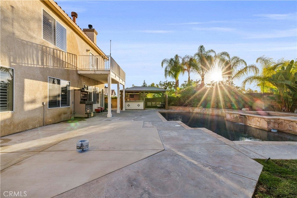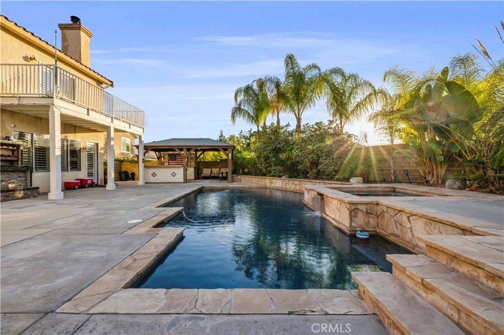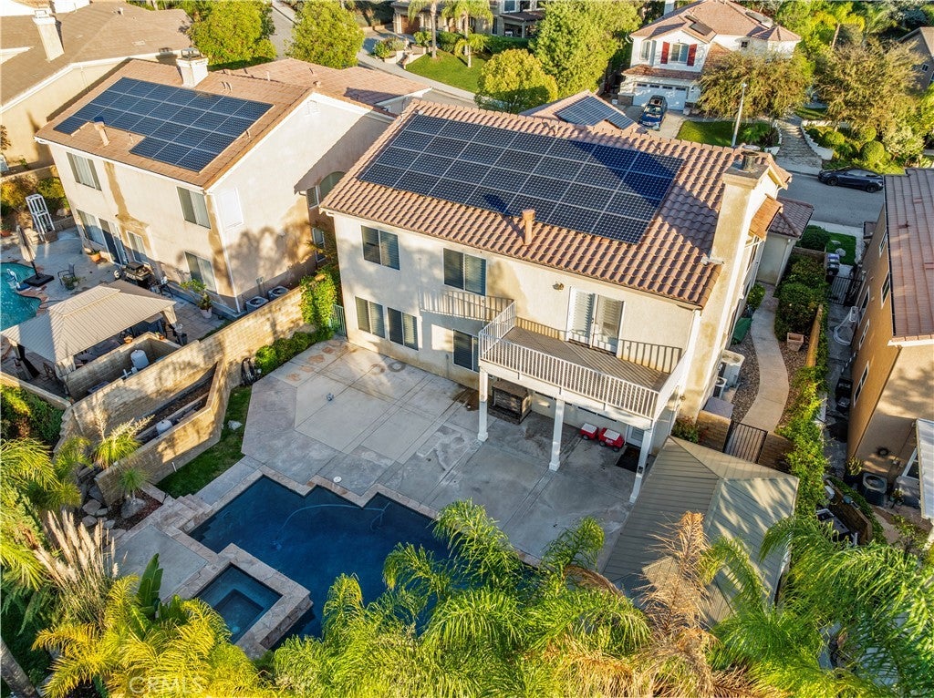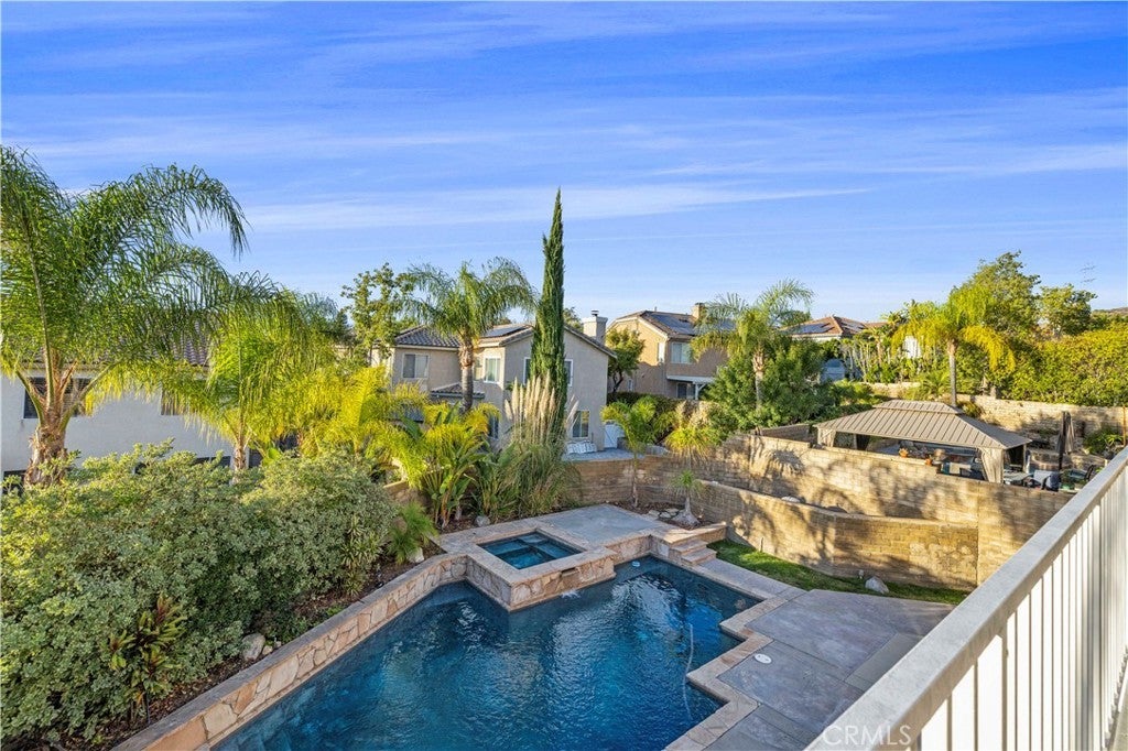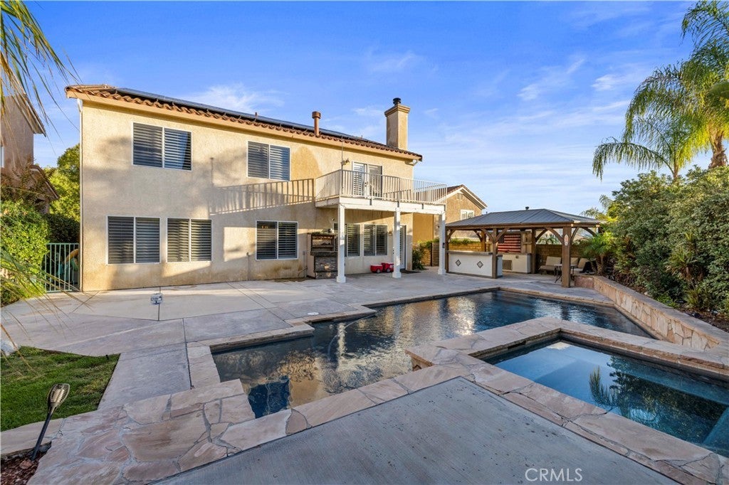 Beautiful “Miramonte” POOL Home in the Heart of Santa Clarita! This incredible property offers PAID solar, no HOA, and no Mello-Roos, along with nearly 3,200 Sq.Ft. of living space. The home boasts 4 bedrooms, 4 bathrooms, a spacious loft, dual master bedrooms, and a detached casita that can easily be converted into an ADU or guest house. Conveniently, one full bedroom and bathroom are located downstairs—perfect for guests or multi-generational living. Upon entering, you’ll immediately notice the new vinyl flooring, plantation shutters, recessed lighting, fresh paint, and thoughtful upgrades throughout. The massive chef’s kitchen is designed for functionality and style, offering abundant storage, granite countertops, a double oven, cooktop, and a walk-in pantry. The dining area seamlessly opens to the inviting family room with a cozy fireplace, making it an ideal gathering space. Upstairs, you’ll find three spacious bedrooms and a large loft that can accommodate a game room, home office, or family retreat. The primary suite features a fireplace, spa-like ensuite bathroom with a jetted tub, and a generous walk-in closet. A secondary bedroom also includes its own updated ensuite bathroom with a walk-in shower heated travertine floors, vanity, plenty of storage, and a spacious walk-in closet. Step outside to your own private oasis. This entertainer’s backyard features a sparkling pool, spa, outdoor gazebo/bar, flat-screen TV, and multiple seating areas—an absolutely perfect space for hosting gatherings or creating new memories. Sitting on a spectacular lot with a private gated courtyard, balcony, and exceptional outdoor amenities, this home truly has it all. A rare find in one of Santa Clarita’s most desirable communities!