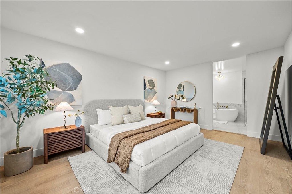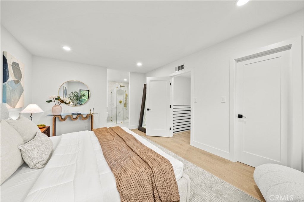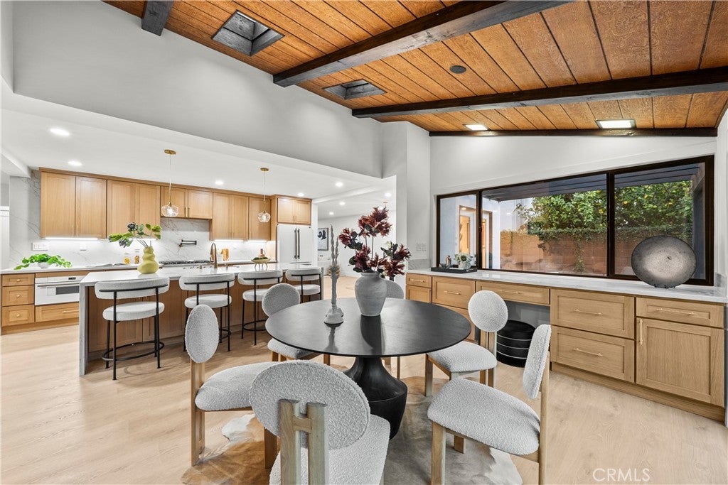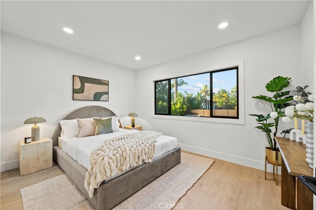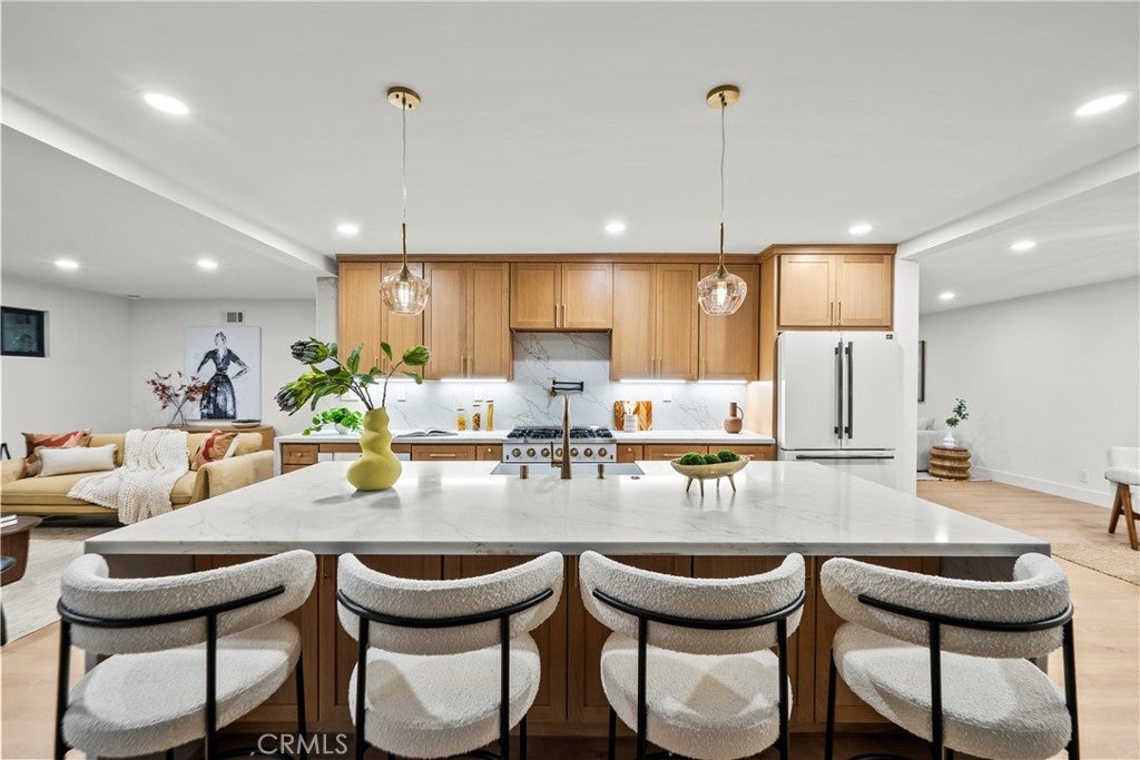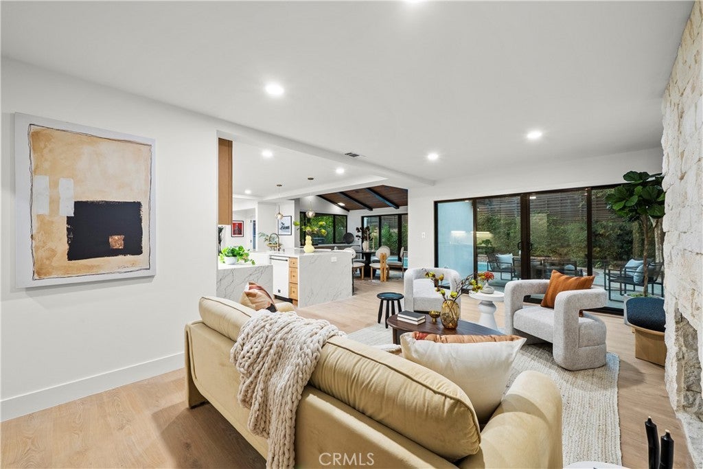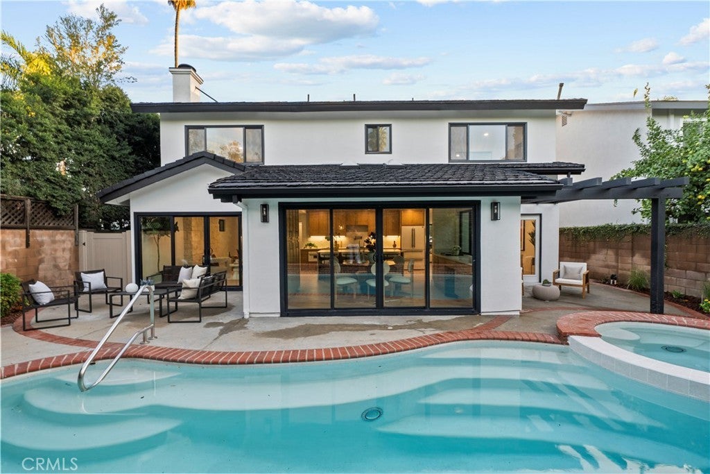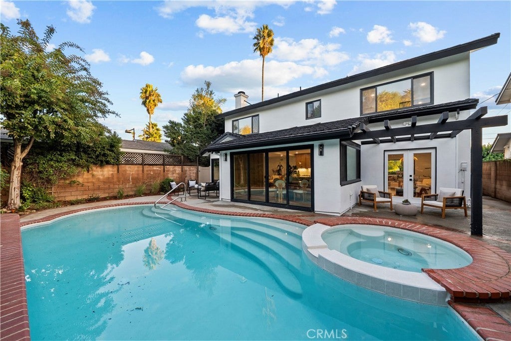 Welcome to this meticulously reimagined home, privately set on a quiet cul-de-sac in prime Sherman Oaks. Thoughtfully redesigned, it blends clean modern finishes with a warm, comfortable feel—offering an elevated lifestyle in one of the Valley’s most desirable pockets. Inside, natural light fills the home, with oversized windows and expansive sliding doors enhancing the indoor–outdoor flow and showcasing the resort-like pool and spa, multiple entertaining areas, and inviting backyard setting. The open layout connects the chef’s kitchen with the living, family, and dining areas, creating a seamless environment ideal for gatherings or quiet evenings at home. The spacious primary suite serves as a true retreat with calming backyard views and a spa-inspired bathroom featuring dual vanities, a freestanding soaking tub, walk-in shower, and generous closet space, while three additional bedrooms offer flexibility for guests, family, or office needs. The backyard captures quintessential Southern California living with a sparkling pool accented by cascading water features and several lounge and dining areas perfect for relaxing or entertaining. The manicured front yard further elevates the curb appeal with a strong presence and an expansive driveway. All of this sits moments from Ventura Boulevard’s top dining, shopping, and entertainment, as well as nearby parks, Westfield Fashion Square, Trader Joe’s, and more—an ideal blend of comfort, style, and location.