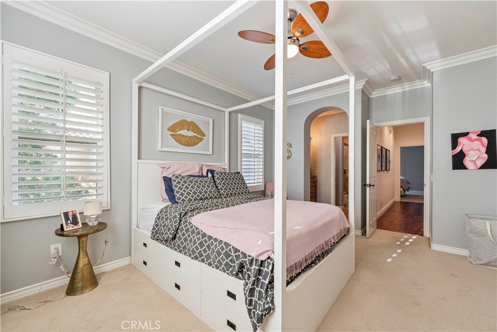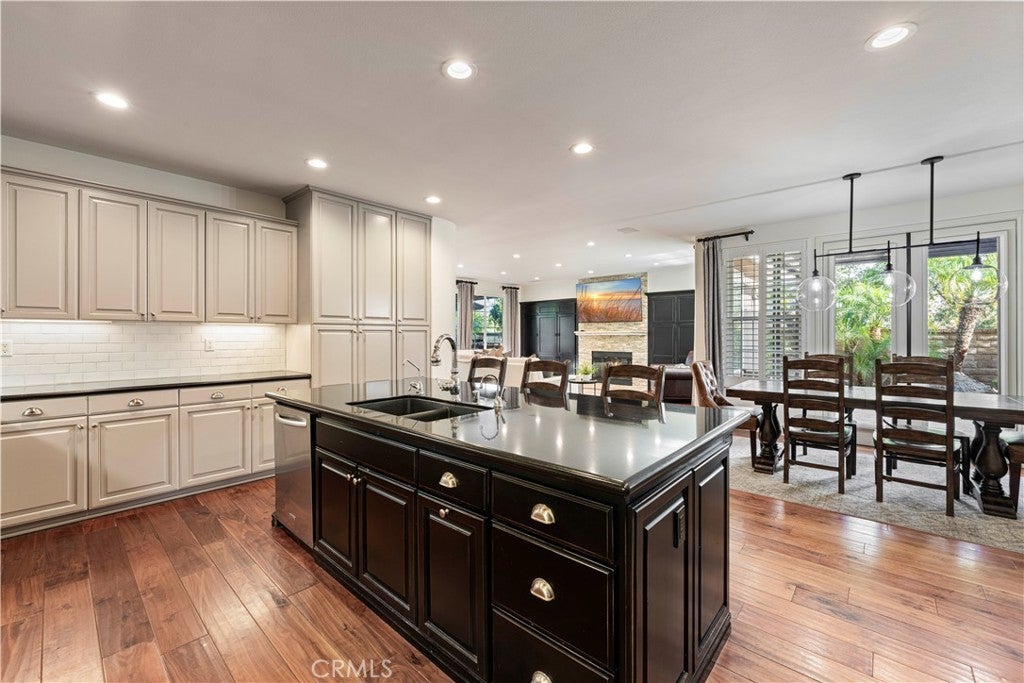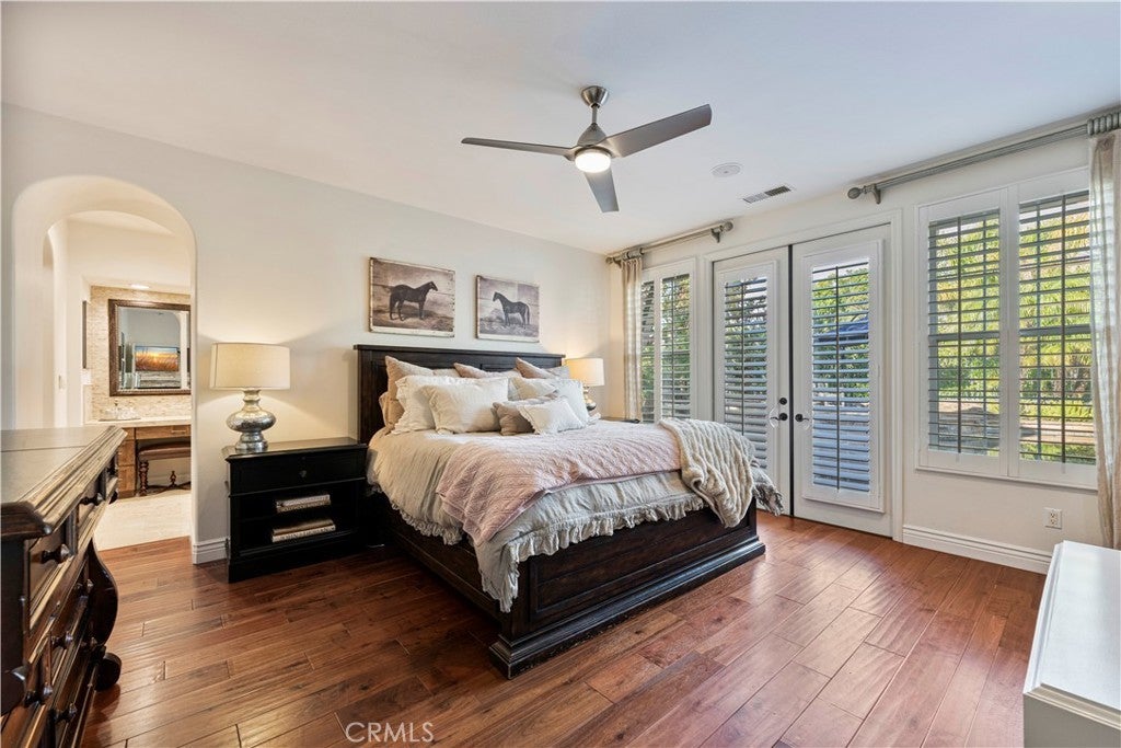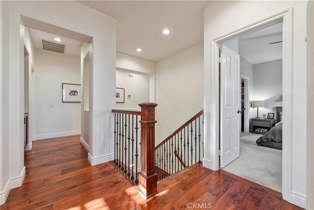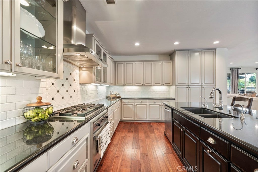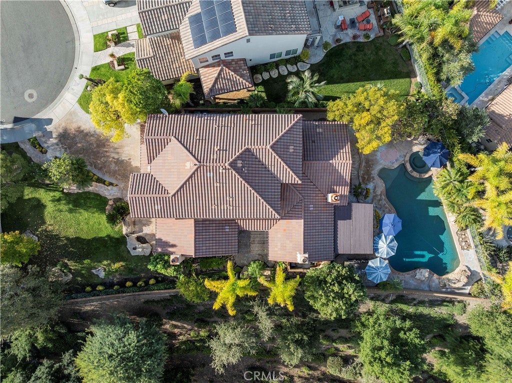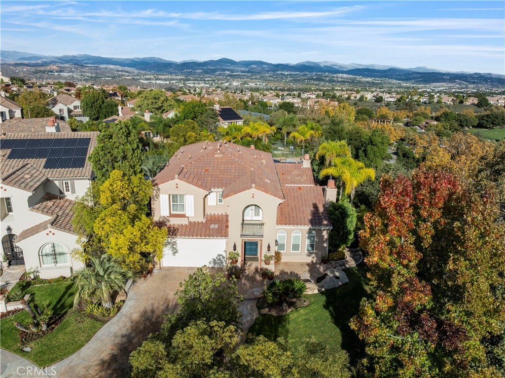 Stunning, designer-upgraded Westridge estate on an exceptional view lot with a resort-style pool! This beautifully appointed home showcases luxury living throughout, beginning with Brazilian hardwood floors, custom wrought-iron staircase, and 3 elegant fireplaces. The highly desired floorplan features a downstairs primary suite with its own fireplace, raised hearth, direct pool access, and a spa-inspired bathroom complete with travertine flooring, stone mosaic backsplash, dual sinks, oversized stone shower with dual shower heads, and a relaxing oval soaking tub. The chef’s kitchen is an entertainer’s dream—highlighted by a large center island, Viking appliances, built-in refrigerator, designer cabinetry, plantation shutters and crown molding. Upstairs you’ll find 3 bedrooms, 2 full bathrooms, and a spacious bonus room or optional 5th bedroom with access to a private viewing balcony to take in the surrounding scenery. Step outside to your private backyard oasis, featuring a pebble-tech pool and spa, dual waterfalls, covered dining area, and a custom outdoor kitchen with BBQ, bar seating, and ample room for entertaining. Situated at the end of a quiet cul-de-sac on a generous 10,000+ sq ft lot, this home offers incredible mountain and city-light views, NO Mello Roos, and access to premier HOA amenities including clubhouse, pool, spa, tennis, tot lot and more. This is luxury Westridge living at its finest.