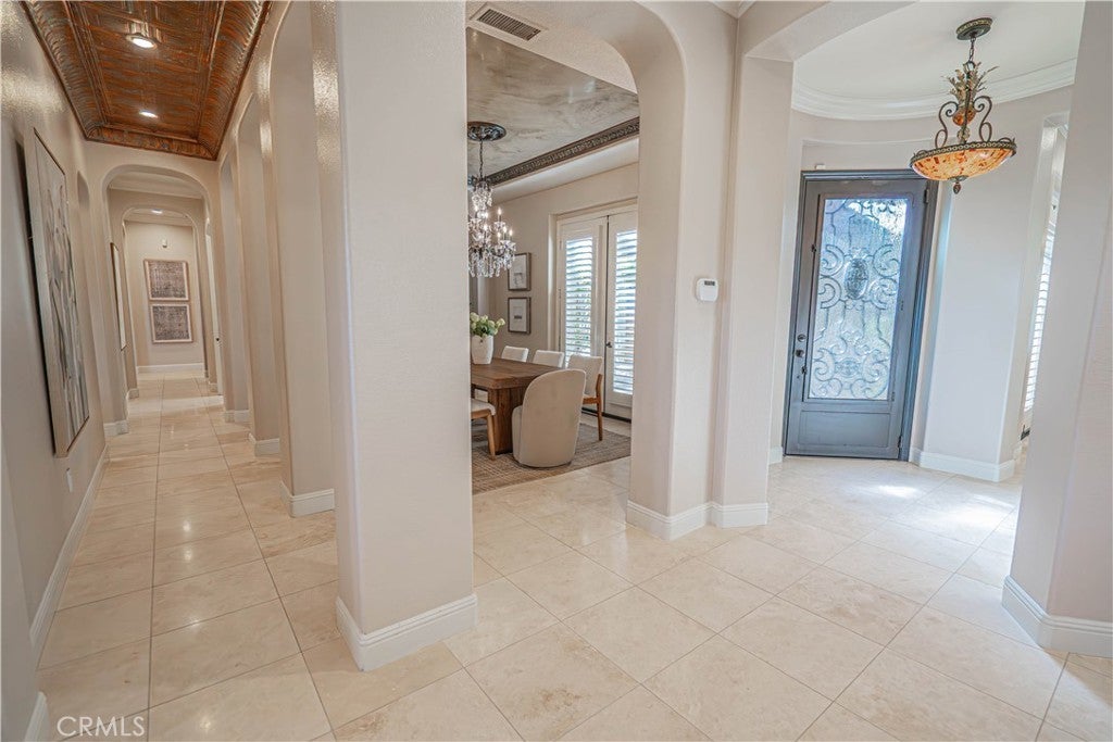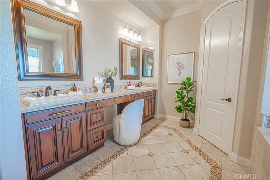 Stunning Oakmont Estate View Home in the prestigious guard-gated Westridge community of Valencia. This beautifully upgraded residence offers 5 bedrooms, 5 1/2 bathrooms, and an exceptional layout designed for both luxury and comfort. The primary suite is conveniently located on the main level and features a private retreat/sitting area and elegant fireplace. Two additional bedrooms with en-suite bathrooms are also located on the main floor, providing ideal flexibility for guests, multigenerational living, or office space. Upstairs you’ll find two more spacious bedrooms, each with their own bath, along with a large bonus room and a dedicated tech center/workstation—perfect for work-from-home or study needs. The interior has been highly upgraded throughout, showcasing refined finishes, quality craftsmanship, and a thoughtfully designed floorplan that complements both everyday living and entertaining. Step outside to your own private escape—complete with a spa, pool, outdoor fireplace, and unobstructed views that capture the best of Westridge living. The gated courtyard entry enhances the privacy and exclusivity of this remarkable estate. Located in one of Valencia’s most sought-after neighborhoods, this home is just minutes from award-winning schools, top-tier shopping and dining, freeway access, and TPC Valencia Country Club right outside the main gate, with Valencia Country Club also close by.