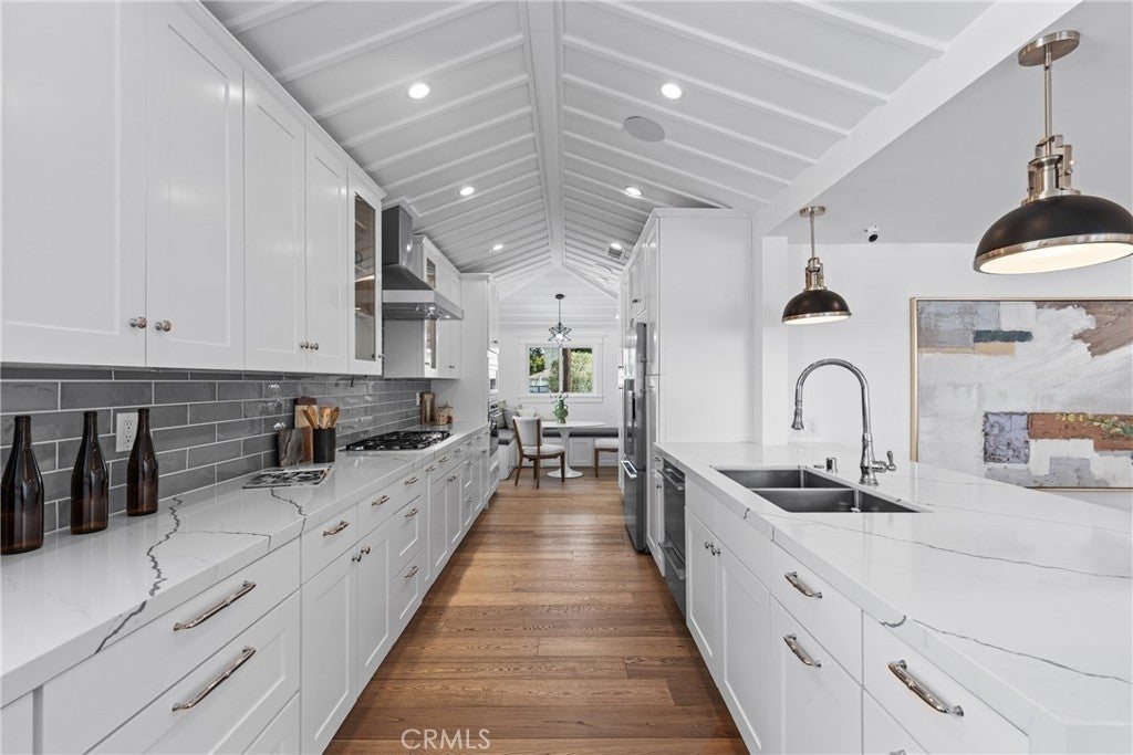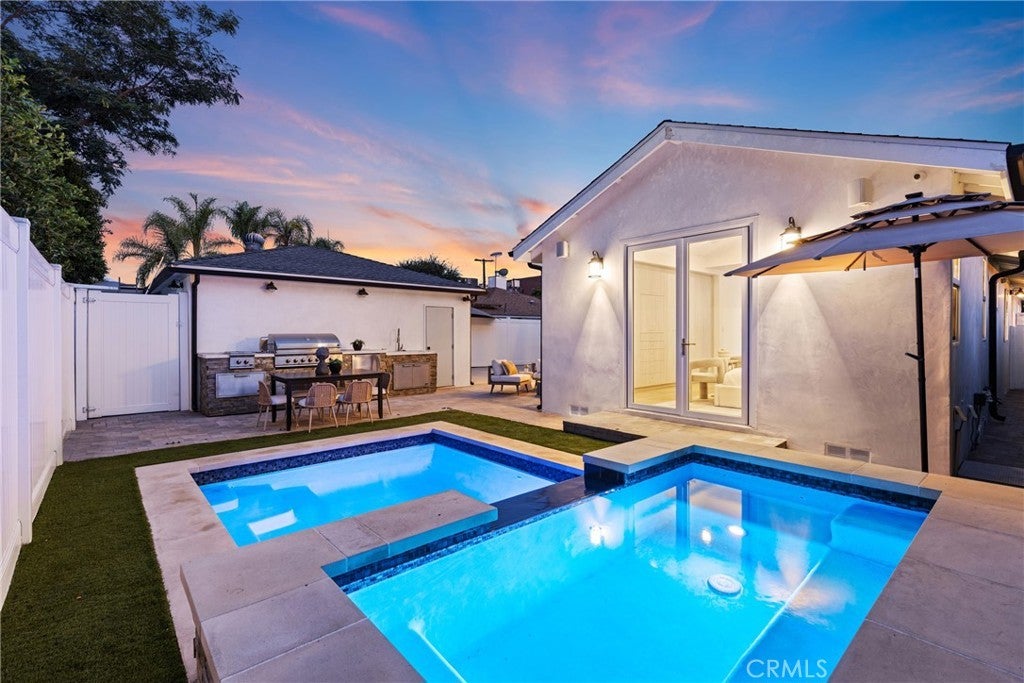 Situated on a peaceful cul-de-sac in a highly sought-after Sherman Oaks neighborhood, this turnkey home has been tastefully updated inside and out. Natural light floods the open and inviting floor plan, highlighting the charming details and timeless character found throughout. At the heart of the home lies the designer chef’s kitchen, equipped with premium stainless-steel appliances, quartz countertops and a built-in breakfast nook. Open to the kitchen, there’s a formal dining room and spacious family room that boasts lofty 14ft ceiling and a Panoramic Door that seamlessly extends your living space into the backyard. Step outside to your private retreat, where you’ll find an oversized spa with a cascading waterfall flowing into the heated pool, a fully equipped summer kitchen, outdoor shower and ample patio space for relaxing or enjoying an al fresco meal. This home offers four generously sized bedrooms and three full bathrooms, including a luxurious primary suite that features a custom built-in closet and spa-inspired bathroom, complete with a soaking tub, large glass-enclosed shower and double vanity. Additional highlights include a formal living room with a cozy fireplace, dedicated laundry room, security system, smart home features (built-in speakers, Nest thermostat, etc.) and a finished detached two-car garage. This property is conveniently located just moments from Westfield Fashion Square, Ventura Boulevard’s vibrant shopping and dining scene, and top-rated public/private schools. Seller will entertain possible carry back.
