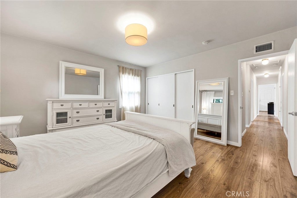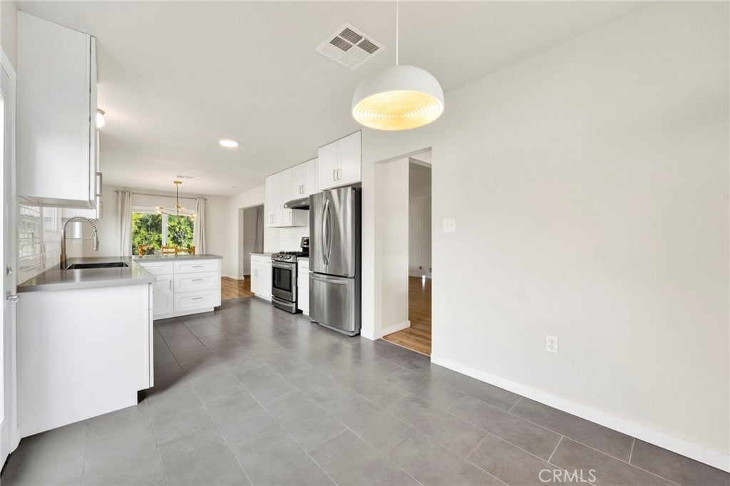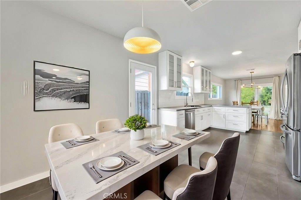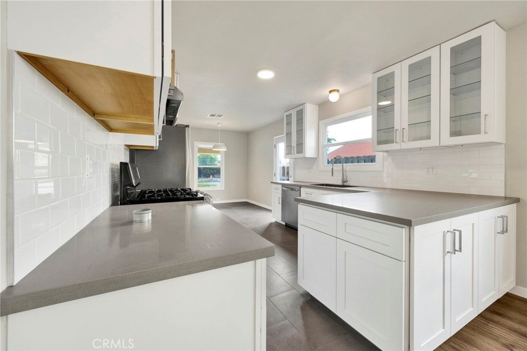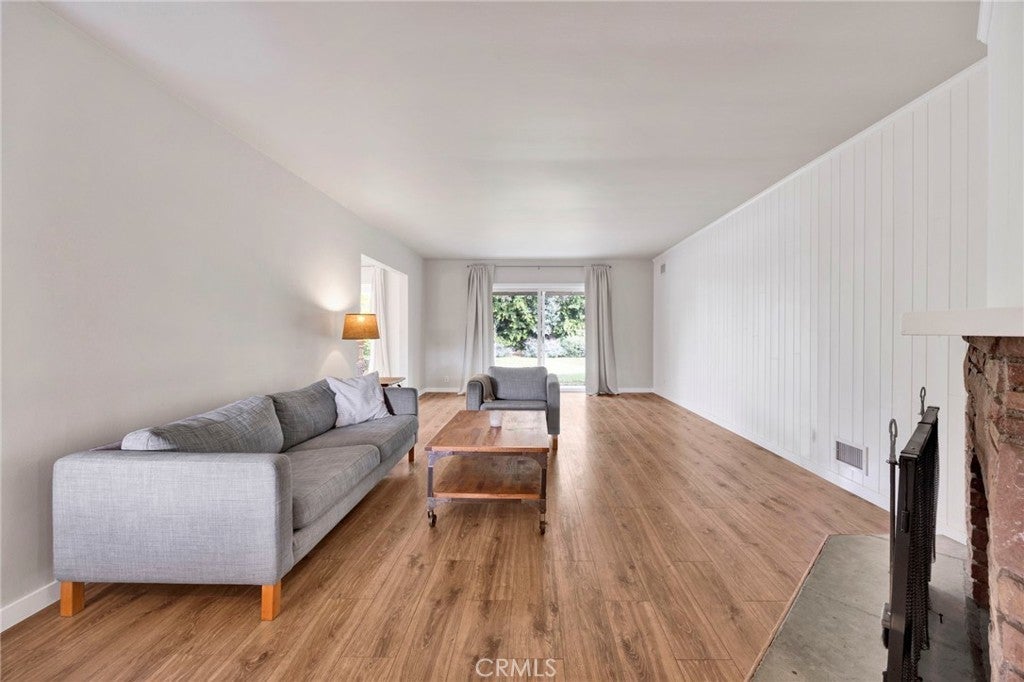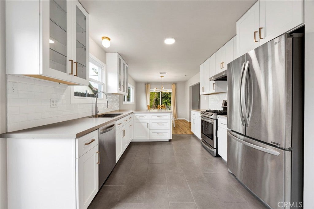 Located in a quiet pocket of Van Nuys is a beautifully updated 4-bedroom, 2-bath home offering over 1,800 square feet of living space on a generous 6,700 SF lot. Blending modern upgrades with preserved mid-century character, this home delivers comfort, charm, and an incredibly functional floor plan. From the moment you arrive, the curb appeal stands out, an expansive concrete driveway, lush landscaping, stone-accented front porch, and an inviting classic blue front door that sets the tone for the warmth inside. Step inside to a thoughtfully designed layout featuring warm laminate wood flooring with new baseboards, smooth ceilings, new double-pane windows and sliding doors, and a spacious living room anchored by a charming wood-burning stone fireplace. The fully remodeled kitchen is a true highlight, complete with tile floors, quartz countertops, white shaker cabinetry with glass inserts, subway tile backsplash, and LG stainless-steel appliances. Just off the kitchen is a cozy breakfast nook framed by large windows overlooking the front yard, a perfect daily dining space. For larger gatherings and holidays, the formal dining area sits adjacent to both the kitchen and living room, keeping everyone connected. All four bedrooms are generously sized, offering ample closet space and flexible layouts for family, guests, or work-from-home needs. The home showcases two original retro-tiled bathrooms, beautifully maintained and increasingly rare to find in such pristine condition. One includes a tub/shower combo, while the second offers a dedicated walk-in shower. Additional improvements include copper plumbing, central HVAC, retrofitted foundation, fresh attic insulation, rain gutters, updated lighting, and direct access from the two-car garage into the home, adding convenience and security. Step outside to a spacious and private backyard offering endless possibilities. With an extended overhang shading the concrete outdoor area, along with raised planter beds, open grassy spaces, and mature trees, this backyard is perfect for entertaining, play, or adding a future ADU, SB9 lot split and more. Just minutes from The Plant, the Theaters, In-N-Out, Starbucks, Home Depot, restaurants, shops, and more. Commuters will love the proximity to the nearby Amtrak Station, 405, 170 and 5 FWY, offering easy access to downtown and beyond. With its numerous upgrades and exceptional features, this home is truly move-in ready and waiting for you to make it your own.