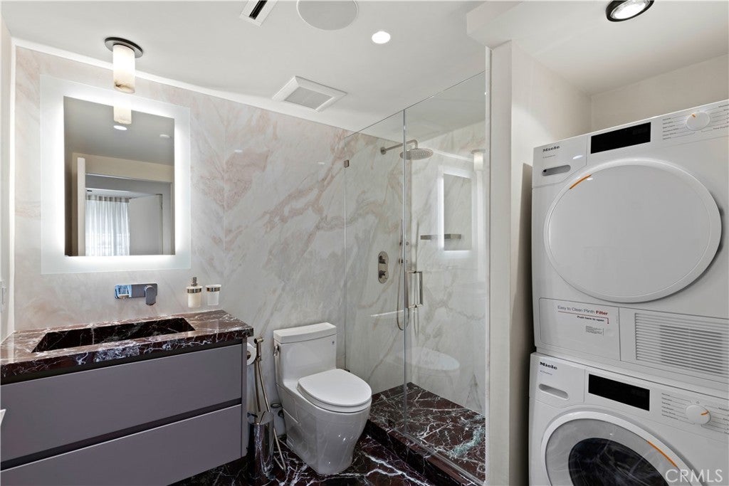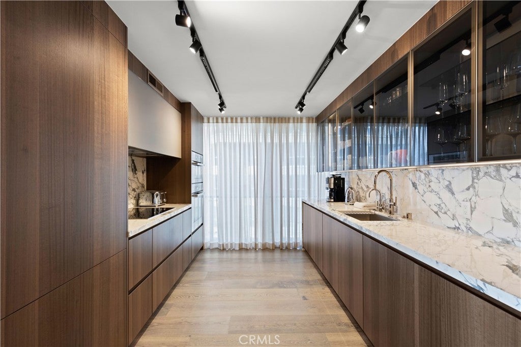Discover unparalleled luxury in this stunning residence at Oceanaire. Designed by world-renowned architect A. Quincy Jones, this ocean-view home combines sophisticated design, high-end finishes, and modern smart home technology for an extraordinary living experience. Every detail of this modern residence has been carefully thought out to create a truly extraordinary living space. Kitchen and laundry are complimented by full suit of top of the line Miele brand appliances. All storage systems, including cabinets, wardrobe, and kitchen were custom-made by Designer Kitchen Studio Inc. Hardwood flooring, venetian plaster and designer lighting fixtures throughout. Kitchen and bathroom are decorated with beautiful natural stone. Unit is sold fully furnished. Furniture content is represented by leading European brands such as Cantoni, Artitalia and Luminaire. Seamless indoor-outdoor flow with floor-to-ceiling windows and sliding glass doors leading to a panoramic balcony with direct unobstructed view of the Pacific. Automated curtains open and close by push of a button. This residence includes two side-by-side parking spaces with a convenient storage cabinets. Building amenities include a gym, Zen garden, and 24 hour concierge service. Live where elegance meets lifestyle in one of Santa Monica’s most sought-after addresses.
