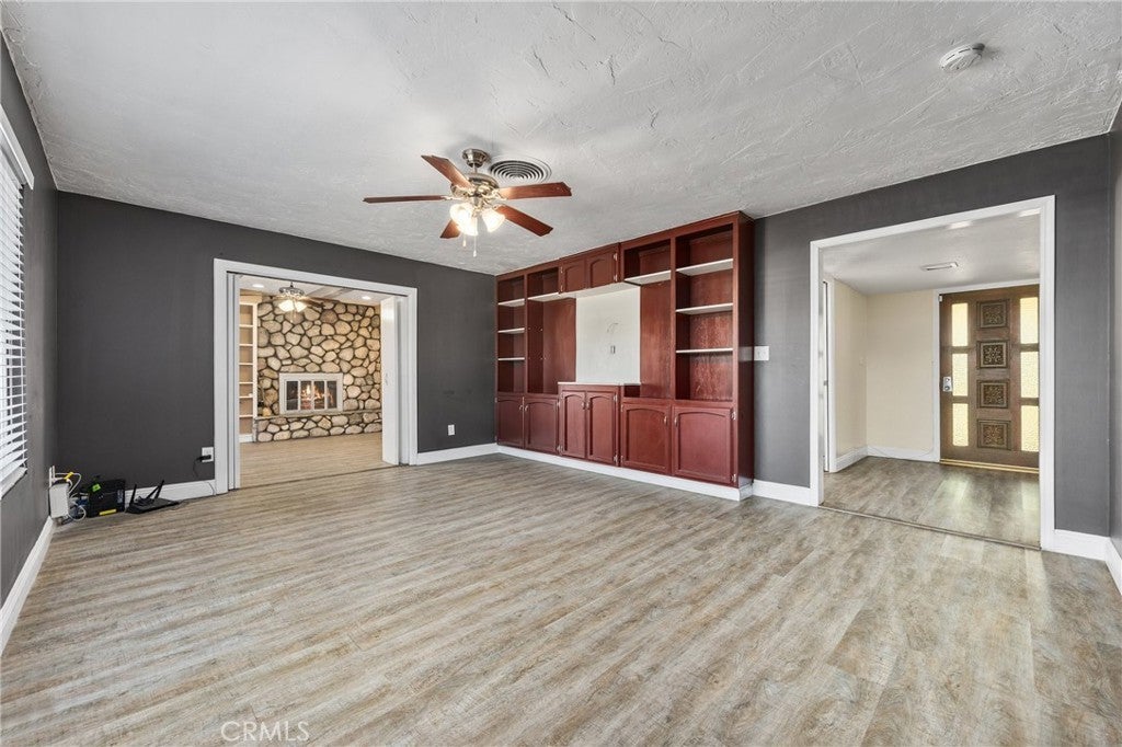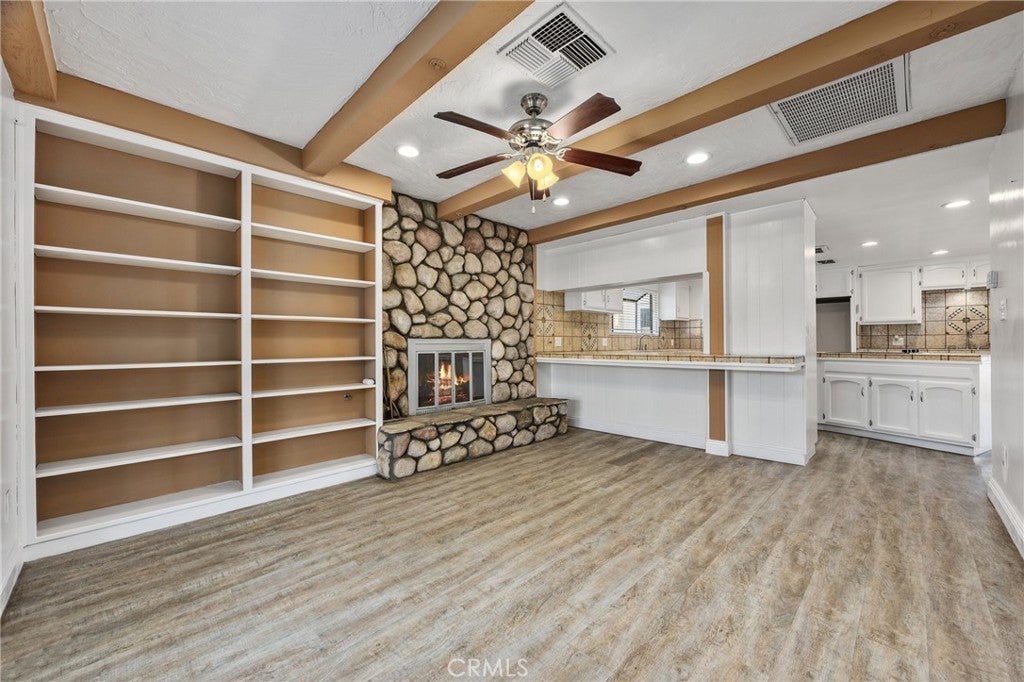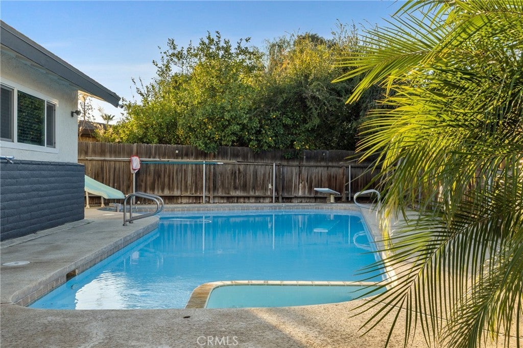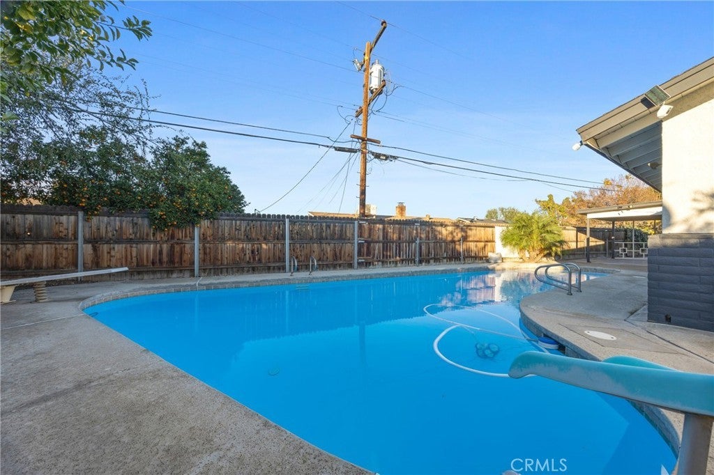 Welcome to this charming 3-bedroom, 2-bathroom turnkey home, nestled in a quiet cul-de-sac with a private pool and backyard oasis—perfect for relaxing or entertaining! Step inside to a bright and inviting kitchen and dining area, featuring classic tile countertops, abundant cabinet and pantry storage, a large island, a dual sink, and a built-in wine cabinet. Expansive windows fill the space with natural light and open effortlessly to the living area. The family room features a beautiful real-stone fireplace, creating a warm, inviting centerpiece for cozy evenings or lively gatherings, complemented by built-in display cabinets for added charm. The formal living area offers ample space for entertaining or everyday living. The primary suite is very spacious and filled with natural light, featuring the primary bathroom with granite countertops, a vanity, and a grey-tiled shower. Two additional bedrooms are bright and airy, each with ample closet space, and a second bathroom with granite countertops and a tiled shower. A sparkling pool and private backyard make this home perfect for enjoying the outdoors. Conveniently situated near local schools and stores, this home provides exceptional comfort, generous space, and a welcoming neighborhood feel!