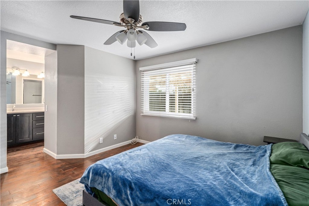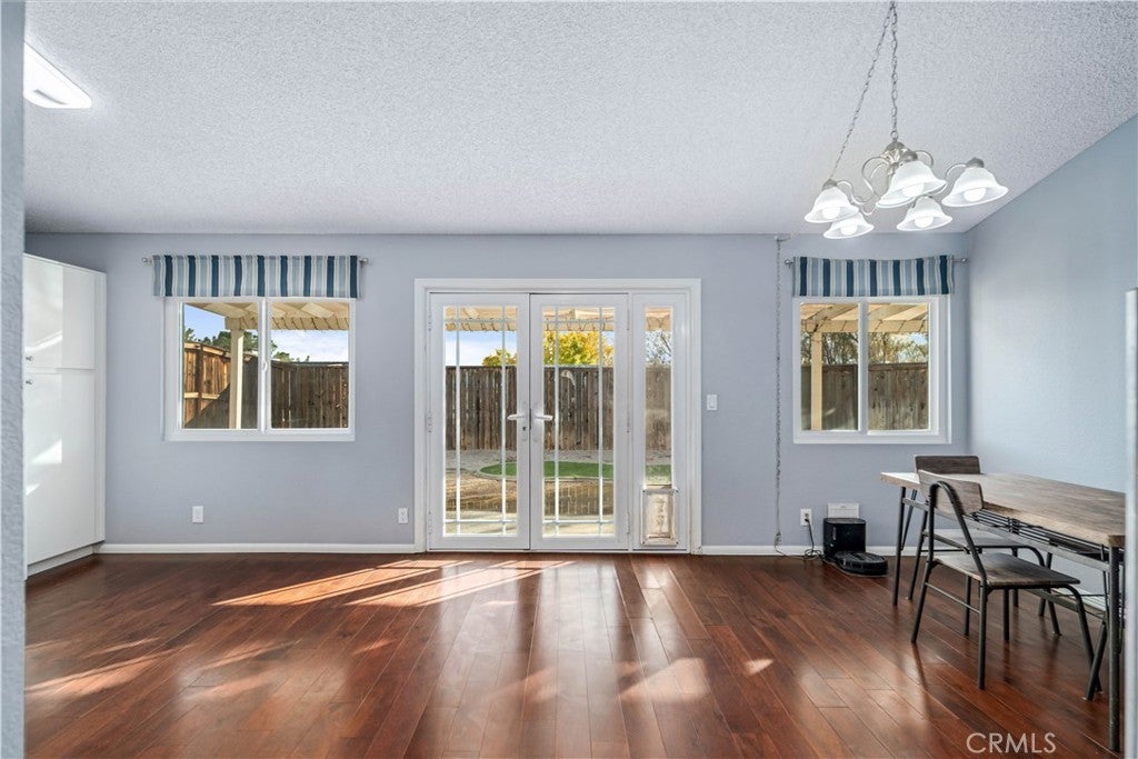 Welcome to the light-filled formal living and dining room, featuring vaulted ceilings, laminate wood flooring, and an attached 2-car garage with direct access. The open layout seamlessly transitions into a second living area, currently used as a dining room, which flows effortlessly into the upgraded kitchen. The kitchen boasts designer two-tone cabinetry, stainless steel appliances, a French door leading to the backyard, and a cozy fireplace with a marble-look surround. This beautifully updated home comes with an impressive list of upgrades, including newer windows, a newer heating and AC system with updated ducting, a newer roof, updated flooring, designer interior paint, and a water filtration/softener system. The spacious primary bedroom features a wall-length closet and an additional closet in the en-suite bath. The refreshed primary bathroom includes a dual-sink vanity, a large walk-in shower, updated fixtures, and fresh paint. Both secondary bedrooms are generously sized with ample closet space and share a guest bathroom with a vanity featuring a composite countertop and a designer backsplash. Step outside to your private backyard oasis, perfect for relaxing or entertaining. It features a covered patio, low-maintenance landscaping, and custom concrete-curbed planters, all creating a peaceful setting to take in beautiful sunrises and sunsets. Won't last long call today!!