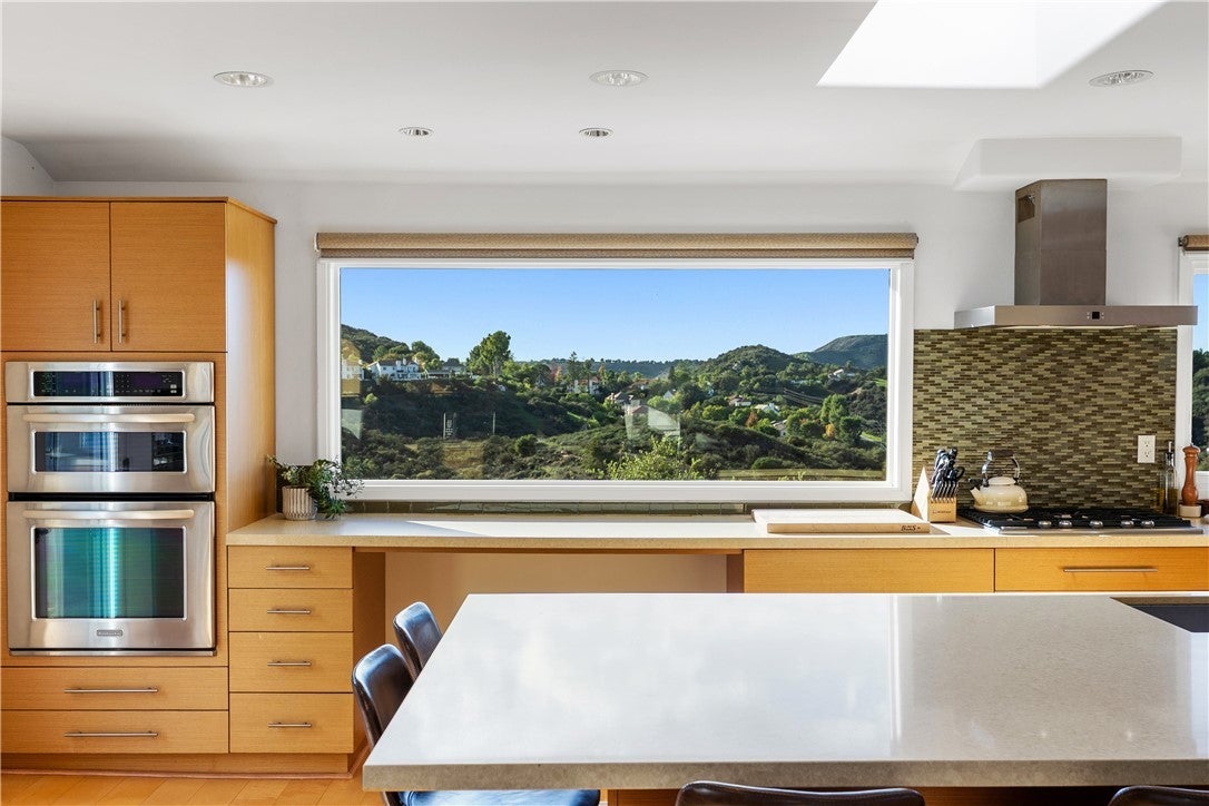 This beautifully updated Calabasas Highlands home offers three bedrooms, three baths, an elevator, and sweeping views across the surrounding canyon landscape inspired by the San Juan ridgelines. Filled with natural light, its warm and intuitive layout includes inviting living areas that open to expansive decks and patios perfect for morning coffee, outdoor dining, and year-round enjoyment. A serene primary suite is framed by treetop and mountain vistas, and flexible spaces throughout the home provide the ideal setting for work or relaxation. Perched in a quiet and charming enclave, the property sits within the sought-after Las Virgenes School District and is just minutes from Viewpoint School, Malibu beaches, and access to Calabasas Peak along with multiple scenic hiking trails right outside your door. A private hot tub overlooks the valley and the Santa Monica Mountains creating the perfect spot to unwind as the sun sets, which is truly spectacular here. Everyday conveniences are close by including the Calabasas Commons, Erewhon, and Bristol Farms, while quick access to Malibu and the 101 freeway keeps the best of Southern California within easy reach. With modern updates, incredible vistas, and a peaceful Highlands setting that offers serenity, community, and a deep connection to nature, this home stands out as a move-in-ready retreat full of character and warmth.