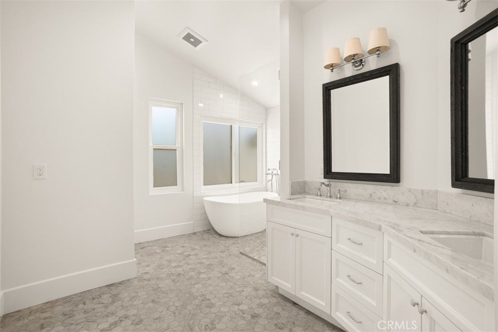 Welcome to your oasis in the heart of Woodland Hills! This newly renovated, spacious 3-bedroom, 3-bathroom home, complete with an office, is situated South of Ventura Blvd. This home has been meticulously upgraded to offer the utmost in comfort, style, and functionality. Step inside and be greeted by the warmth of engineered hardwood flooring that runs seamlessly throughout the expansive living areas. The open-concept design offers an abundance of natural light throughout. The kitchen includes a brand-new professional Monogram gas range, new dishwasher and stunning Caesarstone Quartz counters. Every space is a testament to elegance and functionality, designed to enhance daily living. Indulge in a spa-like atmosphere as you retreat to the primary bath, adorned with Carrara marble flooring. The same exquisite Carrara marble graces the hallway bath and counters. Recessed lighting throughout the house creates an inviting ambiance, illuminating the exquisite details and high-end finishes that define this residence. New cabinets provide ample storage, while the epoxy floors in the garage speak to the attention given to every facet of this home. A new roof and HVAC is included on the comprehensive list of upgrades that make this property truly exceptional. With its ideal location, luxurious upgrades, and unparalleled attention to detail, this Woodland Hills gem is the perfect retreat to call home. Don't miss the opportunity to make it yours!