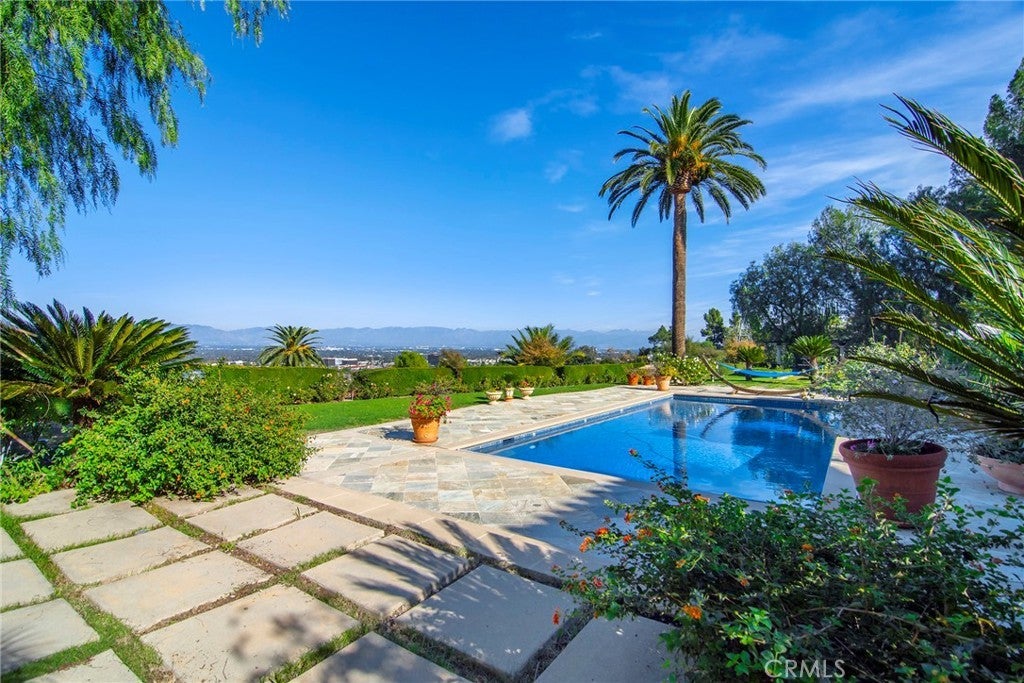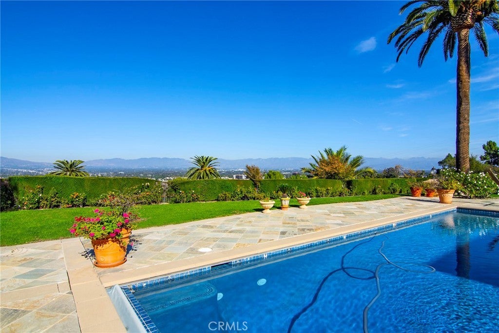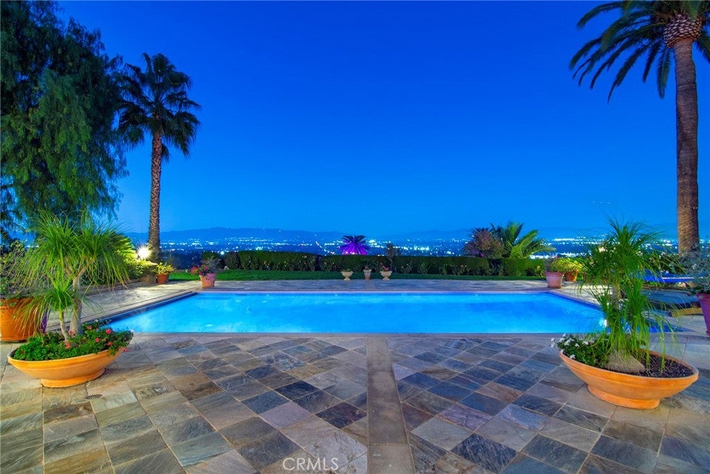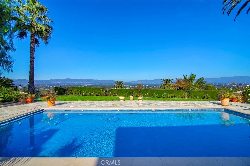 Presenting a magnificent custom Tuscan nestled “South of Blvd” within the tranquil hills of Tarzana. Spellbinding views from the rocky Santa Susana mountains in the northwest corner of the Valley spanning clear across to the east while capturing hypnotic visions of glistening lights, majestic mountains and all the daytime dazzle of the Valley below. Gated entrance at the end of a quiet cul-de-sac leads to this ultra-private nearly 8,400 sq. ft. estate on 1.5 acres designed and crafted by these original owners. Beautiful arches and grand columns entice you to explore more. Inside, a living room with 20 ft. soaring ceilings, family room with fireplace and spacious formal dining all offer large windows to ensure the glorious views are always right by your side. Open & bright kitchen features a large center-island & adjacent breakfast nook with plenty of windows to enable you to devour the sumptuous sites with each and ever meal. Large office, game-room and ensuite further enhance the lower level. Choose the grand curved staircase or the stairs adjoining the kitchen to guide you to the upper level or…if stairs are a strain, an elevator is at your service affording the opportunity to remain for a lifetime. Your double-door entry primary suite provides three prime vantage points to soak in the sights….cozy adjoining reading/relaxation arena, large private balcony and from the comfort of your bed as the last thing you see each night and the first as you arise. Spacious luxurious bath and a massive walk-in closet add to its appeal. Three additional ensuites with balconies and an upper-level family room option are ideal. Outside, these palatial rear grounds offer a sensational sanctuary to indulge in a true southern California lifestyle. With the jaw-dropping panoramic backdrop visible form virtually every inch, the experience is like no other. Enjoy a solar heated pool, soothing spa, barbeque center/dining area and a sprawling grassy area. This is one not to be missed!