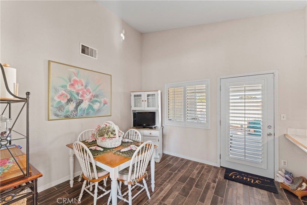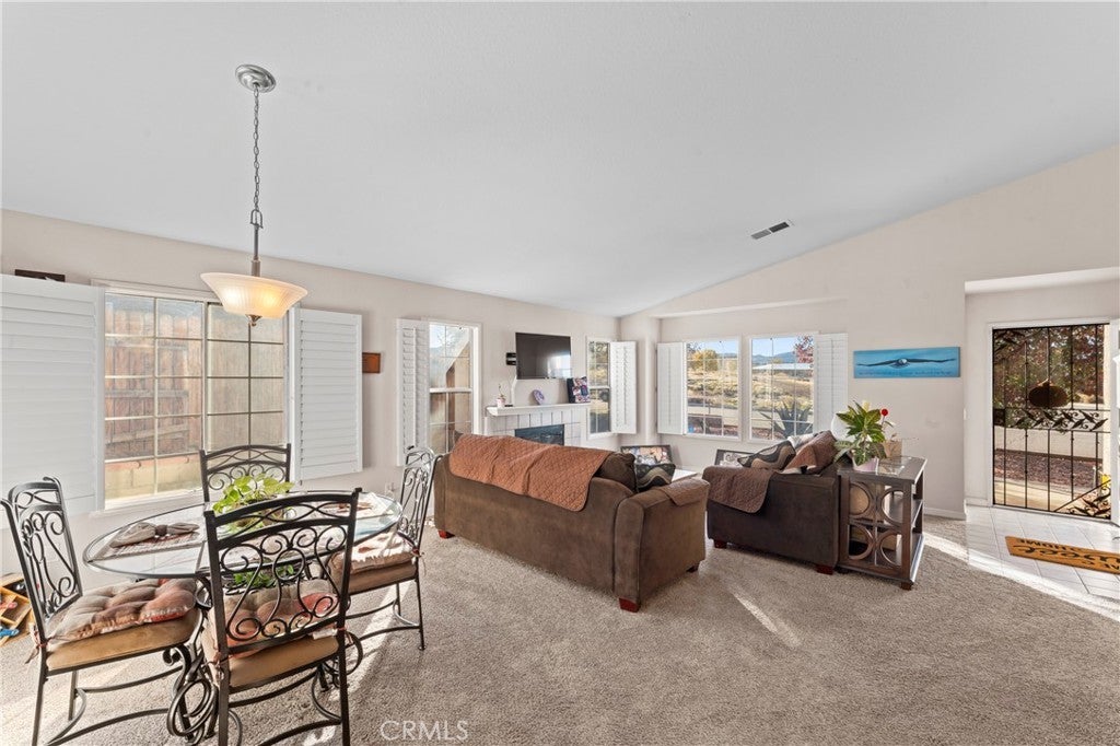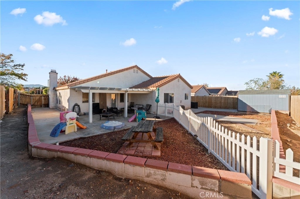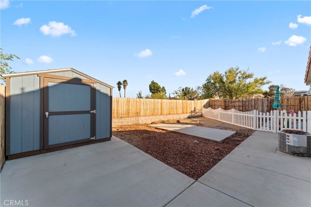 This 3 bedroom, 2 bathroom single story house with a mountain view is move-in ready! Light and bright inside, the home features a large family/dining room with gas fireplace, a plethora of windows and PLANTATION SHUTTERS. Contemporary faux wood tile flooring elevates the kitchen and nook. The primary bedroom suite features a private bathroom with separate tub and shower, double sinks and a walk-in closet. Additionally, the guest bathroom has been updated and remodeled. A convenient indoor laundry room comes with an INCLUDED NEWER LG THINQ WASHER & DRYER!! The spacious 3-CAR GARAGE is perfect for storage or extra vehicles and includes a NEWER WATER HEATER and pressure regulator. The backyard has a covered patio, concrete slabs, rock landscaping, as well as a gated dog run. A newer 8’x12’ TUFF SHED IS ALSO INCLUDED for additional storage. Located in an established neighborhood (with no neighbors across the street), the home is close to Barrel Springs Elementary, a California PBIS Silver Implementation Award winning school. Fast & easy access to a main road is only a 2 block drive to Pearblossom Highway, near CA14.