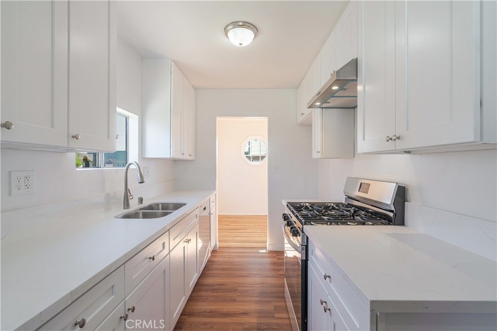 Beautifully upgraded 2-bed + 1-bath home in the heart of Los Angeles offers 858 sq. ft. of living space on a 6,237 sq. ft. lot. A brand-new shingle roof was just installed on both the home and the detached two-car garage. The front door leads to an open-concept living and dining area, featuring refinished hardwood floors that carry through the main living spaces and bedrooms. This layout flows seamlessly into the remodeled kitchen, complete with brand-new stainless steel appliances, quartz countertops, new luxury vinyl plank flooring and upgraded cabinetry. The bathroom has also been refreshed with brand-new tile flooring and updated finishes. Laundry is conveniently located inside the home. A long driveway leads to two detached garages: a full two-car garage plus an additional one-car garage, ideal for a workshop, extra storage, or future ADU possibilities. The spacious lot offers plenty of room for outdoor entertaining. Nearby attractions include the iconic Watts Towers, the recreational spaces at Ted Watkins Memorial Park, the shopping and amenities at Jordan Downs Plaza, and a variety of local dining spots. Probate Sale. Court Confirmation NOT Required. Some photos have been virtually staged.