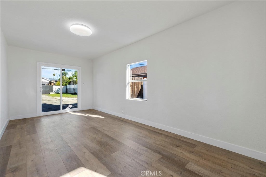 Tucked behind a freshly painted exterior and a bold colored stamped driveway, this fully remodeled home is the kind of opportunity buyers wait years for. Step inside and feel the difference—eco-engineered wood laminate floors flow wall-to-wall, guiding you through an open living and dining space that leads into a true family room (could be 3rd bedroom) w/ new sliding door built for gathering. The kitchen shines with brand-new cabinets, quartz countertops, modern fixtures, and new appliances, while the remodeled bathroom stuns with a designer tile shower, new vanity, fixtures, and window. Big bedrooms feature ceiling fans throughout for comfort year-round. Off the kitchen, a dedicated laundry room includes a pantry and a new water heater for added function. Outside is where the story gets exciting—an enormous fully fenced rear yard with a huge covered patio, custom powered storage shed, and direct front, rear and RV access (parking). The lot is ideal for multiple ADUs and/or future home expansion. With a new roof, fresh interior and exterior paint, updated landscaping front and back, and true turn-key condition, this home is perfect for first-time buyers, multi-generational living, or investors ready to maximize returns. Close to schools, shopping, dining, and the 5 Freeway—this one checks every box. Opportunities like this don’t wait. Neither should you.