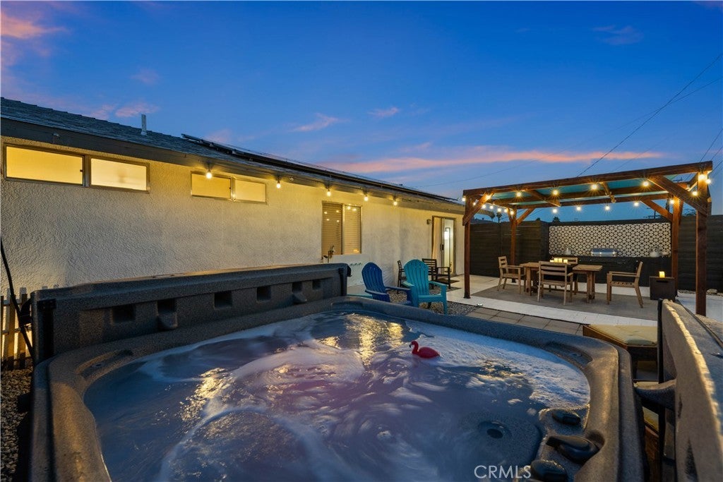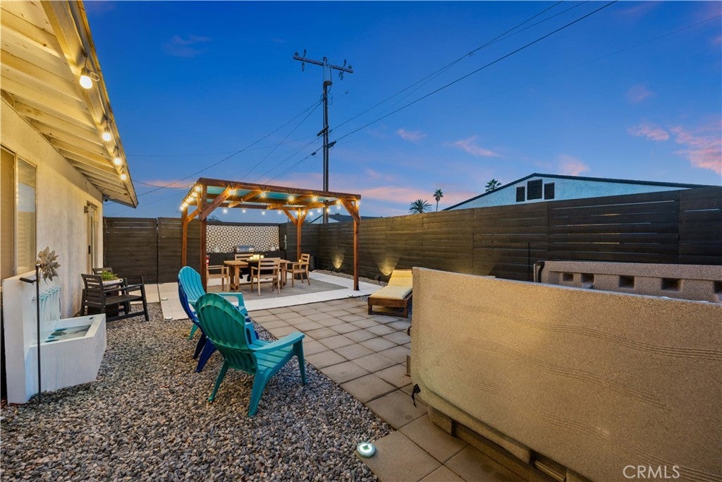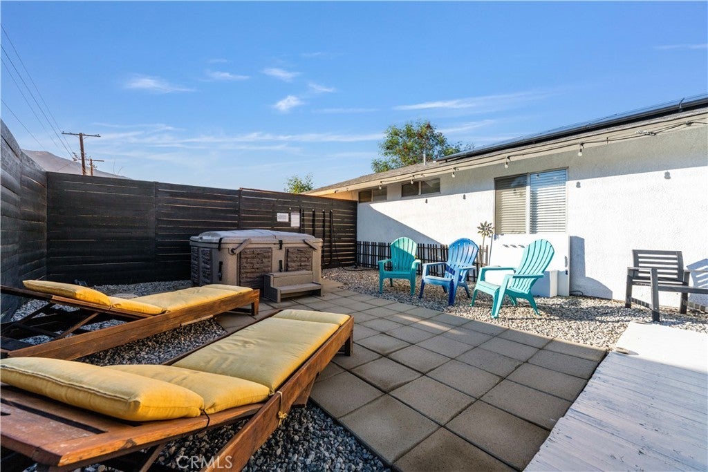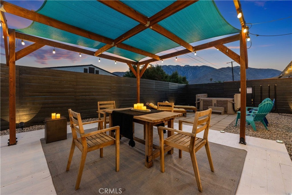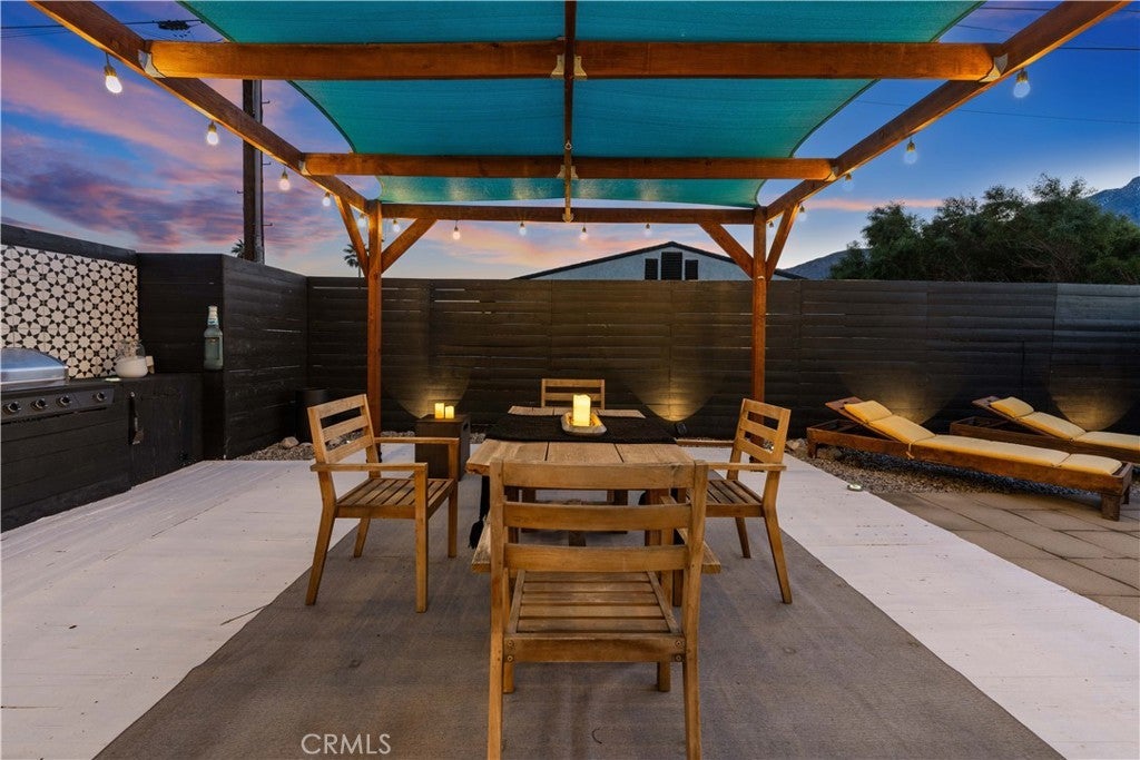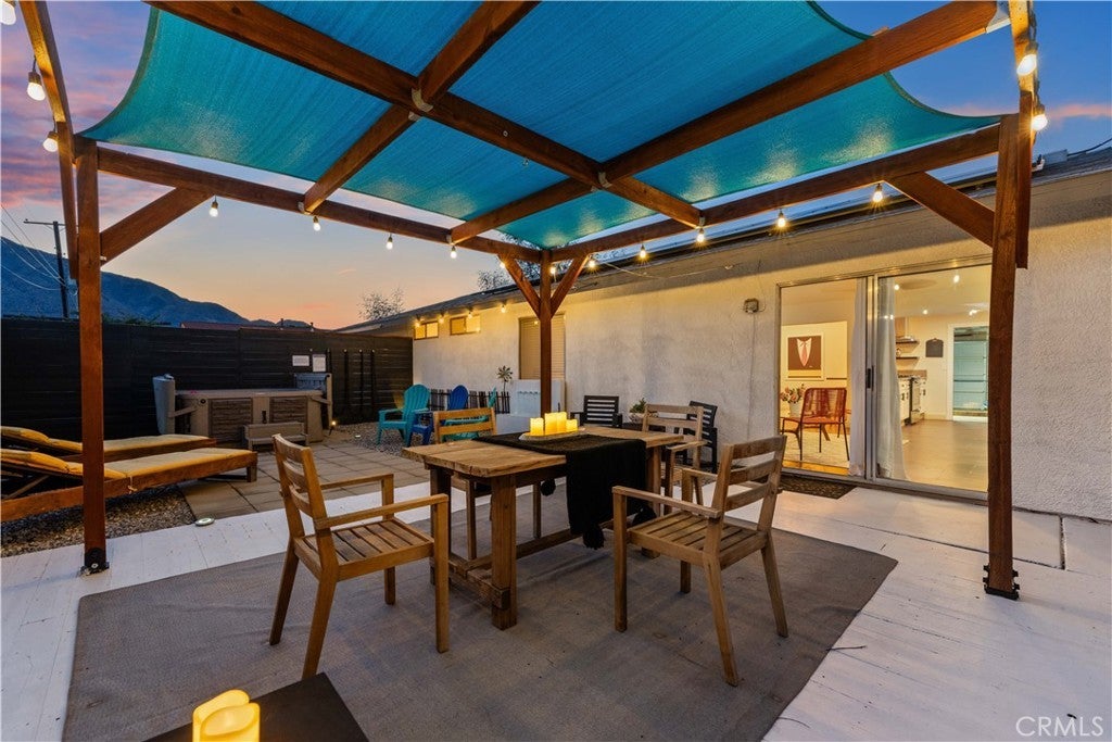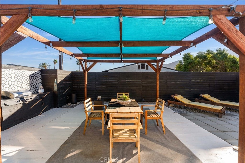 Experience modern comfort and thoughtful upgrades in this turnkey home located in Desert Highland Gateway Estates. Step behind the front gate and into a classic Palm Springs stunner where clean lines, warm light, and an inviting flow define this single-story retreat just minutes from Downtown. A spacious, fully fenced yard creates a private, modernist first impression. As you approach the black window-pane door stands like a modern art piece simple, bold, and beautiful guiding you into the stylish entryway. Offering 4 bedrooms and 2 baths across 1,284 sq ft, this home sits on a 7,840 sq ft lot with mountain views and a direct-access 2-car garage. Inside, warm faux tiled floors and soft natural light lead to an open living space where the kitchen, dining, and lounge areas blend effortlessly. Quartz countertops and stainless-steel appliances including a polished 5-burner stove with a minimalist wall-mounted range hood set the tone for modern Palm Springs living. A chic dining bar with dual wine refrigerators adds a touch of retro sparkle. Inside, the four bedrooms and two refreshed bathrooms feature clean subway tile, modern fixtures, and a walk-in rainfall shower for a bright, chic interior. The primary room features updated bathroom with a stylish walk-in shower. Sliding doors open to the backyard, creating that iconic indoor-outdoor connection. The entertainer’s backyard feels like a vintage desert hideaway with a shaded pergola, spa, and relaxed lounge zones. Enjoy a beautifully crafted custom BBQ for effortless, year-round entertaining, perfect for gatherings, dinners under string lights, or simply taking in views of the Aerial Tramway. The front yard is also pre-verified by the City for a pool permit. The home includes smart upgrades such as a 3.6 kW solar system with 10 Trina panels offsetting about 60% of annual electricity use, paired with an LG Chem back-up battery. A commercial-grade Lennox AC system ensures pristine climate control, while the Life Source whole-house filtration system provides purified water throughout. Includes Brinks security system. Located minutes from Downtown you’re surrounded by retro boutiques, iconic dining, art galleries, design shops, and nighttime glam. Minutes from the Palm Springs Aerial Tramway offering a breathtaking cinematic mountain views. Short drive to the Coachella Festival, this home shines as a stylish primary residence, a chic desert escape, or a high-demand Airbnb/STR investment. No HOA or Mello.