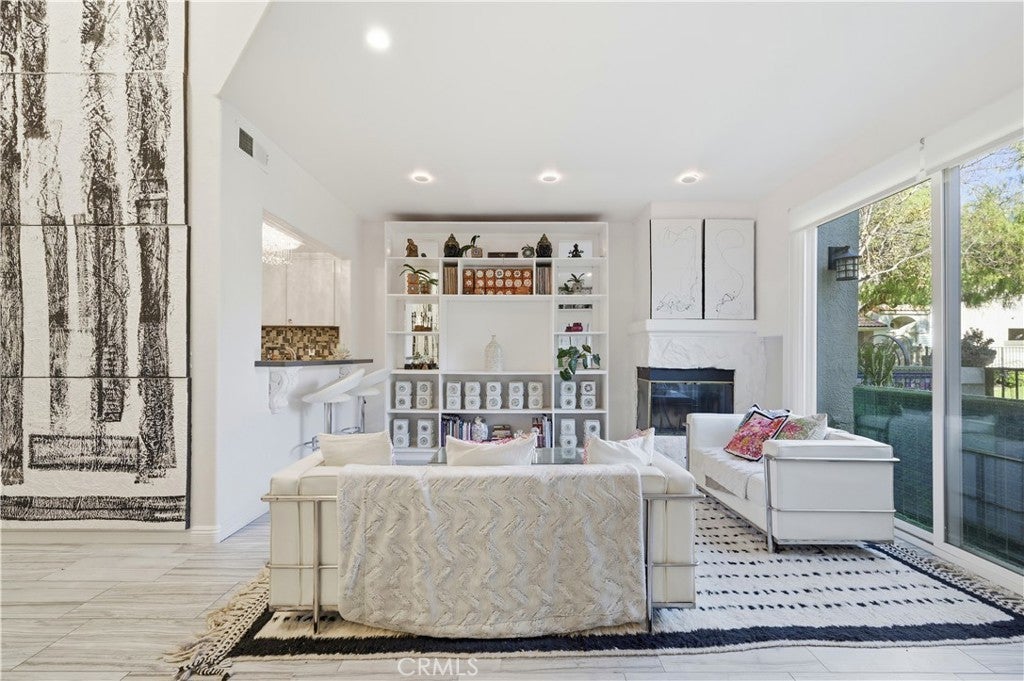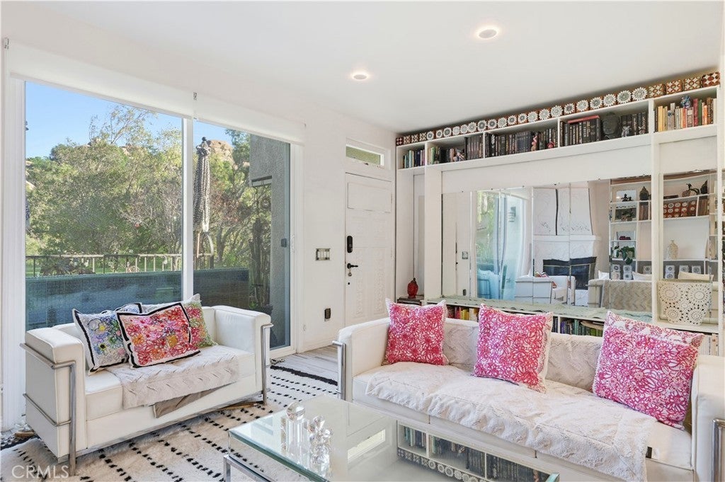 You must come check out this gorgeous townhouse! Located in the very best area of Cal West, this home faces a lush meadow, surrounded by trees, rocks and the majestic Santa Susana Mountains. Almost every inch has been remodeled with particular attention to all the details, beginning with the amazing front patio, filled with colorful tiled planters, benches and even a fountain to enhance your peaceful relaxing haven. An abundance of natural light welcomes you into the living room, with its cozy fireplace, and dining area with soaring ceiling and skylight. The kitchen sparkles with elegance with its granite counters, big SS sink, built-in microwave, newer refrigerator and breakfast bar that looks out to the living room. The laundry area is downstairs, as is the exquisite guest bathroom. Upstairs there are 2 primary suites, one with a walk-in closet and the other with a large sitting area, both with their own ravishing bathroom with jetted bathtubs. The 2-car garage has direct access into the home. Cal West is a well-maintained complex with 2 pools, spas, BBQ and cooking areas, close to the 118 freeway and minutes away from Porter Ranch and Simi Valley.