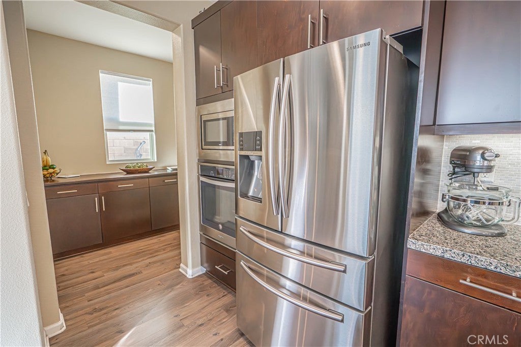 STUNNING Mediterranean-style home in the desirable Aliento Gated Community features 4 bedrooms and 3 baths. One bedroom and bathroom with a shower, downstairs is great for guests or extended family. Step into the foyer of this modern home with traditional touches, and you are greeted with a large open floor plan, wood-look laminate flooring, and high ceilings. The spacious living room has double sliding glass doors that lead out to the Arizona-style covered outdoor living space and pool-sized rear yard. A family favorite is the large gourmet kitchen that opens to the dining room and living room. The Gourmet Chefs Kitchen w/ Large Center Island has breakfast bar seating, granite counters, stainless steel sink, and pendant lighting that add the perfect touch to the large center island and dining area. There are abundant kitchen cabinets, high-end stainless-steel appliances, a custom tile backsplash, and an extended counter area. The large pantry has plenty of shelf space for storage as well as a butler’s pantry for entertaining and additional storage. The home has custom cabinetry featured in the butler's pantry, kitchen, and office nook area. Just off the kitchen is an office nook with a built-in desk great for working at home. Upstairs you will find a terrific loft area (could be 5th Bedroom). The large primary suite has lots of windows for natural light and a large walk-in closet. Enjoy relaxing in the primary bath with w/quartz counters, dual vanity & separate walk-in shower that has seamless shower doors and a soaking tub. Other features recessed lighting, dual-controlled central AC/heat, a tankless water heater, and an upstairs laundry room. There are 2 additional bedrooms as well and a large hallway bathroom with a double sink vanity. There large rear yard with huge grass area. Two-car direct access garage. Leased solar panels add to the efficiency of your new home. The exclusive community features resort-like amenities such as pools (including a kids' pool), cabanas, spa, clubhouse, play areas, event lawn, a fitness center, BBQ areas, dog park, walking/hiking trails and so much more all for one low HOA fee! Access to all Santa Clarita has to offer, including dining, coffee, abundant shopping nearby, award-winning schools, great freeway access, parks, hiking and biking trails, and more! Call for Details.
