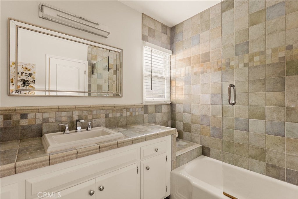 Stunning single-level 4-bedroom, 3.5-bath home offering approximately 3,000 square feet of refined, comfortable living space, ideally situated south of Ventura Blvd on a quiet Woodland Hills cul-de-sac. Filled with natural light and designed for both warmth and functionality, this private residence features vaulted wood-beam ceilings, recessed lighting, built-in speakers, and a charming fireplace anchoring the spacious living and dining areas. The formal dining room flows seamlessly into the family room and kitchen, creating an effortless layout perfect for everyday living and elevated entertaining. The generous island kitchen serves as the heart of the home, offering excellent workspace and storage with granite counters, stainless steel appliances, a Thermador refrigerator, Viking range, wine cooler, and new double ovens — plus a cozy breakfast area overlooking the backyard. The spacious primary suite is a peaceful retreat, while a versatile in-law suite offers a private entrance, walk-in closet, sitting area, convenient kitchenette, and its own en-suite bath with dual vanities and a marble walk-in shower, creating a spa-like experience. The backyard is an entertainer’s paradise with serene views, a sparkling saltwater pebble-tech pool and spa (updated with new tile and pavers), a pergola, a built-in BBQ with refrigerator, and a custom deck designed to capture beautiful mountain vistas. Located minutes from Warner Center, Calabasas shopping and dining, and highly sought-after Woodland Hills Elementary Charter for Enriched Studies school district.