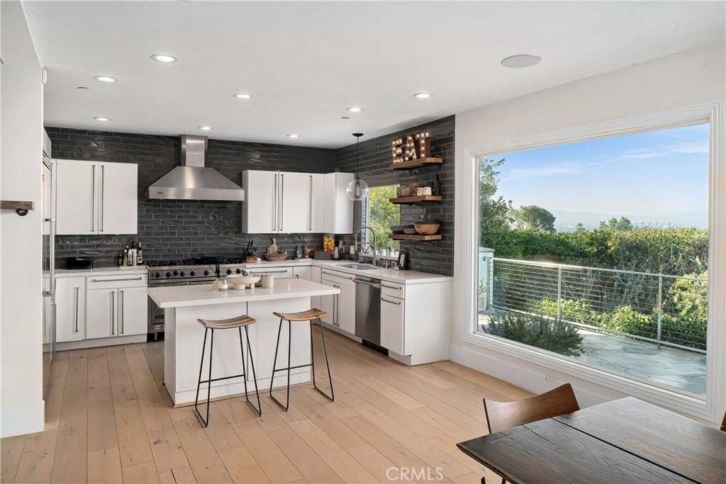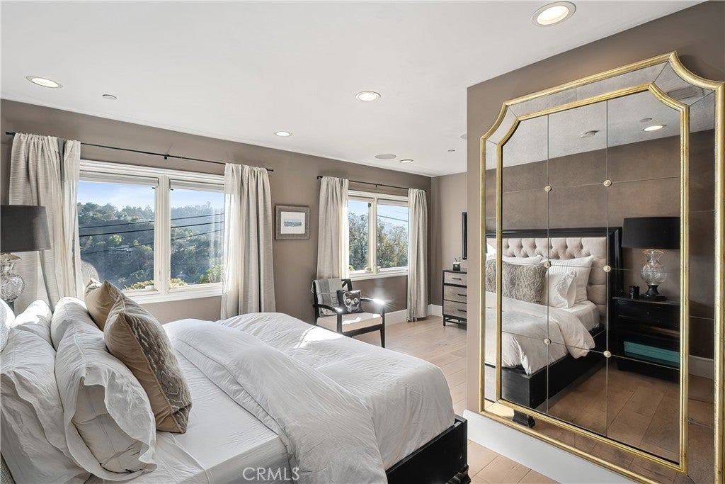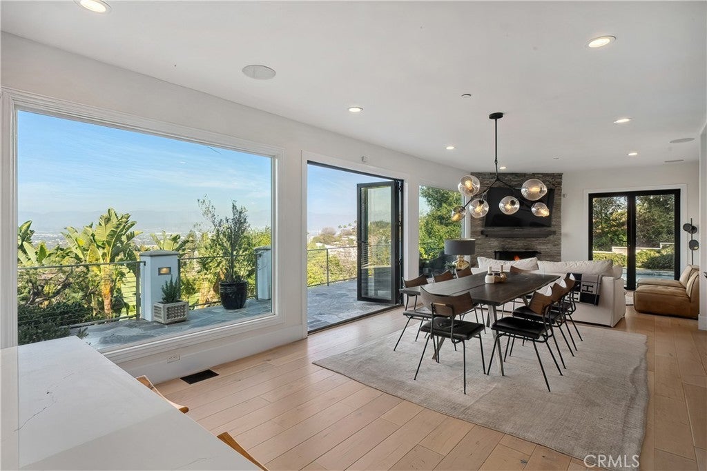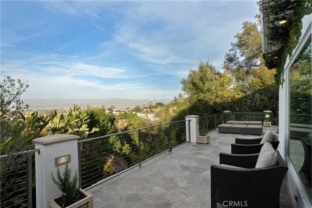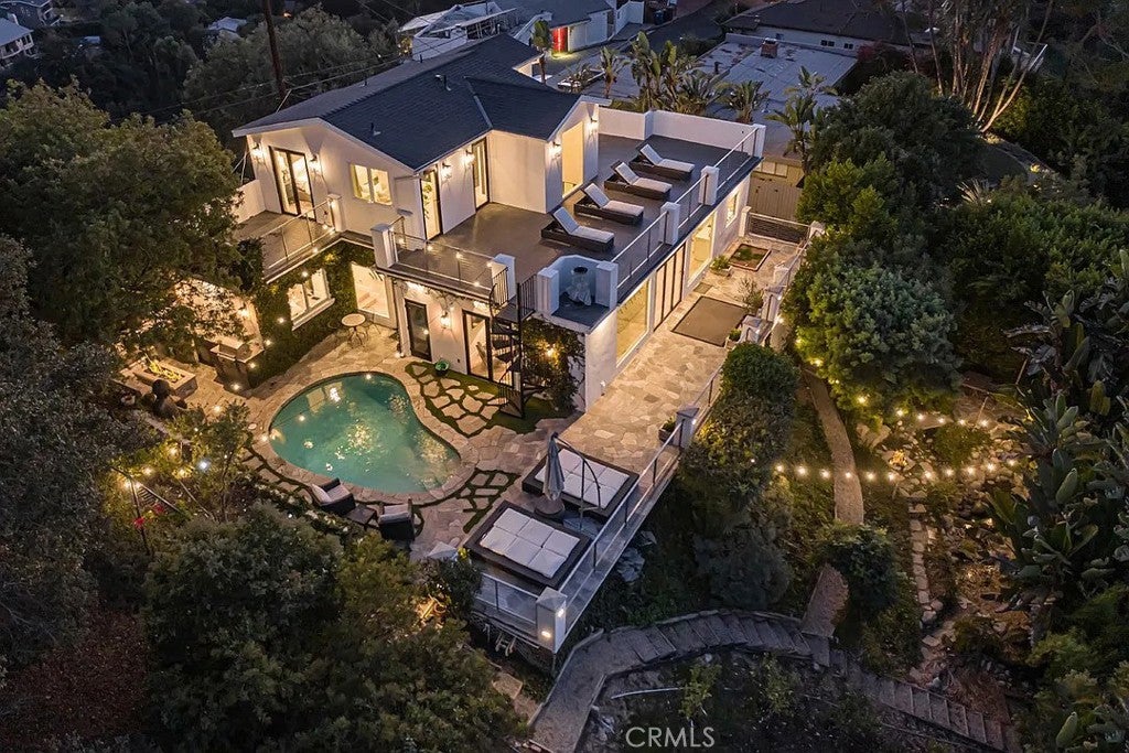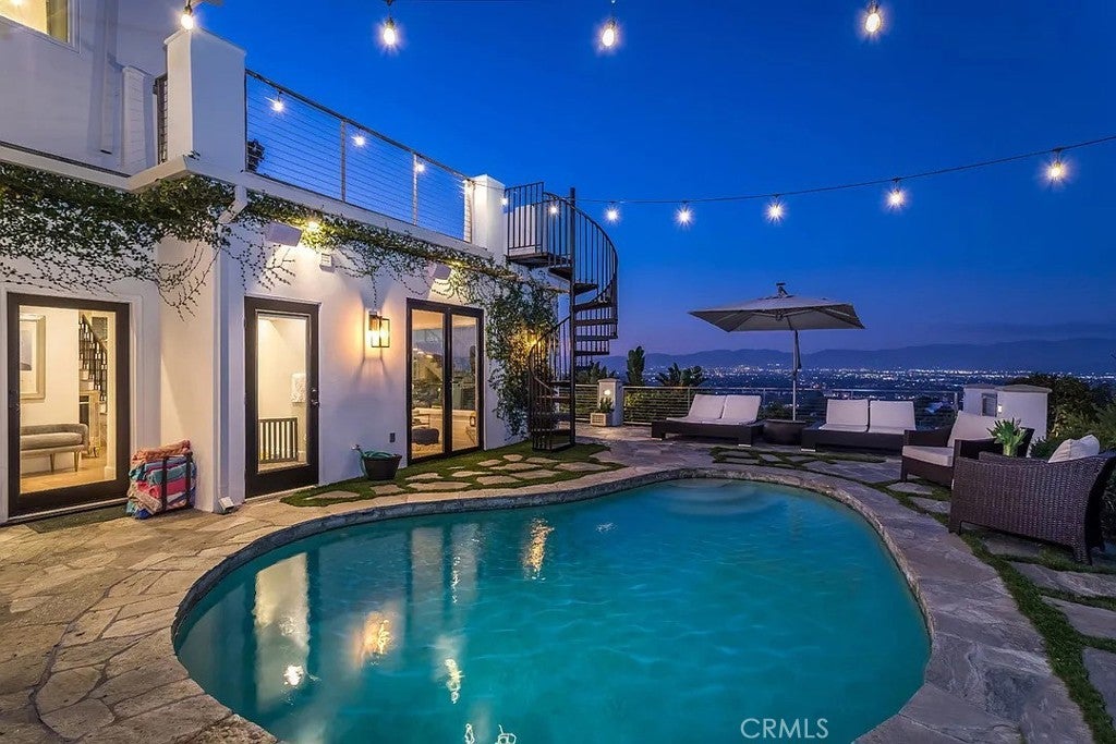 Property is available furnished. Tucked away in the hills above Studio City, this beautifully updated home offers sweeping panoramic views of the Valley. Designed for modern living, the open-concept floor plan features an inviting family room, formal dining room and sleek, modern kitchen equipped with top-of-the-line Viking appliances. Floor-to-ceiling walls of glass flood the space with natural light and perfectly frame the breathtaking views. Rounding out the main level is a spacious living room that doubles as a home theater, complete with surround sound and blackout shades, as well as an ensuite bedroom and additional bedroom and bathroom. On the upper level you will find a loft area with a built-in desk, perfect for a home office, along with a chic primary suite that features a private balcony with a sauna, custom walk-in closet with laundry and spa-inspired ensuite bathroom that boasts a soaking tub, steam shower and dual vanities. Step outside to your own private oasis, where stunning vistas, a sparkling pool and cozy fire pit create the ideal setting for year-round relaxation and entertaining. The grounds also include an expansive upper-level deck and lush lower-level garden with a tranquil pond surrounded by greenery, another fire pit and an enclosed cabana. Additional highlights include glass-enclosed wine storage, built-in speakers, a utility room with laundry and two-car garage. Conveniently situated South of the Boulevard in the top-rated Dixie Canyon School District, this home offers easy access to the Valley and Westside, prestigious private schools like Harvard-Westlake and Campbell Hall, and exceptional shopping and dining found along Ventura Boulevard. Property is available furnished for $22,000/mo.