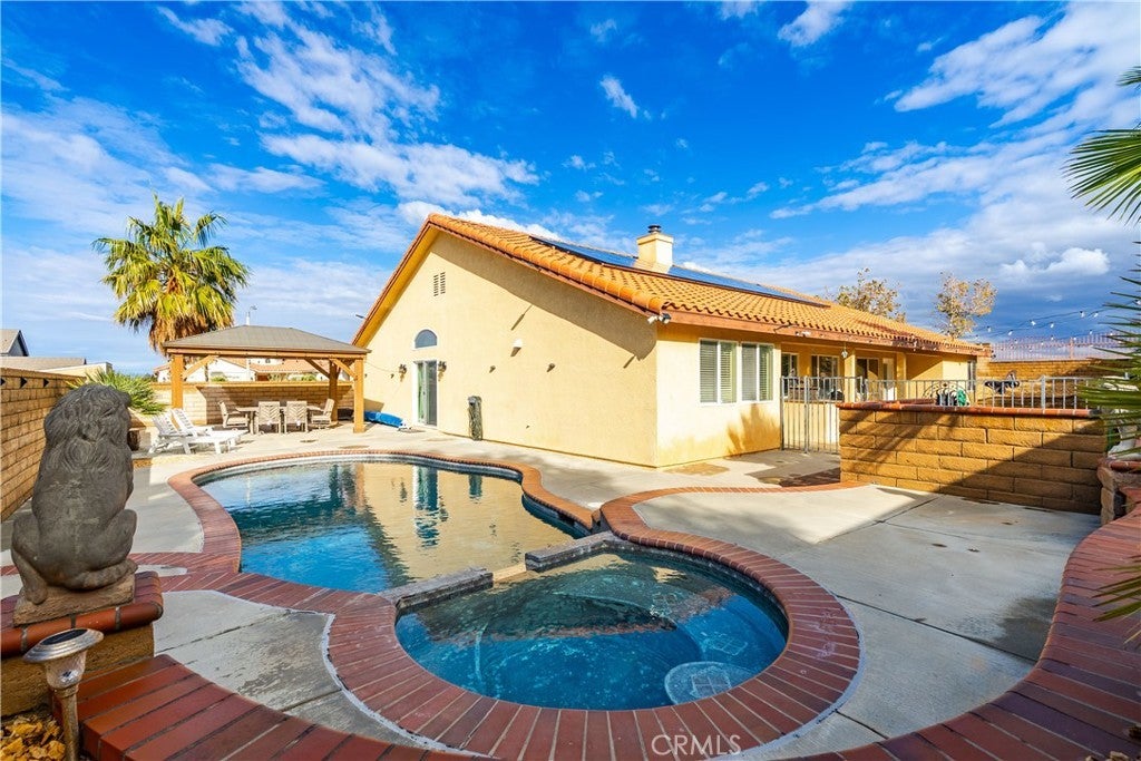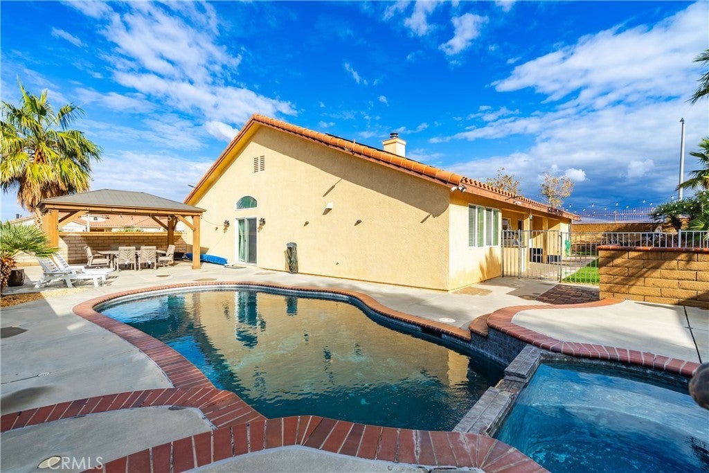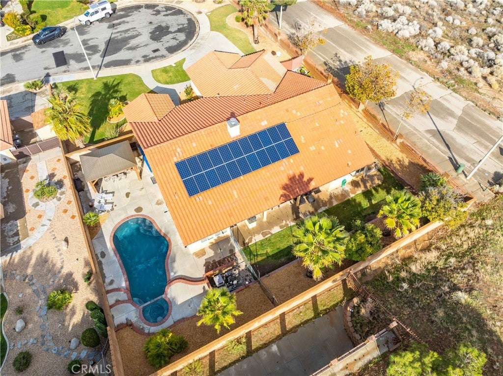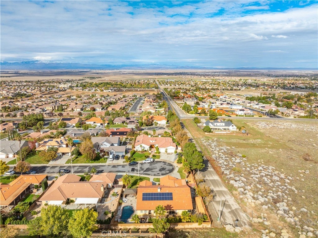 This stunning West Palmdale single-story pool home offers the perfect blend of comfort, style, and breathtaking valley views. Built in 2003 and ideally positioned on a **14,000+ sq ft corner lot at the end of a cul-de-sac**, this 4-bedroom, 3-bath residence is truly an entertainer's dream. Step inside to find **beautiful neutral tile flooring** in the entry, kitchen, bathrooms, and laundry room, paired with **wood laminate flooring** in the halls and formal living and dining rooms. The **spacious family room** features a cozy fireplace with an elegant full wood mantle and raised hearth, creating the perfect gathering space. The adjacent **gourmet kitchen** impresses with **quartz countertops**, rich alder cabinetry with glass-front accents, a **stainless steel 5-burner range**, and a custom vent-hood cover. Additional highlights include a built-in desk area, breakfast bar, and a generous dining nook overlooking the backyard. The **primary suite** offers a peaceful retreat with a large walk-in closet complete with built-ins and direct access to the backyard. The **luxurious primary bath** features quartz countertops, a large jetted tub, separate his-and-hers sinks, and an oversized shower with designer tile. All guest bedrooms are generously sized and include ceiling fans. The guest bathroom features quartz countertops, a dual-sink vanity area, and beautiful tile finishes. Step outside to your private oasis—**a sparkling built-in pool and spa**, spacious patio areas for entertaining, a grass yard, and a dedicated garden space. Additional features include a laundry room with a utility sink, a second utility sink in the garage, and a **leased 22-panel Zep Solar system** producing approx 12,000 kWh per year for energy efficiency for only $150 a month. **Pride of ownership shines throughout—this home is a must-see!**
