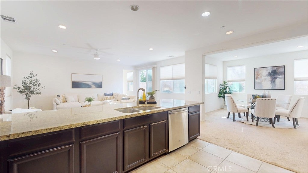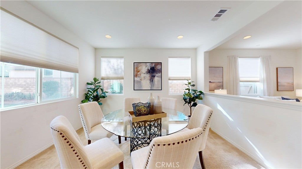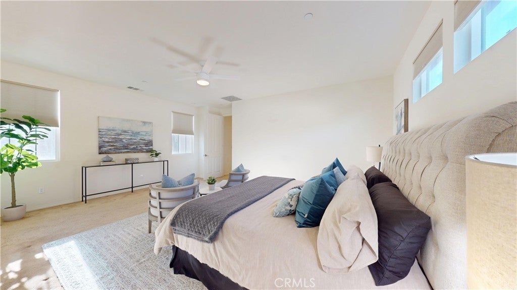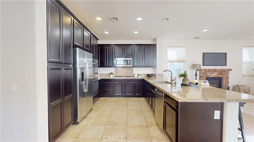 Welcome to this beautifully home located in the highly desirable West Creek community of Valencia. This residence offers approximately 2,887 sq. ft. of thoughtfully designed living space, featuring an open-concept layout with a spacious family room, a modern fireplace, and abundant natural light. The gourmet kitchen includes granite countertops, a custom tile backsplash, a large center island, stainless steel appliances, and generous cabinet storage. The first floor includes a full bedroom with an adjacent bathroom, ideal for flexible living arrangements. The upper level features a large loft, two secondary bedrooms with a shared dual-vanity bathroom, and a private primary suite. The primary suite offers dual walk-in closets, a soaking tub, a separate walk-in shower, and dual vanities. The home is equipped with a paid solar system and an EV charging outlet. The oversized laundry room provides additional storage and functionality. The exterior features well-maintained landscaping and excellent curb appeal. The property also includes a two-car garage and an additional parking space next to the garage. Residents enjoy access to nearby parks, trails, community amenities, and top-rated schools. This home offers a blend of comfort, style, and convenience in one of Valencia’s most sought-after neighborhoods.