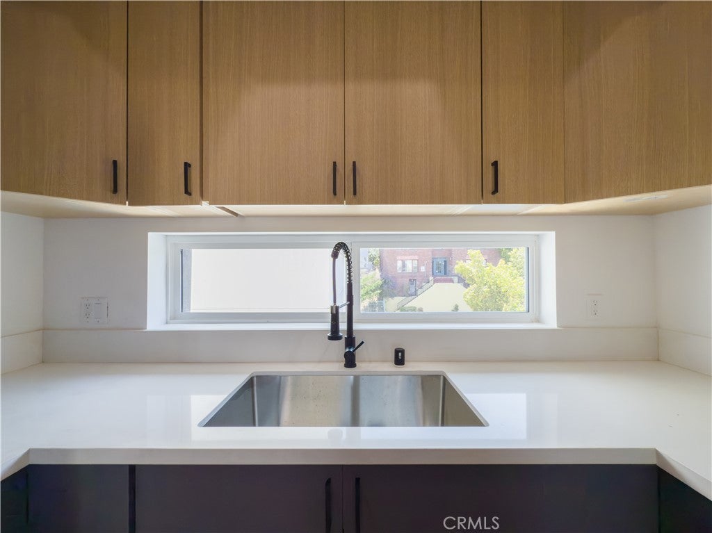 Standing three stories over a celebrated neighborhood in Ramparts Village, this ambitious 1,251 sq ft townhome is the quintessential Modern Residence. Delivering the utmost in luxury and exclusivity, this three-bedroom, two bath Townhome. A truly astonishing accomplishment of engineering and architecture, the open-plan layout blends premium craftsmanship with exceptional finishes. Exhibiting a stunningly executed design, every inch of this sumptuous space has been meticulously crafted for sophisticated living. Dominated by khaki-hued laminate floors and crowned by elevated ceilings with integrated lighting, the elegant living room and dining room are vibrant entertaining venues. Rich in high-end finishes and fixtures, the kitchen is a first-class workspace. Characterized by a superior standard of quality, no expense was spared to achieve this epicurean’s delight. Amenities include chic matte cabinetry and professional series appliances. Complemented by a beautifully appointed bath, the primary suite dominates the lower level. Outstanding accommodations continue in the additional guest rooms, which can efficiently function as home offices or fitness areas. A full-width roof deck is positioned to capture miles of twinkling L.A. lights. Bike storage, a rock garden, secure parking and keyless entry provide the finishing touches. The enviable location takes full advantage of its proximity to thriving business and cultural scenes in adjacent Silverlake, Koreatown, and Westlake. Dodger Stadium and L.A Live can be reached in 10 minutes, while upscales boutiques along The Grove's promenade are just a 19 minute commute.