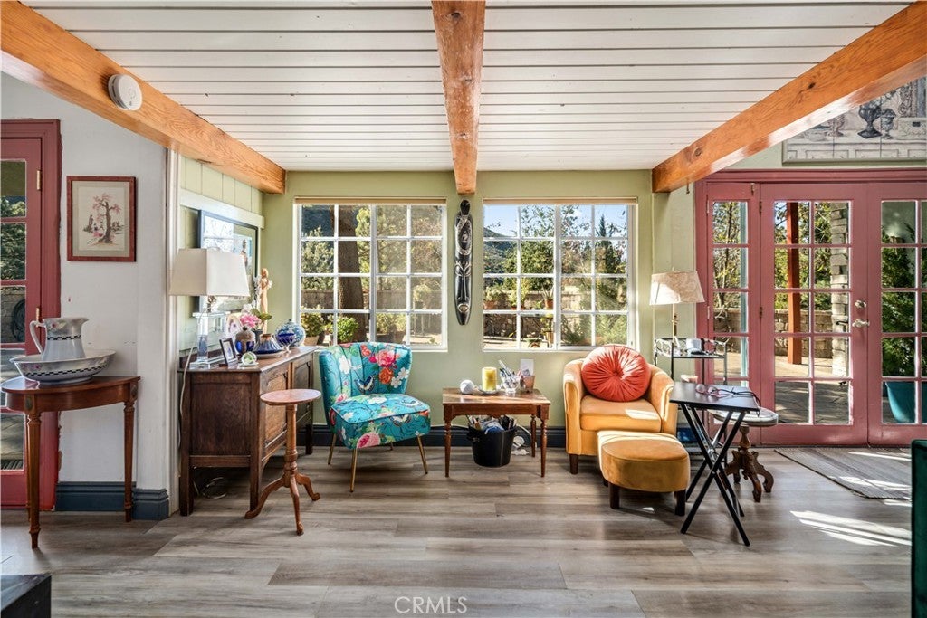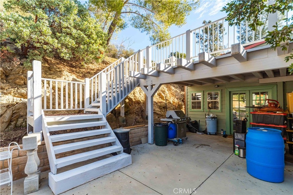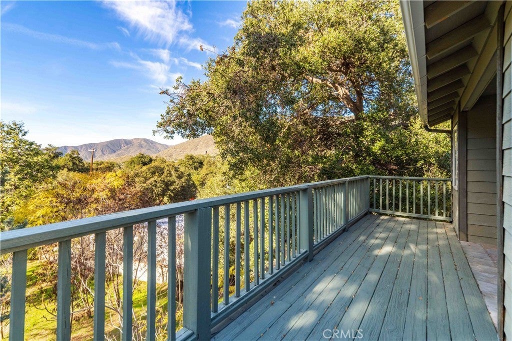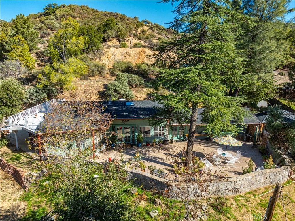 Discover this charming 1953 ranch-style home tucked in the peaceful mountains of Green Valley, offering timeless character, sweeping views, and nearly one acre of land (.92 acres) surrounded by beautiful mature trees. The property features approximately 1,720 sq. ft. total, including the main house with loft (1400sf) and the separate studio/office (320sf). A highlight of this home is the expansive front patio, stretching about 70 feet long and 20 feet deep, perfectly situated to capture unobstructed views of Jupiter Mountain—an inviting space for entertaining, relaxing, or enjoying the quiet mountain setting. Inside, the main home offers an open living and dining area that flows into the upgraded kitchen, showcasing granite countertops, a large single-basin sink, white cabinetry (including a few glass-front doors), and ample prep space. Just behind the kitchen is a generous walk-in laundry and pantry room, complete with its own sink. Above the living room sits a versatile loft, ideal for an office, creative space, or easily enclosed to create a third bedroom. The main level includes 2 bedrooms and 2 bathrooms, providing comfortable, functional single-story living. Outdoor spaces include a covered patio off the kitchen and a large upper deck, both offering beautiful canyon and mountain views. Not far from the main house is a detached studio/office, offering additional space for work, hobbies, or storage. While it currently does not have plumbing, it is a blank canvas ready for your personal vision and future improvements. This one-of-a-kind mountain retreat sits just above Santa Clarita—providing peace, privacy, and serenity while still only 20-30 minutes from the city. Come experience the beauty and calm of Green Valley living.