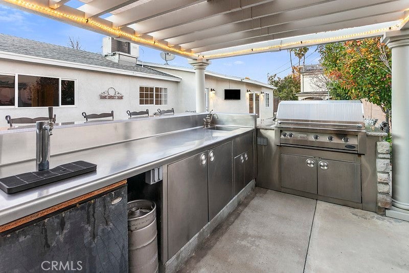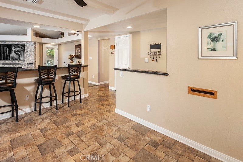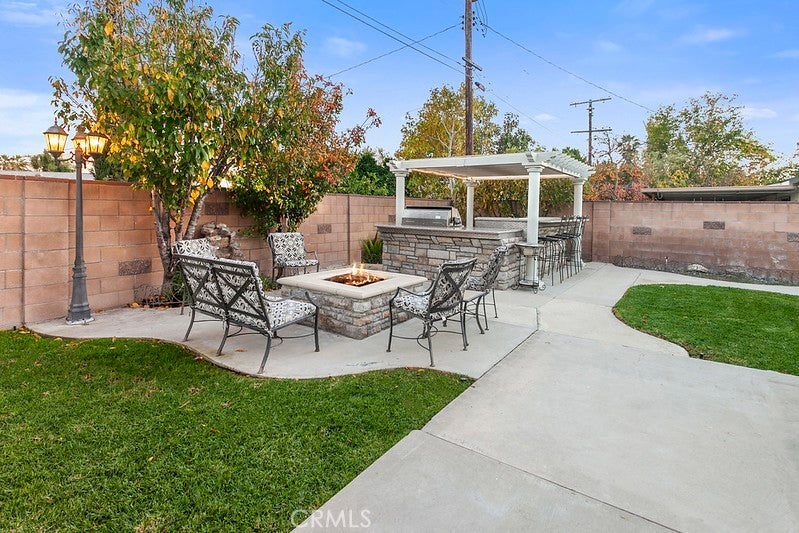 Experience luxury and comfort in this stunning updated West Hills home, tucked on a quiet cul-de-sac in one of the area’s most sought-after neighborhoods. The lush front lawn, vibrant flower beds, mature Queen palms, lemon tree, and covered entry create exceptional curb appeal. Inside, the bright open-concept floor plan spans approximately 1,698 sq. ft., featuring smooth ceilings and a designer paint scheme throughout. The expansive living room features beamed ceilings, recessed lighting, backlit soffits, a lighted ceiling fan, newer carpet, and a striking floor-to-ceiling mosaic stone wall with electric fireplace. Sliding glass doors lead to the backyard, creating a seamless indoor-outdoor flow. The remodeled chef’s kitchen offers rich wood-grained oak cabinetry, granite countertops, a pantry, dual-basin sink, granite breakfast bar, laminate floors, and premium stainless-steel appliances including a Whirlpool oven, Jenn-Air 5-burner gas cooktop, Maytag dishwasher, KitchenAid refrigerator, microwave, and Kenmore trash compactor. The adjoining dining room features beamed ceilings, a large window, and matching flooring—perfect for family meals or entertaining. The home offers four bedrooms* and two bathrooms. The primary suite boasts new wood laminate flooring, mirrored wardrobe doors with organizers, and a spa-inspired en suite bath with dual-basin marble vanity, glass-enclosed double shower with two sets of controls, jetted soaking tub for two, and marble floors. Two additional bedrooms feature lighted ceiling fans, full-height mirrored closets, and wood laminate floors. The home office/possible fourth bedroom includes built-ins, granite counter, cabinetry, and private outdoor access. The guest bathroom features granite vanity, glass-enclosed shower/tub, and custom linen storage. Additional upgrades include dual-pane windows, 5-ton HVAC, copper plumbing, ABS drains, new main line, updated electrical panel, and CCTV. The private backyard is a true entertainer’s paradise with a pergola-covered outdoor kitchen, granite counters, bar seating, Vintage gas BBQ, Kegerator, lush lawn, fruit trees, flower beds, natural gas fire pit, and a gated side yard with hot/cold water and drainage for outdoor shower, pet wash, or utility station. Attached 2-car garage and oversized RV-ready driveway with dual dump stations. Located just moments from shopping, dining, and parks, this exceptional residence offers luxury, comfort, and lifestyle in a prime West Hills setting.