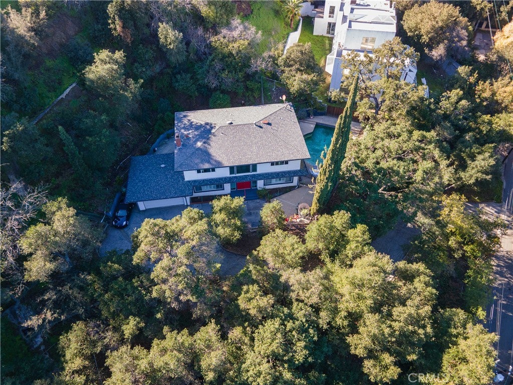 Travel up the private driveway to a lovely flat pad and a classic mid-century two story, Fryman Canyon Estate home with 3,100 square feet, 5 bedrooms, 3.5 baths, swimming pool, and two car garage. Additional parking space is available for up to four cars. The custom-built residence is situated on a ½ +acre parcel with all windows offering pleasant views of native California Coast Live Oak, Toyon and mature Olive trees. Wake up to an occasional deer, coyote or bobcat passing through the grounds on their morning forage. This location is all about privacy and convenience for both work and play. Put on your walking/ hiking shoes or grab your mountain bike and head down the street to enjoy the many trails off of Wilacre Park. If you are heading to the Westside or to the studios, it is all nearby. You will appreciate being close to shopping and restaurants all along Ventura Boulevard. Just down the hill is the highly rated Carpenter Community Charter (public elementary) School; Bridges Academy is just across the street and Campbell Hall is only a short drive down Laurel Canyon. This home was built in 1963 when homes featured generous room sizes and ample storage! Upstairs are four large bedrooms, one a primary suite with dual sinks and a walk-in closet. Downstairs public rooms include a grand piano sized living room with a wood-burning and gas fireplace, a separate formal dining room, family room with wet bar, powder room, and a custom Euro-style bright red kitchen with an abundance of cabinets and counter space. Off the kitchen is the laundry room, and fifth bedroom with full bath. On the market for the first time in 40 years, homes like this rarely come up for sale in this neighborhood. This home has excellent bones; it needs some TLC and vision to make it your dream home. Opportunity is knocking, this Fryman Canyon Estate property is priced to sell. Property being sold “as is.”