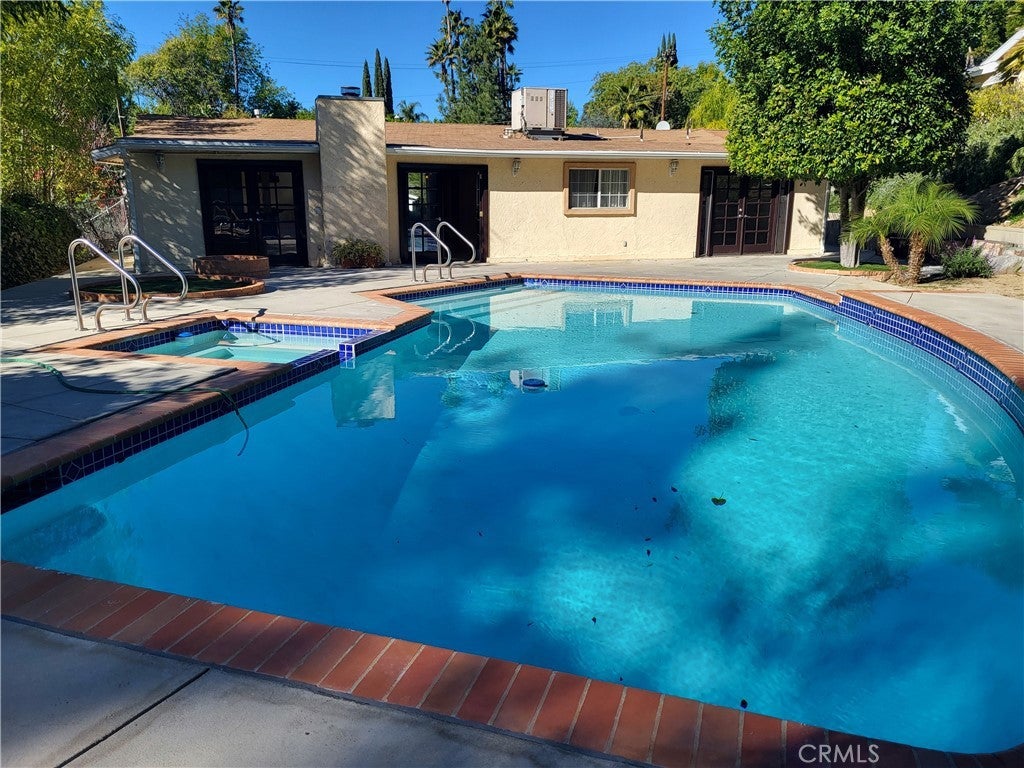 Beautifully updated open-concept home featuring green granite countertops, a stainless hood, stainless steel appliances, and an electric range. The spacious kitchen, dining, and living areas flow seamlessly into a large family room—an ideal layout for entertaining. This home offers three bedrooms plus a bonus room/office, providing wonderful flexibility. The primary suite opens directly to the serene backyard, where you’ll find a sparkling pool, spa, and gas fire pit—a perfect setting for gatherings or quiet relaxation. One of the additional bedrooms also features its own en-suite bathroom, making it great for guests. Enjoy abundant natural light, generous closet space, and an inviting fireplace that anchors the living/dining area. The home is extremely spacious and bright, offering effortless indoor–outdoor living. Washer, dryer, and refrigerator are all included. Plenty of parking with 2-car garage and large driveway. Welcome home to this little piece of paradise that is a short distance to the beach, PCH, easy frwy access & close proximity to Warner Center,The Village w/fine dining/shopping!