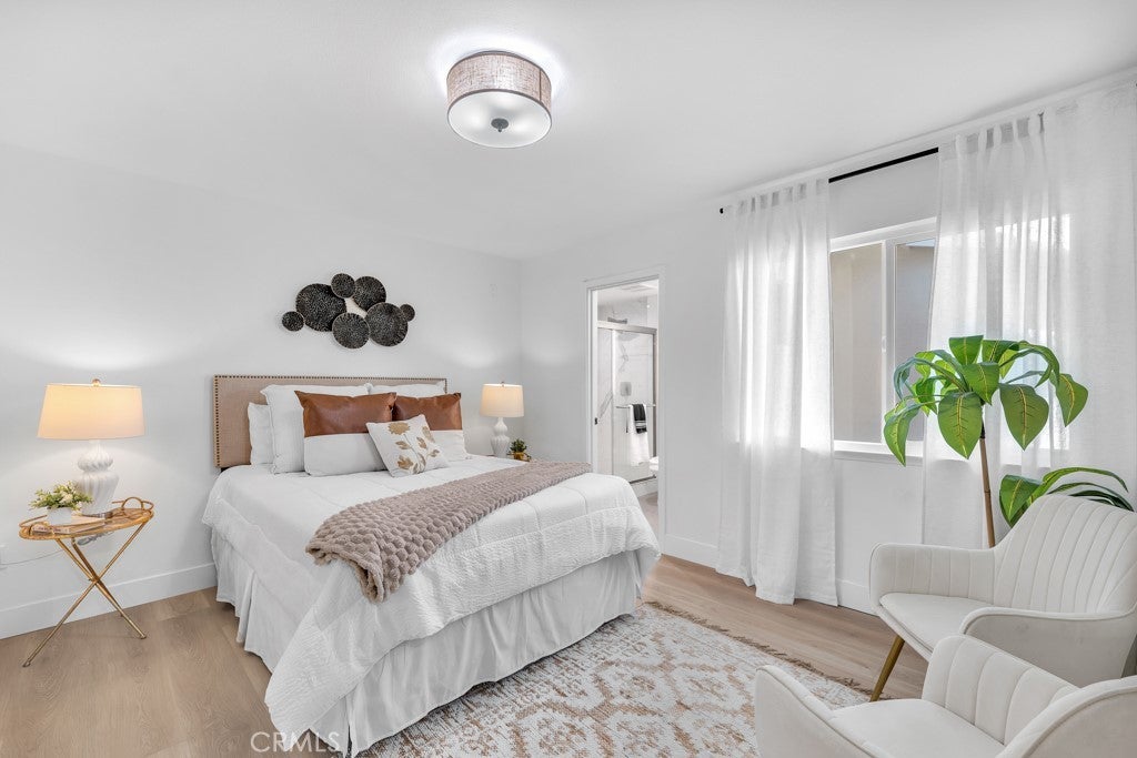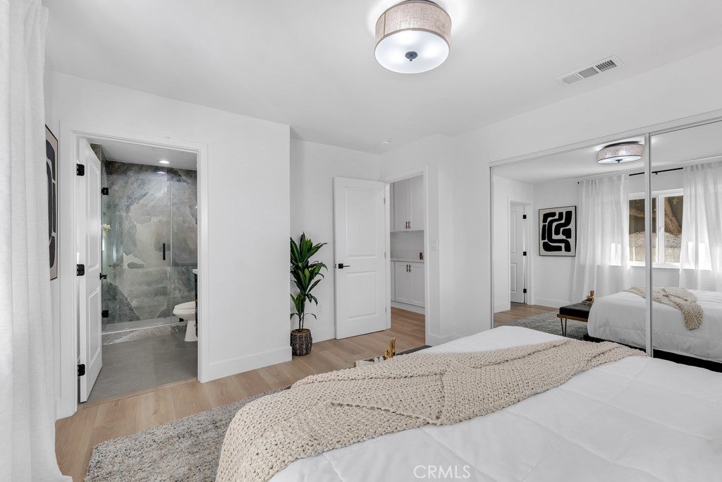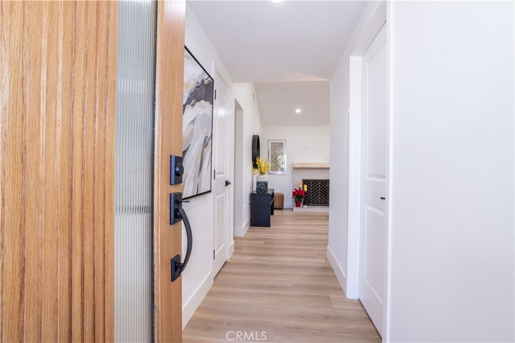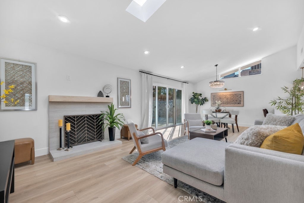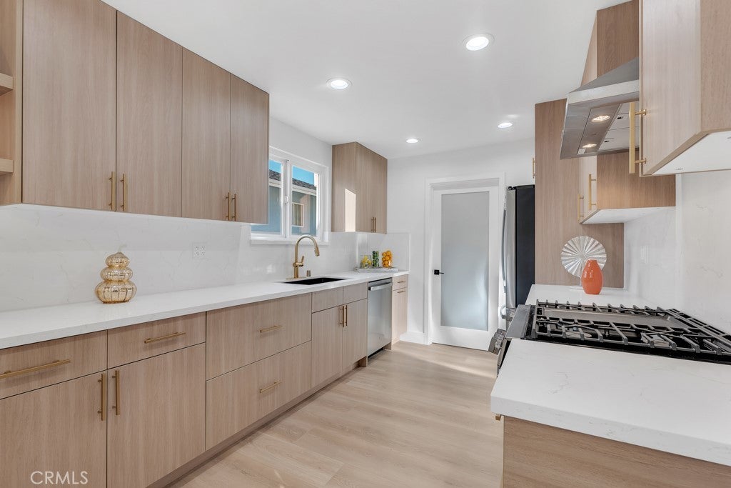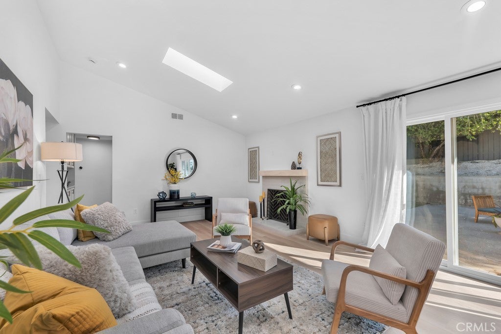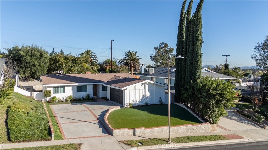 Step into a stunning reimagining of modern living in this fully renovated 4-bedroom, 3-bath home featuring two luxurious ensuite bedrooms, tucked into a tranquil Knollwood-adjacent pocket of Granada Hills. Thoughtfully curated throughout, the home offers refined style, modern function, and exceptional comfort. The gourmet chef’s kitchen delivers both beauty and performance with all-new GE stainless steel appliances—including range, overhead hood, dishwasher, and fingerprint-resistant refrigerator—paired with Quartz countertops, a dramatic waterfall peninsula, frameless European-style soft-close cabinetry, and a walk-in pantry. The bright living room centers around a charming wood-burning fireplace with a custom Italian-tile hearth and wood mantel, while the adjacent dining area showcases vaulted ceilings, a skylight, luxury vinyl flooring, and expansive 10-foot patio doors for seamless indoor-outdoor living. The primary suite provides a private sanctuary with a spa-inspired ensuite featuring an Italian designer-tiled shower, elegant new vanity, and premium fixtures. A second ensuite bedroom offers its own beautifully updated bath—ideal for guests or multigenerational living—while two additional bedrooms share a stylishly updated hallway bathroom. Notable upgrades include a new 200-amp electrical panel, completely new HVAC system with all new ducting, dual-pane windows, updated plumbing, tankless water heater, separate laundry room, expansive linen storage, all new interior and exterior doors, and a finished 2-car attached garage with direct access. A large driveway provides ample space for multiple vehicles or recreational toys. Outdoors, enjoy a private backyard oasis with a refreshed lawn, sprinkler system, mature shade trees, and generous space for entertaining or relaxing. The beautifully updated front yard features new landscaping and inviting curb appeal. Conveniently located north of Rinaldi near shopping, dining, parks, Knollwood Country Club, and major freeways, this turnkey home delivers luxury, comfort, and contemporary design.