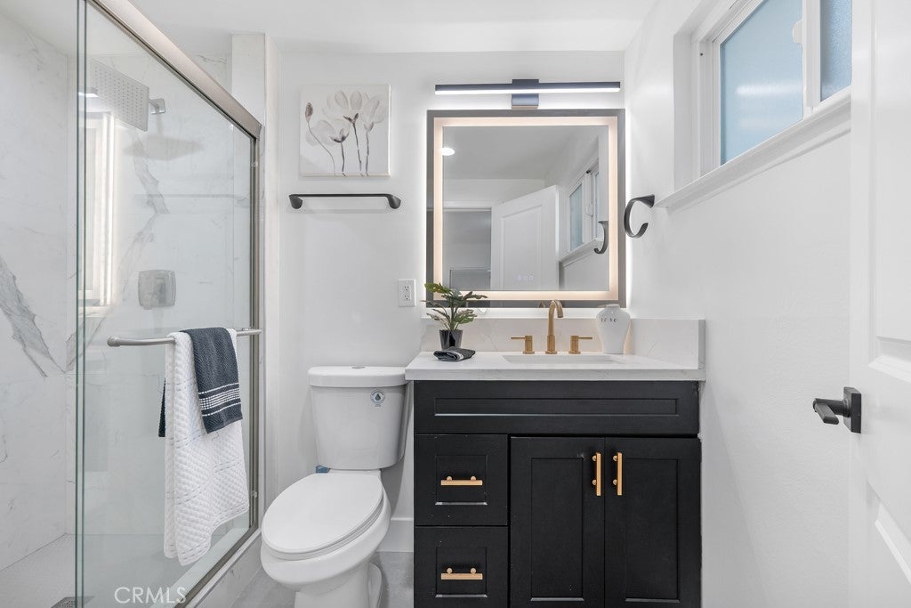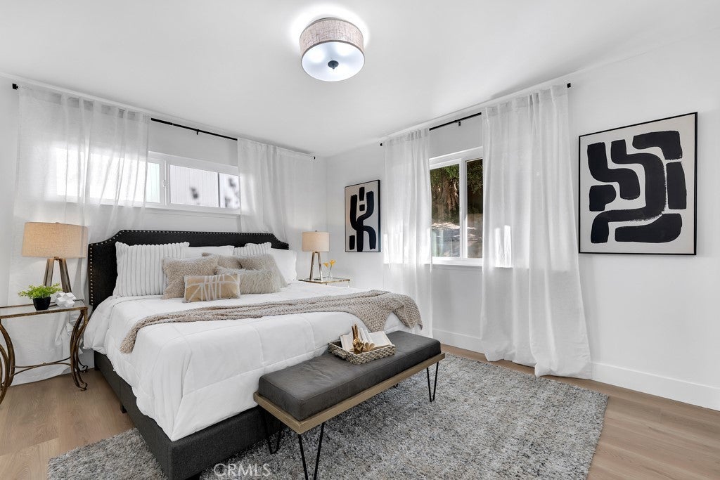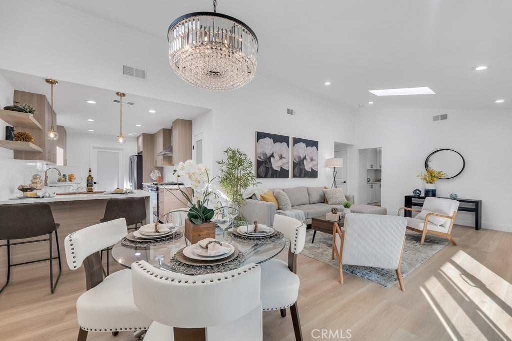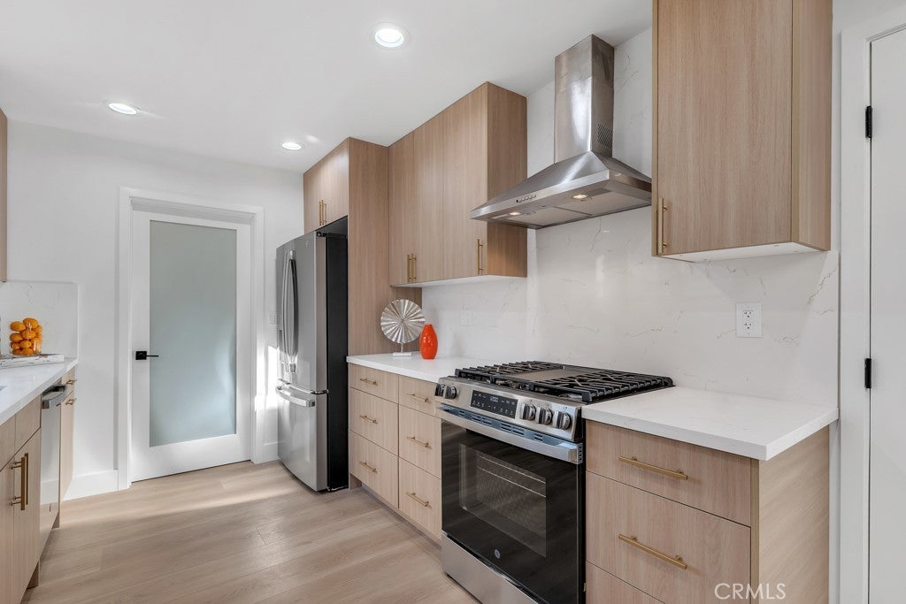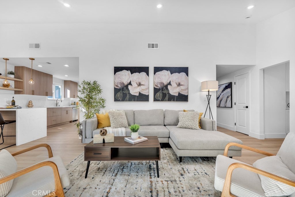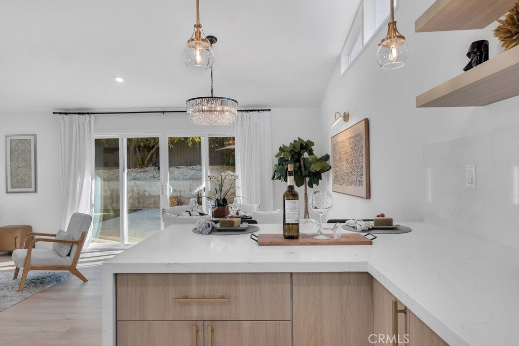 Step into a stunning reimagining of modern living in this fully renovated 4-bedroom, 3-bath home featuring two luxurious ensuite bedrooms, tucked into a tranquil Knollwood-adjacent pocket of Granada Hills. Thoughtfully curated throughout, the home offers refined style, modern function, and exceptional comfort. The gourmet chef’s kitchen delivers both beauty and performance with all-new GE stainless steel appliances—including range, overhead hood, dishwasher, and fingerprint-resistant refrigerator—paired with Quartz countertops, a dramatic waterfall peninsula, frameless European-style soft-close cabinetry, and a walk-in pantry. The bright living room centers around a charming wood-burning fireplace with a custom Italian-tile hearth and wood mantel, while the adjacent dining area showcases vaulted ceilings, a skylight, luxury vinyl flooring, and expansive 10-foot patio doors for seamless indoor-outdoor living. The primary suite provides a private sanctuary with a spa-inspired ensuite featuring an Italian designer-tiled shower, elegant new vanity, and premium fixtures. A second ensuite bedroom offers its own beautifully updated bath—ideal for guests or multigenerational living—while two additional bedrooms share a stylishly updated hallway bathroom. Notable upgrades include a new 200-amp electrical panel, completely new HVAC system with all new ducting, dual-pane windows, updated plumbing, tankless water heater, separate laundry room, expansive linen storage, all new interior and exterior doors, and a finished 2-car attached garage with direct access. A large driveway provides ample space for multiple vehicles or recreational toys. Outdoors, enjoy a private backyard oasis with a refreshed lawn, sprinkler system, mature shade trees, and generous space for entertaining or relaxing. The beautifully updated front yard features new landscaping and inviting curb appeal. Conveniently located north of Rinaldi near shopping, dining, parks, Knollwood Country Club, and major freeways, this turnkey home delivers luxury, comfort, and contemporary design.