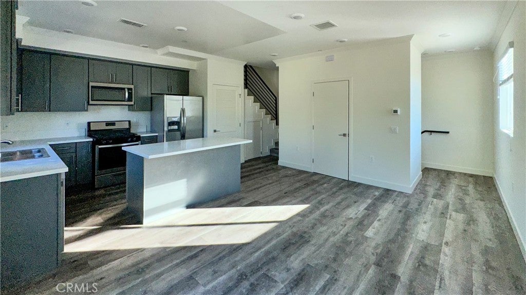 This stunning 2-bedroom, 2.5-bath home features an open floor plan with abundant natural light and a modern kitchen complete with quartz countertops, designer cabinetry, and stainless steel appliances. Enjoy LED recessed lighting throughout and the convenience of in-unit washer and dryer. The spacious primary suite offers a large ensuite bathroom and a walk-in closet. Private 2-car garage parking included. Located in a quiet neighborhood while still close to shopping, dining, and major freeways. Tenants pay utilities. Small pets allowed with pet fee and/or additional deposit.
