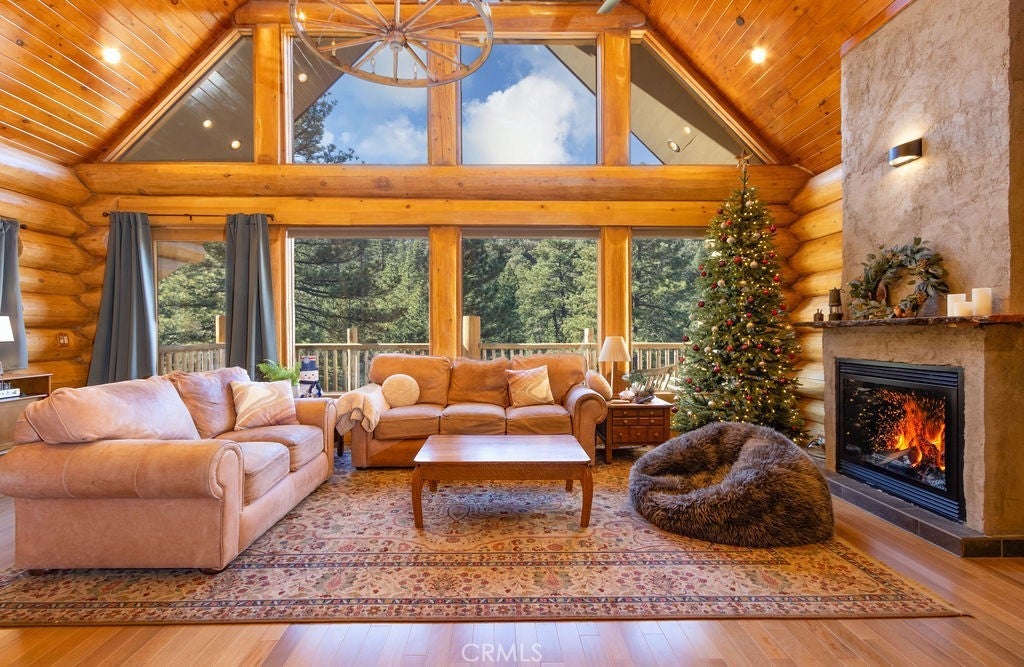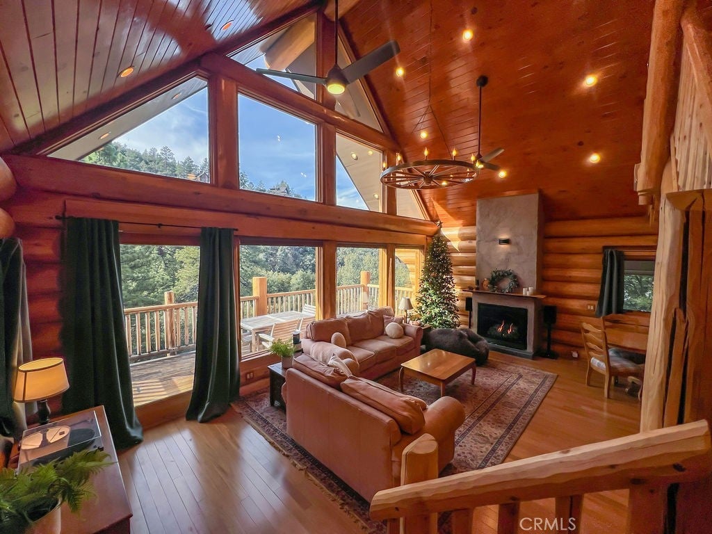 Situated among towering pines in the amenity-rich community of Pine Mountain Club, sits this extensively upgraded practically brand-new custom log home showcasing exceptional craftsmanship, thoughtful engineering, and modern smart-home functionality. Built with hand-scribed, old-growth Western Red Cedar logs, known for superior insulating properties, natural durability, and timeless beauty, this residence reflects true quality construction rarely found today. The home is over 2000 square feet and offers advanced safety and infrastructure features including a whole-house fire sprinkler system, hardwired smoke and carbon monoxide detectors, camera security system, smart keypad entry, and generator-ready electrical setup with dual panels and whole-house surge protection. Comfort and efficiency are prioritized with a heat pump system supplemented by backup heat strips, four interior mini-split units with remote and internet connectivity, and a direct-vent gas fireplace with blower. A high-efficiency tankless propane water heater, whole-house water softener and filtration system, and LED lighting with dimmer controls further enhance everyday living. Designed for flexibility and convenience, the property is also wired and plumbed for both electric or propane appliances, includes a propane grill outlet on the deck, and offers smart fans, heated towel racks, and a heated bidet seat in the loft bath. Thermal honeycomb blinds and blackout curtains provide added comfort and energy efficiency. The full basement features 10-inch solid concrete walls with five inches of foam insulation, delivering outstanding structural integrity and thermal performance. This is not a typical log home, it is a carefully engineered residence combining premium materials, modern systems, and long-term efficiency Pine Mountain Club has many exceptional amenities including a 9-hole golf course, clubhouse with restaurant and lounge, resort-style pool, tennis and pickleball courts, equestrian center, lake, and miles of hiking and biking trails, some leading to scenic waterfalls. Surrounded by 1.7 million acres of Los Padres National Forest, Pine Mountain Club offers true four-season living while remaining conveniently located less than an hour from both Santa Clarita and Bakersfield. See MLS Supplements for a complete Property Features & Systems Summary.