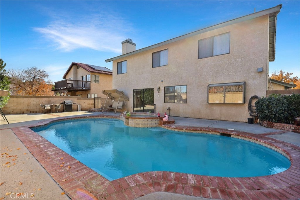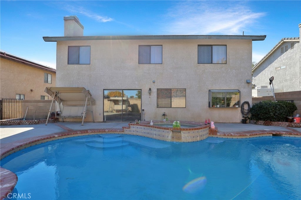 Welcome to this inviting and spacious West Lancaster home offering 4 bedrooms, 3 bathrooms, and 2,458 sq. ft. of comfortable living space. Tucked into a quiet neighborhood, this two-story residence is ideal for buyers seeking room to grow and a functional layout—and is truly one of the best-priced homes in the Antelope Valley for its size and features. The first floor features a bright formal living room with large windows, a separate family room with a cozy brick fireplace, and a dedicated dining area perfect for gatherings. The kitchen offers plenty of cabinet space, tile countertops, a large breakfast bar, and a view out to the backyard and pool. A convenient guest bathroom and indoor laundry room complete the downstairs. Upstairs, the oversized primary suite provides a peaceful retreat with vaulted ceilings, great light, double vanities, and a soaking tub. Three additional generously sized bedrooms share a full hallway bathroom with dual sinks—ideal for a busy household. Step outside to a private backyard designed for enjoyment, featuring a swimming pool, spa, and spacious patio areas for outdoor dining, lounging, and entertaining. Block walls offer added privacy, making this a great space to relax year-round. Additional highlights include a double-door entry, ample storage, and an attached 2-car garage. Located close to schools, shopping, parks, and commuter routes, this home offers excellent value and potential in one of West Lancaster’s desirable pockets. An incredible opportunity to secure a spacious home at a fantastic price—don’t miss it.