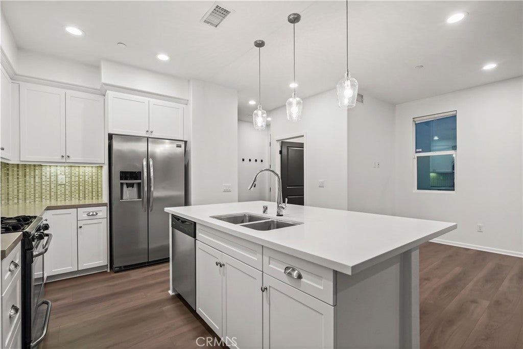 Welcome home to this exquisite Spanish Style Residence tucked in at the end of a cul-de-sac, part of the esteemed Heritage Collection built by the renowned California Builders in 2015. Situated within a modern community of 73 smart homes, this property offers a perfect blend of timeless architectural charm and contemporary living. Spacious Layout- A two-story, open-concept floor plan spanning 1,574 sq.ft designed to maximize natural light and seamless flow for both daily living and entertaining. Gourmet Kitchen- The heart of the home boasts a chef's kitchen, featuring crisp white shaker-style cabinets, extensive quartz countertops, an oversized quartz island perfect for gathering, and a full suite of sleek stainless steel appliances. This home includes 4 bedrooms and 3 baths, offering ample space for family and guests. The home features sleek updated laminate flooring and fresh interior paint, presenting a pristine like-new appearance. Enjoy modern conveniences like an attached 2- car garage wired for EV charging, Tesla solar panels, a tankless water heater, plenty of guest parking. This stunning property is an exceptional opportunity for those seeking a move-in ready home that combines sophisticated style with practical, modern comforts. Don't miss this rare opportunity to own a piece of the Heritage Collection. Schedule your private tour today!