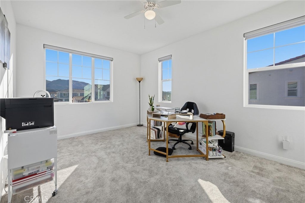Set against the scenic mountain backdrop of Fillmore, this beautifully upgraded 2021-built home in the highly desirable Orchards at Heritage Grove offers approximately 3,500 sq ft of thoughtfully designed living space and over $70,000 in premium enhancements, including a FULLY PAID SunPower solar system, a Tesla EV charger, and built-in wireless ceiling speakers, with the added benefit of NO HOA. Why pay builder premiums, wait months for completion, install your own solar, and then spend thousands on landscaping, when this move-in-ready, custom-finished home is already done? The expansive Residence 4 floor plan, the largest in the community, features five bedrooms and three and a half bathrooms, including a main-level bedroom with ensuite bath, a flexible bonus/flex room, an upstairs loft, and a three-car garage. Soaring ceilings and abundant natural light enhance the open layout, creating a seamless flow for everyday living and entertaining, while the integrated wireless ceiling speaker system adds a modern touch throughout the main living areas. The chef’s kitchen is the heart of the home, showcasing quartz countertops, an oversized island, and stainless steel appliances, opening to spacious living and dining areas ideal for hosting and gathering. Upstairs, the primary suite is a true retreat, featuring mountain views, a spa-inspired bathroom, and a private balcony overlooking the newly redesigned backyard perfect for morning coffee or evening wind-downs. The fully upgraded yard is complete and ready to enjoy, offering comfort and privacy without additional expense. Ideally located near parks, trails, shopping, and dining, this exceptional home delivers modern design, energy efficiency, smart-home conveniences, and outstanding value in one of Fillmore’s most sought-after communities. The upgrades are done. The solar is paid. The yard is finished. Just move in and enjoy.