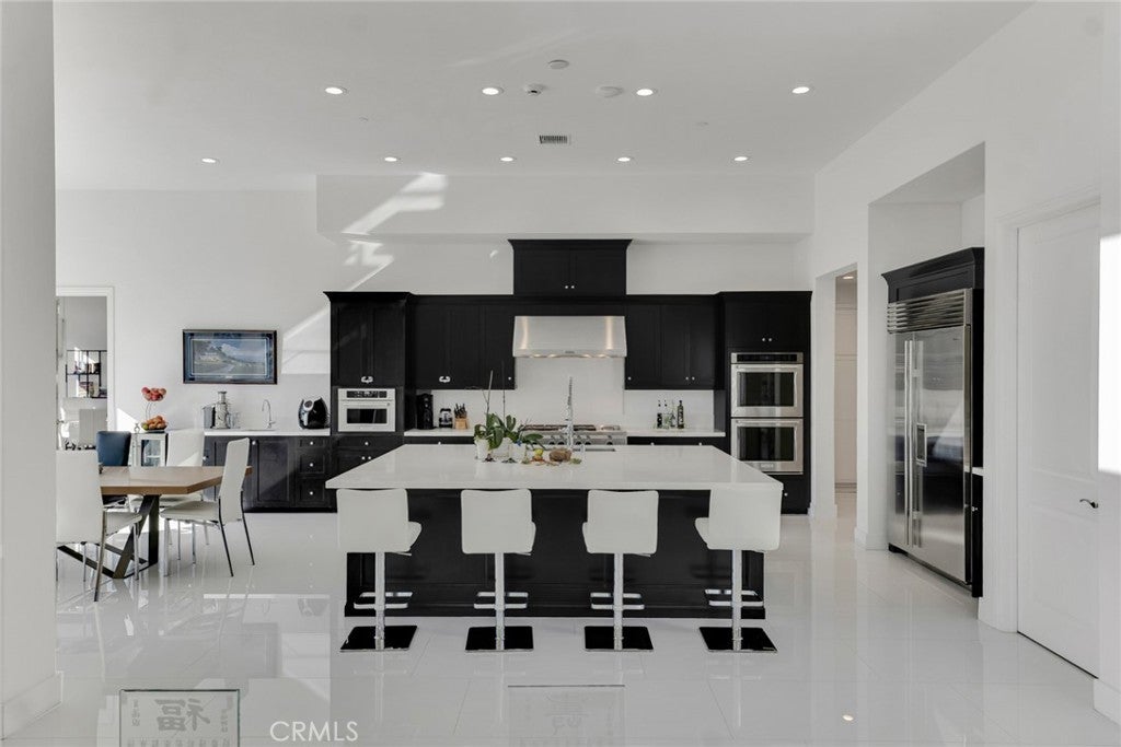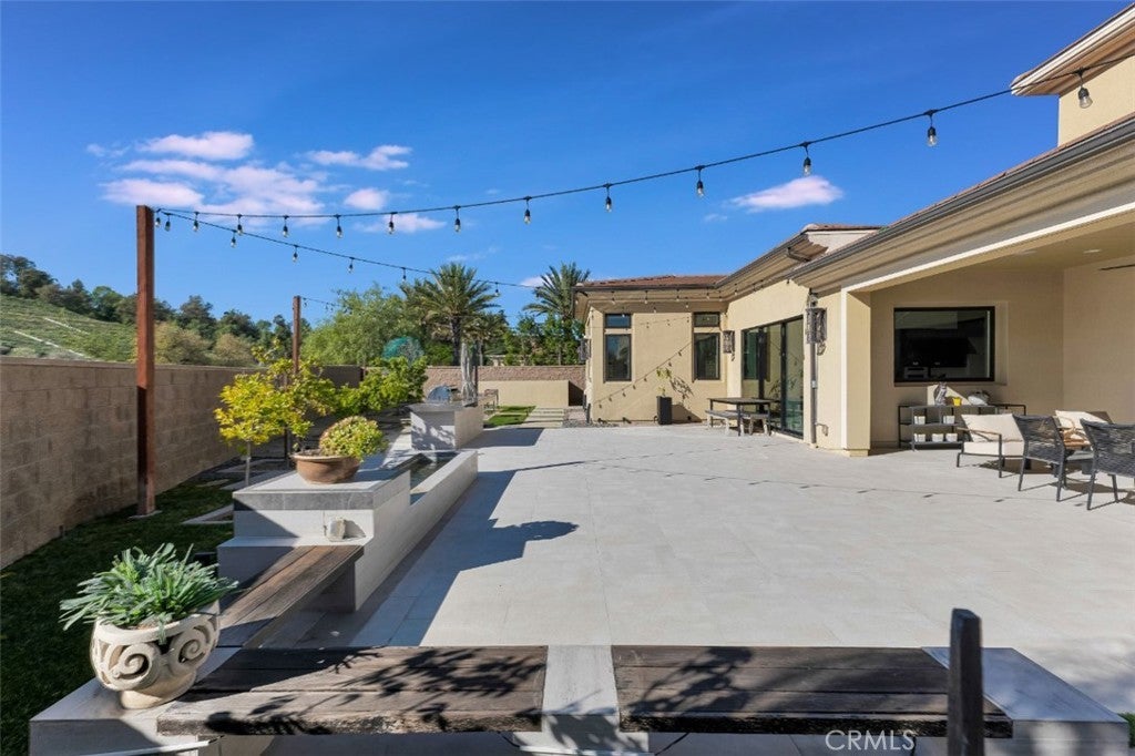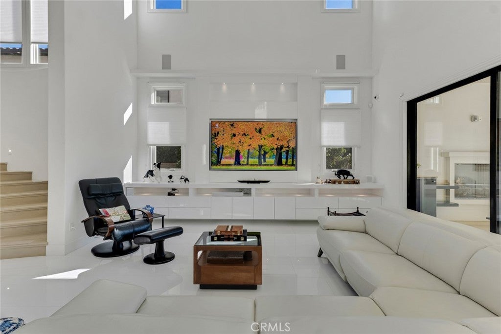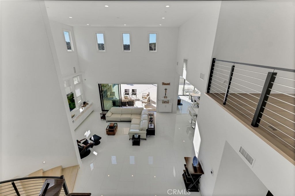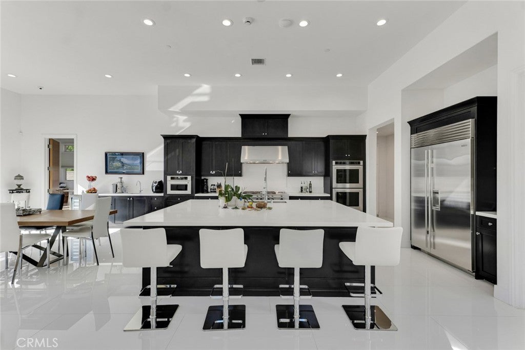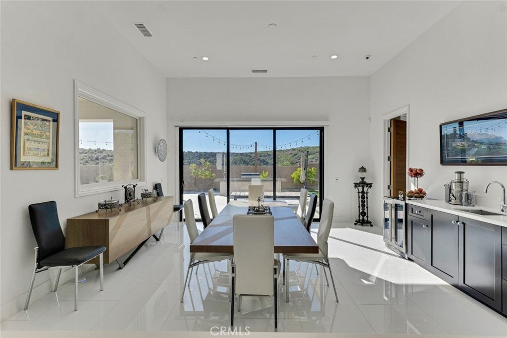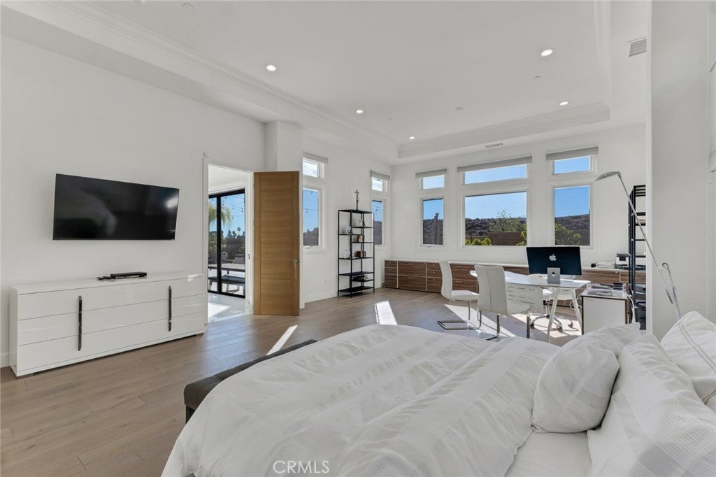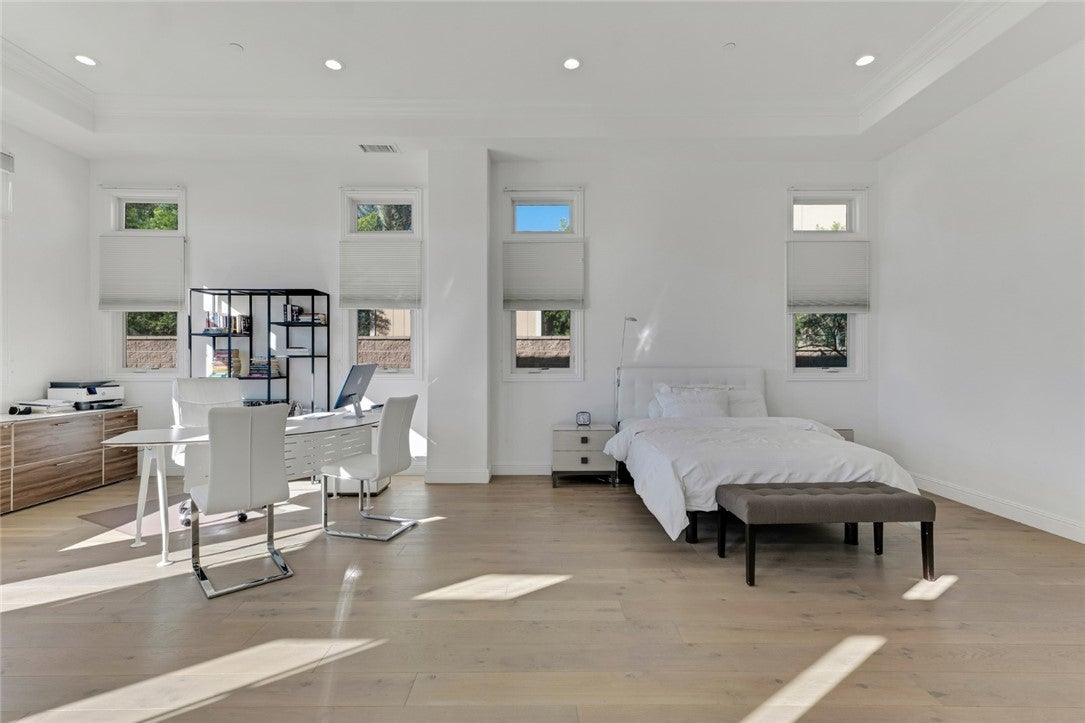 Set within the prestigious gated community of Canyon Oaks in Chatsworth, this stately contemporary estate offers approximately 5,587 square feet of refined living on an expansive lot, partially comprised of protected natural lands, with sweeping views. Designed to impress, the home delivers a clean, modern aesthetic highlighted by soaring ceilings, abundant natural light, recessed lighting throughout, and an open, flowing floorplan ideal for both everyday living and entertaining on a grand scale. A dramatic two-story formal entry leads to an awe-inspiring living room with clerestory windows, custom built-ins, and oversized sliding glass doors that dissolve the boundary between indoors and out. The showpiece kitchen features a striking black-and-white palette, white Corian countertops, automatic blinds, commercial-grade six-burner range with grill, Sub-Zero refrigerator, double ovens, walk-in pantry, and an enormous center island, leading seamlessly to the informal dining area and wet bar, all positioned to capture stunning views. A formal dining room with tray ceiling and built-in buffet adds elegance and storage space. The downstairs primary suite is a luxurious retreat with tray ceiling, crown molding, spa-caliber en-suite bath complete with double sinks, a vanity area, soaking tub, oversized multi-head shower, and expansive walk-in closet. Additional highlights include a downstairs en-suite guest bedroom, a stylish home office with glass barn door, dedicated laundry room, and convenient powder bath. A sweeping curved staircase leads to a spacious loft with wet bar and wine fridge overlooking the living space below. Upstairs, three additional en-suite bedrooms provide comfort and privacy. Designed for true indoor-outdoor living, the Arizona room and patios feature stone tile flooring, fireplace, ceiling fans, built-in seating, outdoor kitchen, water feature, grassy areas, and fruit trees, creating a resort-inspired space for you to enjoy. Additional features include Solar, multi-zone air conditioning, and high-end finishes throughout. Well situated near shopping, dining, entertainment, including the Vinyard, and major transportation thoroughfares. Don’t miss this exceptional offering in one of Chatsworth’s most exclusive​​‌​​​​‌​​‌‌​​‌​​​‌‌​​​​​​‌‌​‌‌​​‌​​​‌‌​ enclaves.
