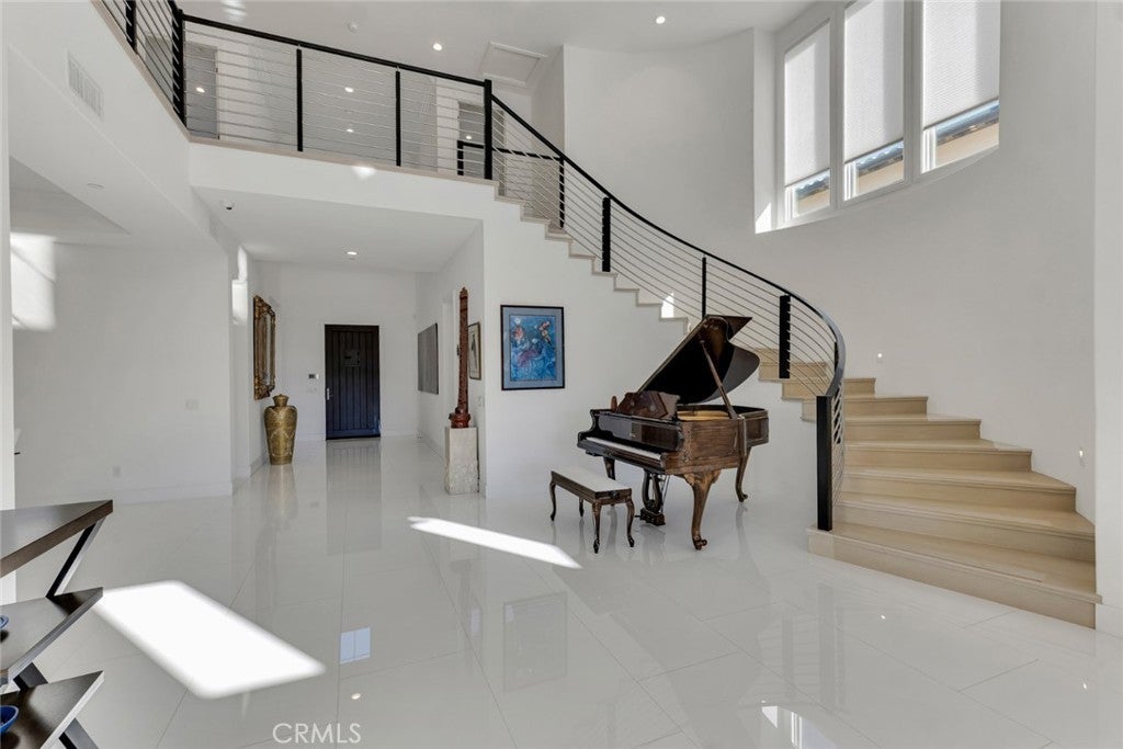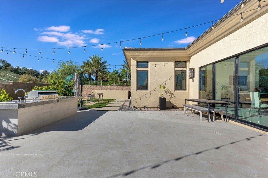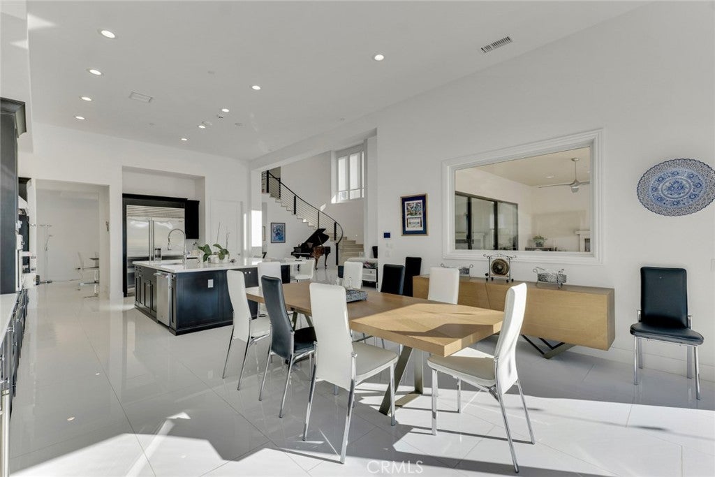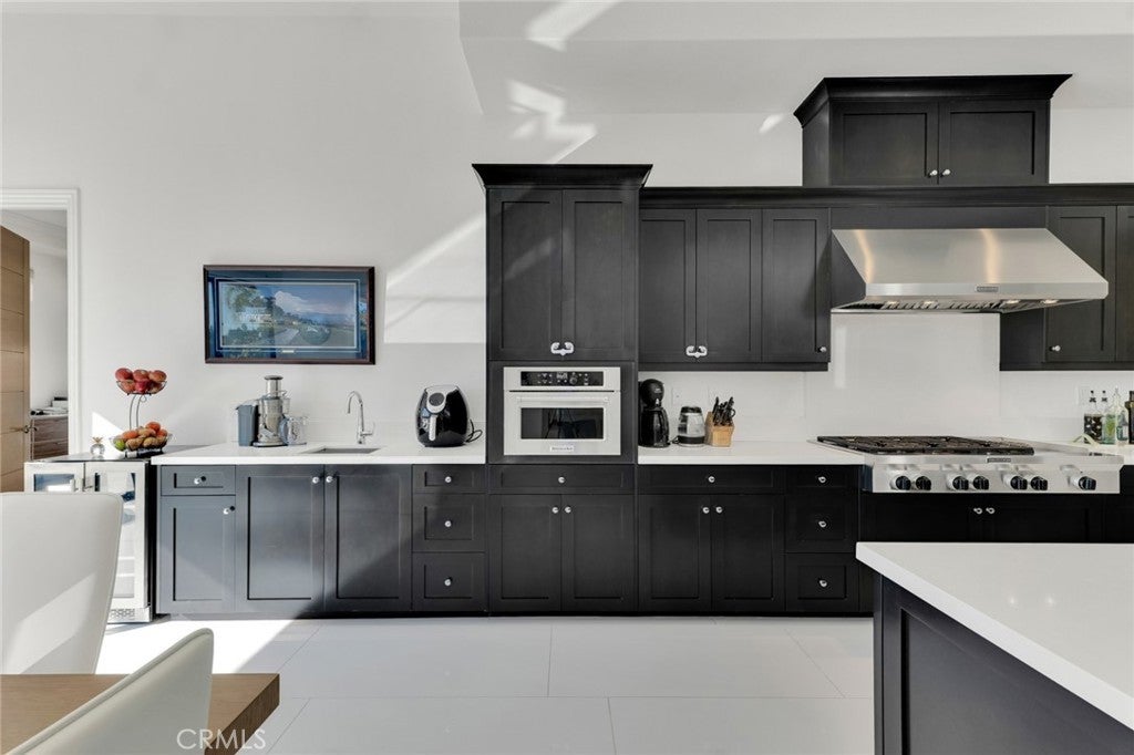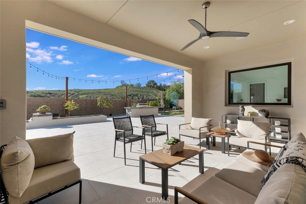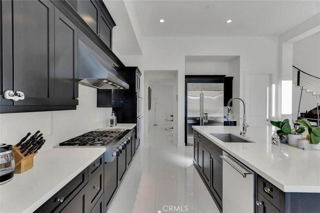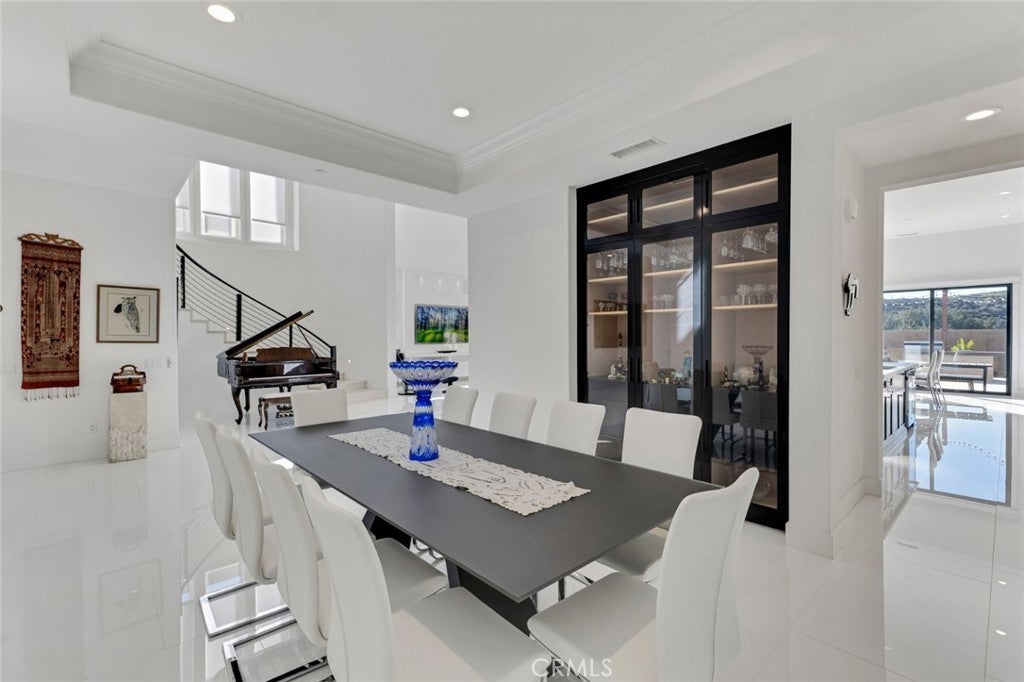 Set within the prestigious gated community of Canyon Oaks in Chatsworth, this stately contemporary estate offers approximately 5,587 square feet of refined living on an expansive lot, partially comprised of protected natural lands, with sweeping views. Designed to impress, the home delivers a clean, modern aesthetic highlighted by soaring ceilings, abundant natural light, recessed lighting throughout, and an open, flowing floorplan ideal for both everyday living and entertaining on a grand scale. A dramatic two-story formal entry leads to an awe-inspiring living room with clerestory windows, custom built-ins, and oversized sliding glass doors that dissolve the boundary between indoors and out. The showpiece kitchen features a striking black-and-white palette, white Corian countertops, automatic blinds, commercial-grade six-burner range with grill, Sub-Zero refrigerator, double ovens, walk-in pantry, and an enormous center island, leading seamlessly to the informal dining area and wet bar, all positioned to capture stunning views. A formal dining room with tray ceiling and built-in buffet adds elegance and storage space. The downstairs primary suite is a luxurious retreat with tray ceiling, crown molding, spa-caliber en-suite bath complete with double sinks, a vanity area, soaking tub, oversized multi-head shower, and expansive walk-in closet. Additional highlights include a downstairs en-suite guest bedroom, a stylish home office with glass barn door, dedicated laundry room, and convenient powder bath. A sweeping curved staircase leads to a spacious loft with wet bar and wine fridge overlooking the living space below. Upstairs, three additional en-suite bedrooms provide comfort and privacy. Designed for true indoor-outdoor living, the Arizona room and patios feature stone tile flooring, fireplace, ceiling fans, built-in seating, outdoor kitchen, water feature, grassy areas, and fruit trees, creating a resort-inspired space for you to enjoy. Additional features include Solar, multi-zone air conditioning, and high-end finishes throughout. Well situated near shopping, dining, entertainment, including the Vinyard, and major transportation thoroughfares. Don’t miss this exceptional offering in one of Chatsworth’s most exclusive​​‌​​​​‌​​‌‌​​‌​​​‌‌​​​​​​‌‌​‌‌​​‌​​​‌‌​ enclaves.